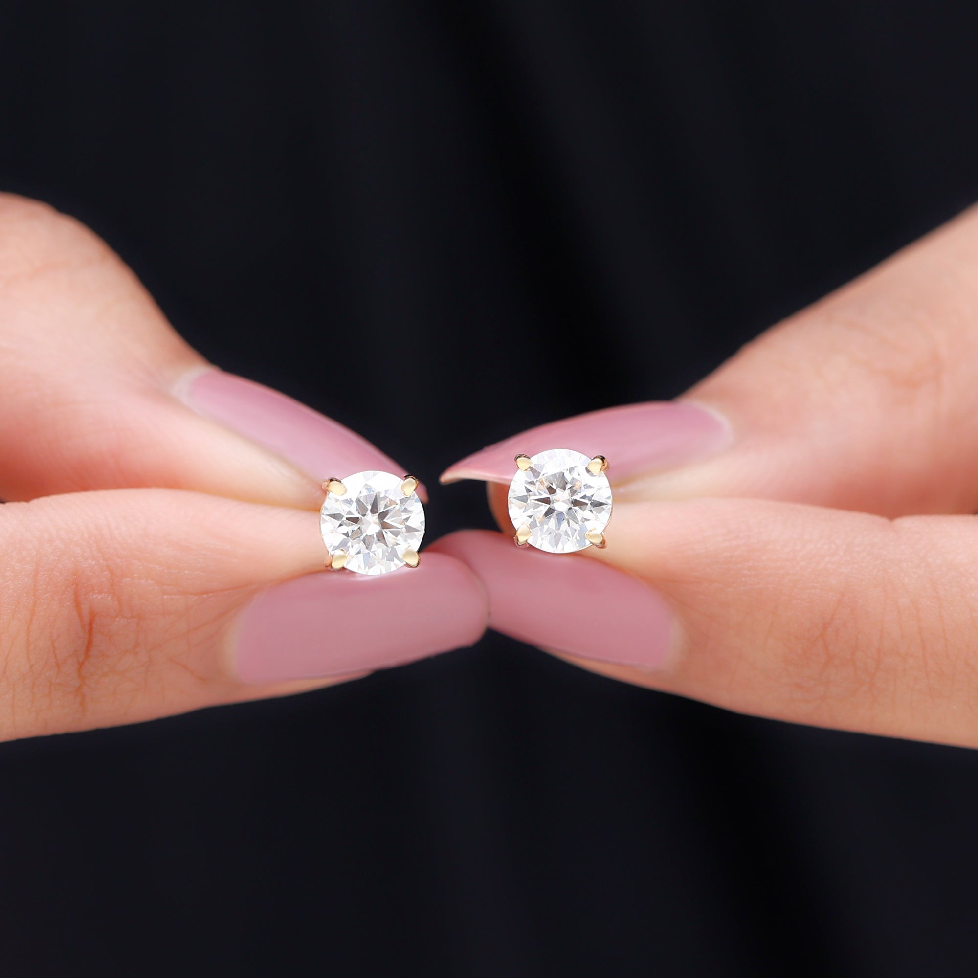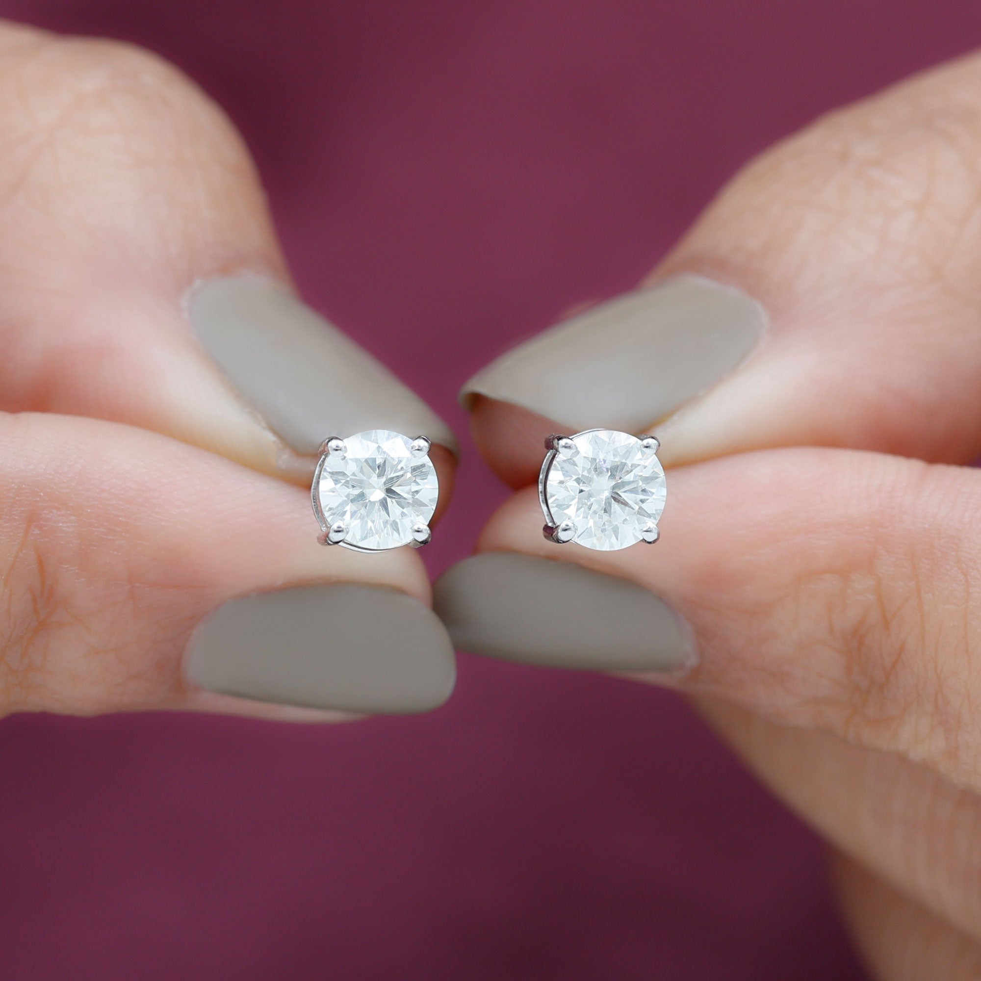 Little sparkle can brighten any moment, and these Moissanite Stud Earrings are made to do exactly that. Thoughtfully designed, they bring a classic shine that suits every style. Features a brilliant 6 MM round cut moissanite held securely in 4-prong setting, allowing the stone to reflect light beautifully from all sides. With screw back closures, these Solitaire Earrings stay safely in place while remaining comfortable enough for all-day wear. Whether you are heading to work, going out for dinner, or getting ready for a special occasion, they blend effortlessly with any outfit. Their simple yet elegant look makes them a perfect choice for everyday style or for moments when you want to feel a little extra polished. Made with D-VS1 quality moissanite, these Everyday Earrings offer impressive sparkle and clarity while being an ethical and affordable alternative to traditional gemstones. Easy to wear, effortlessly stylish, and full of shine, these Solitaire Moissanite Earrings are a piece you will love reaching for again and again.