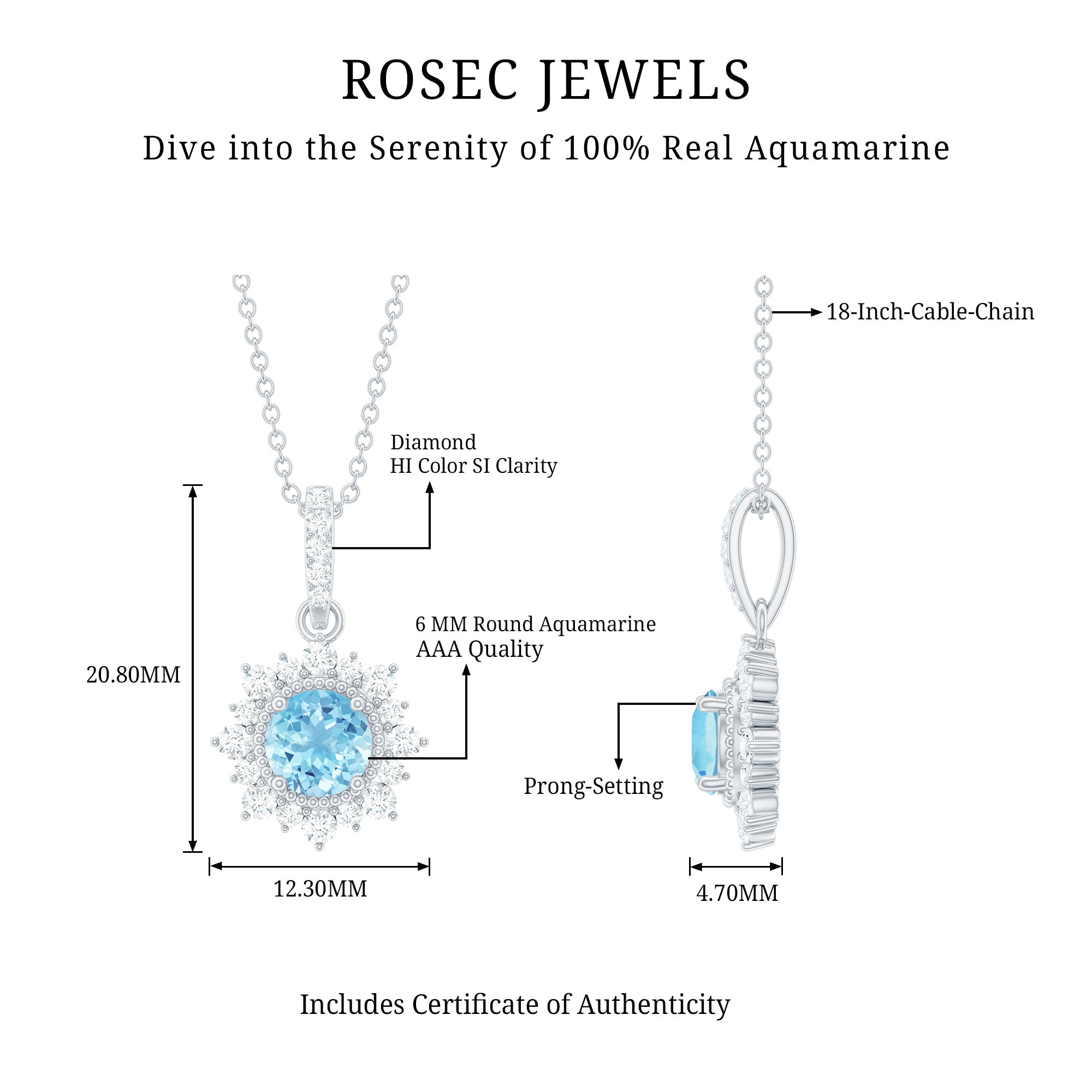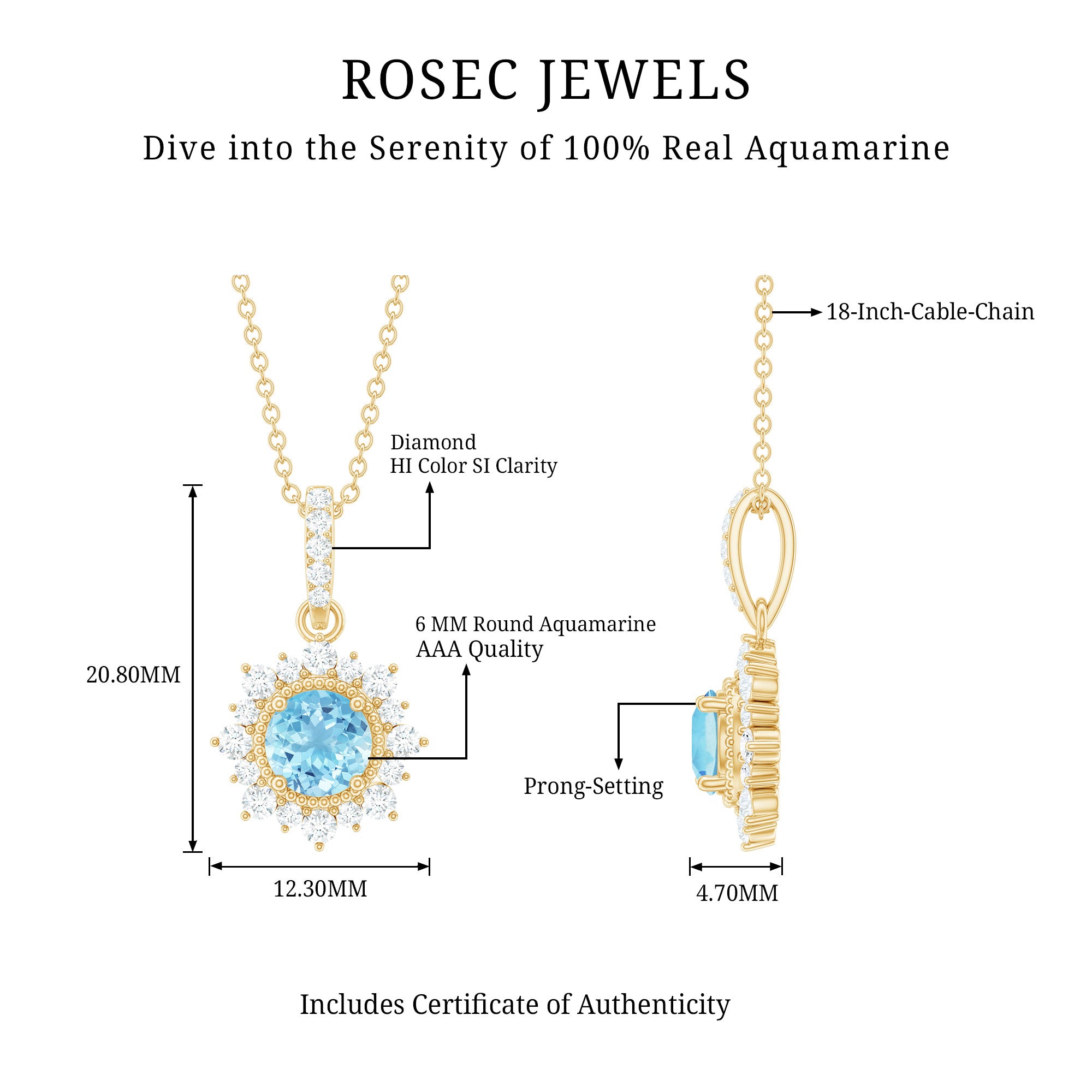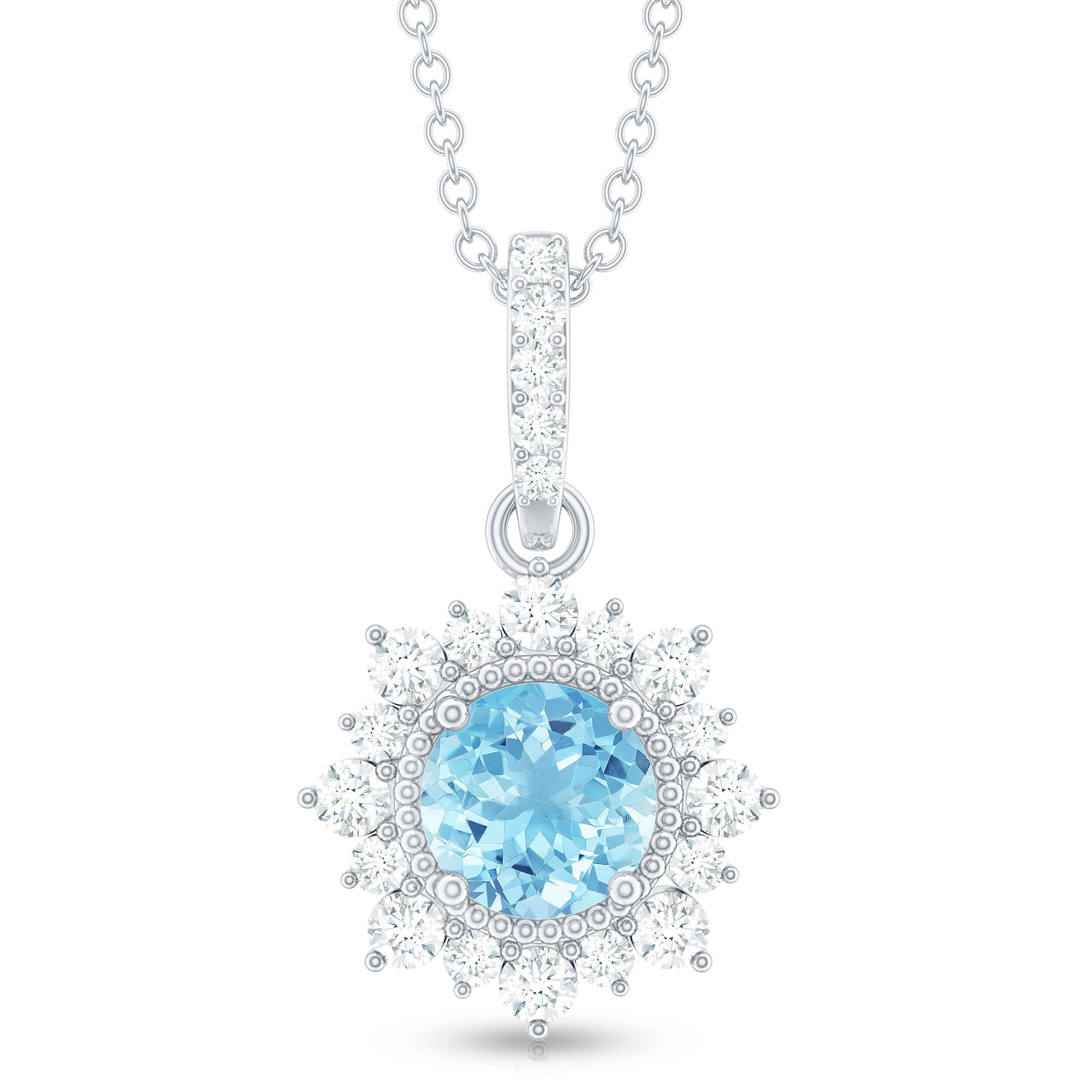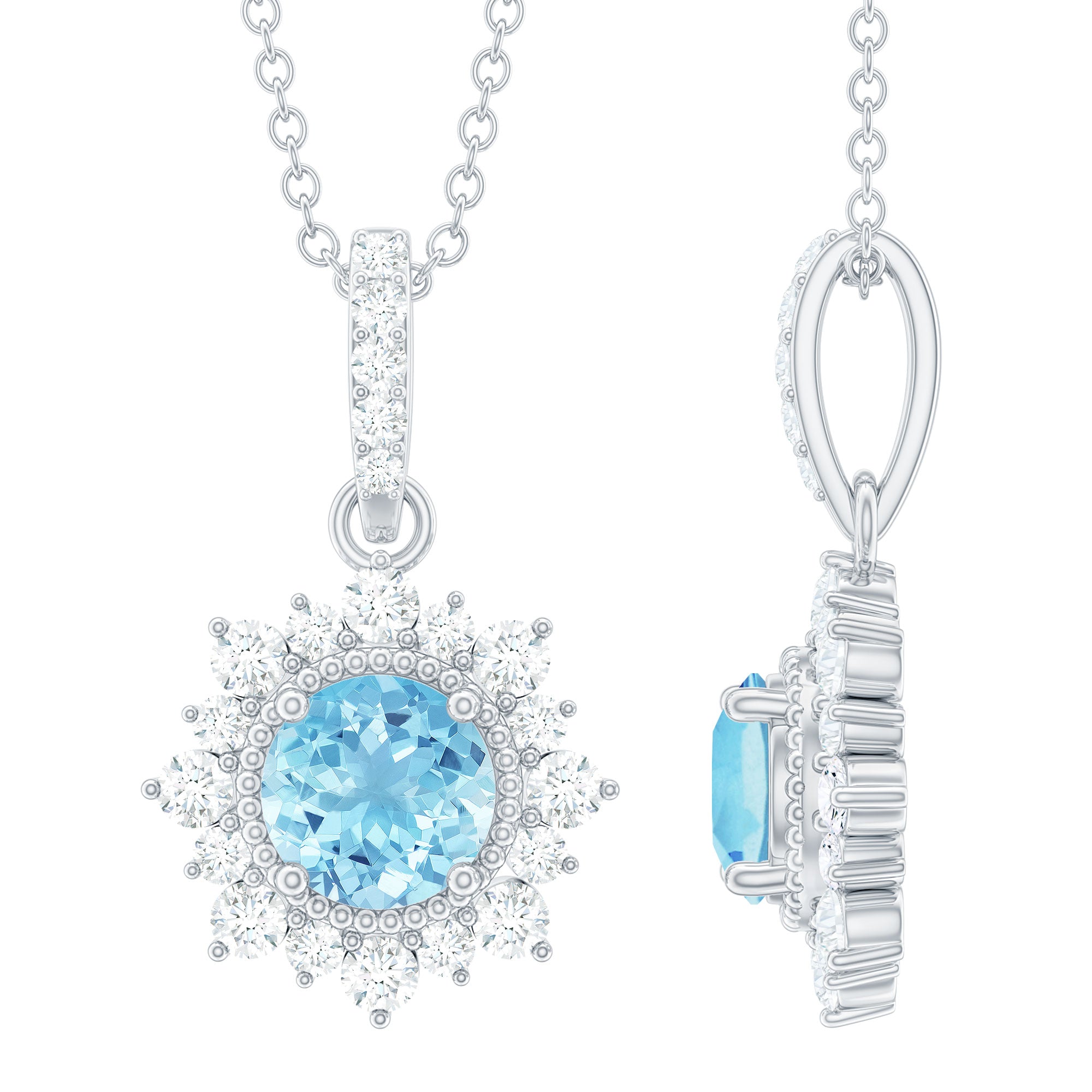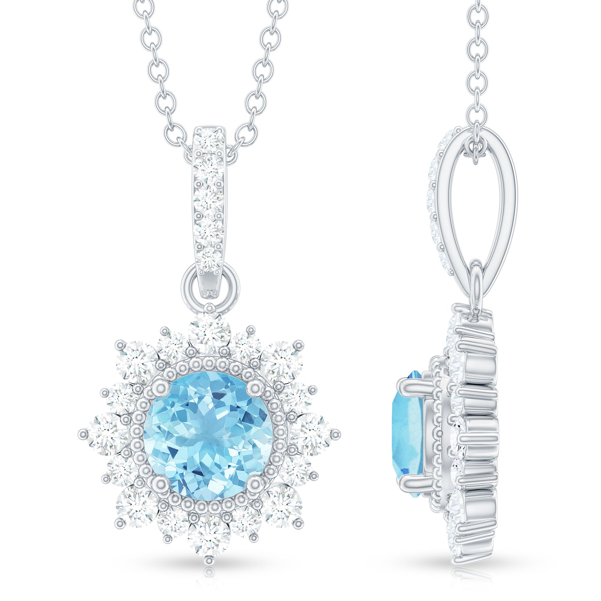 1.50 CT Natural Aquamarine Pendant with Diamond Halo