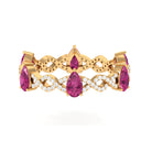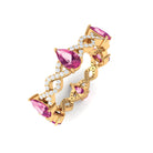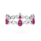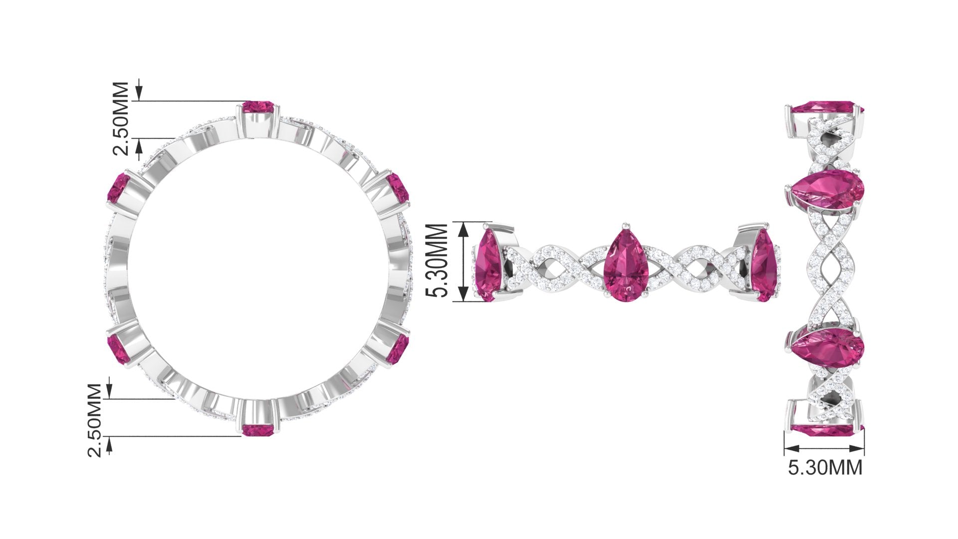 Intensify your look with this amazing Crossover Eternity Ring embellished with Pear Pink Tourmaline and Diamond. Pink Tourmaline - Brilliant Cut Pink Tourmaline Gemstone exhibits AAA Quality and possess vibrant color. Semi-Precious stone symbolizes unconditional love and friendship. It is Natural and Certified, helps in promoting better understanding of the wearer. Its Durability and Luster is enhanced by Heat Treatment, to further make it a captivating and desirable gem. Diamond - HI-SI Quality exhibited by Brilliant Cut Diamond give justice to its incredible value. Diamond summons beauty, attractiveness and unbreakable love. It is Certified and helps in bringing success and luxury to the wearer. Its Durability and Luster is enhanced by Lab Created Treatment, to further make it a captivating and desirable gem.