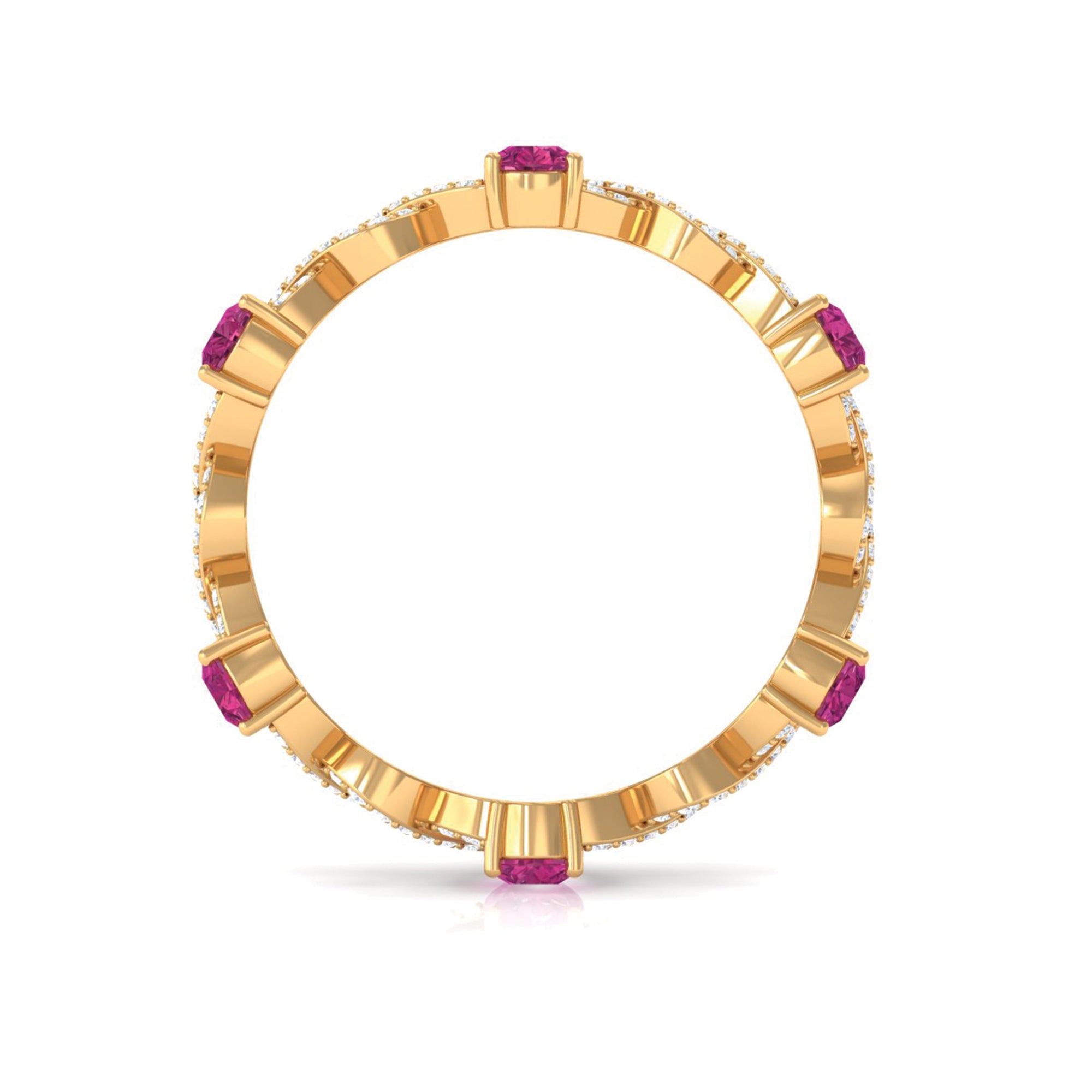 1.50 CT Natural Pink Tourmaline Crossover Eternity Ring with Diamond