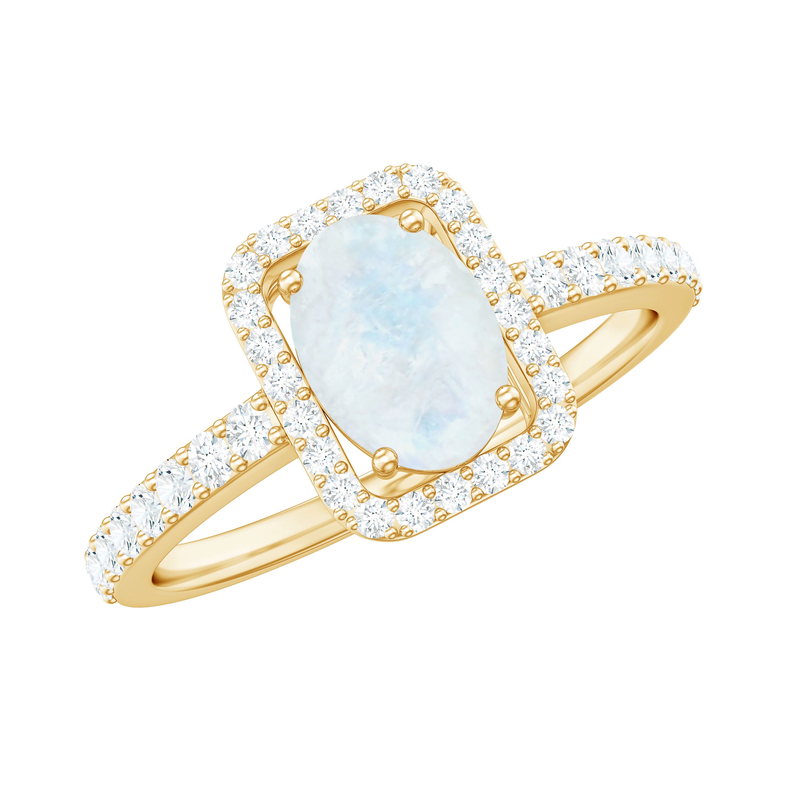 1.50 CT Oval Cut Moonstone Ring with Diamond Halo