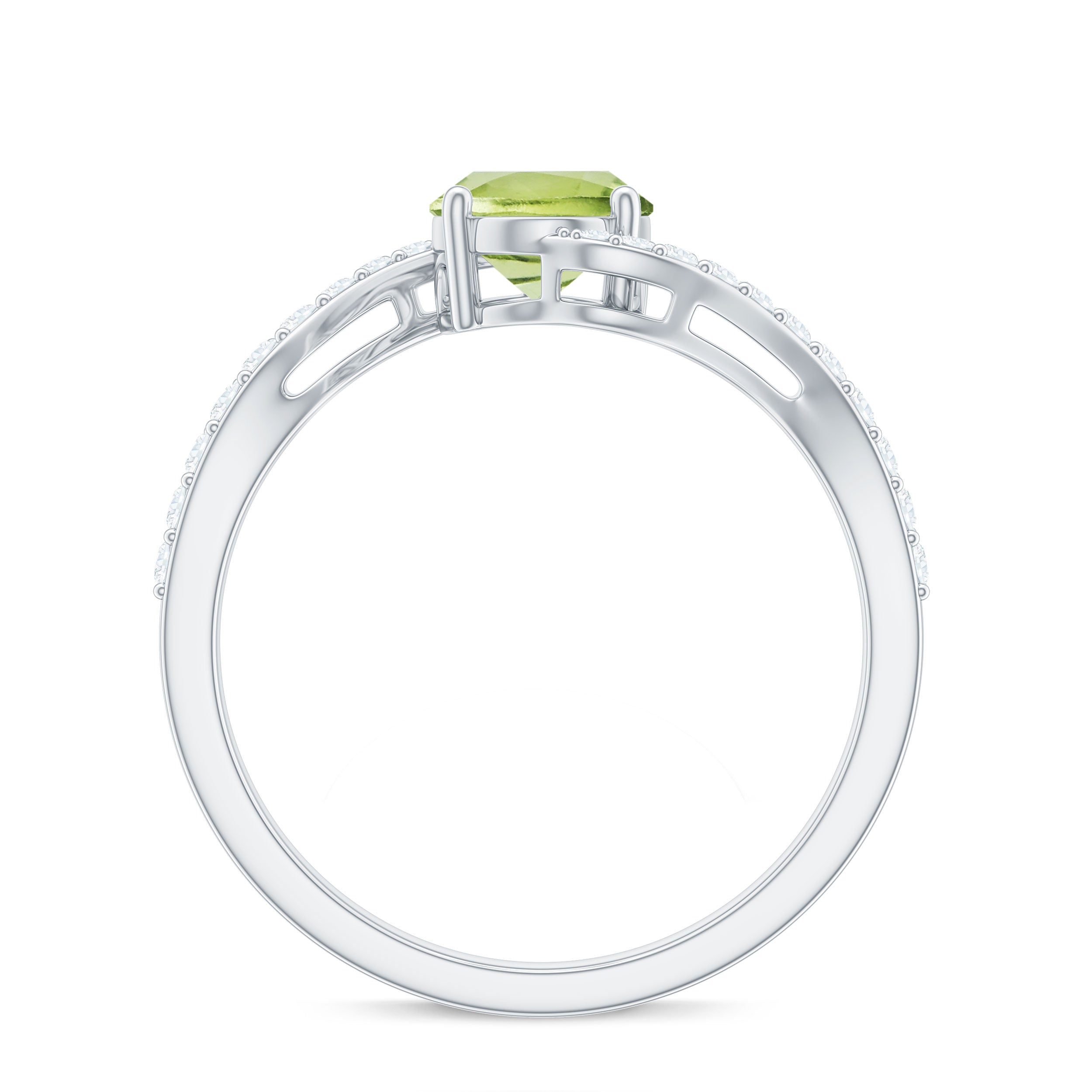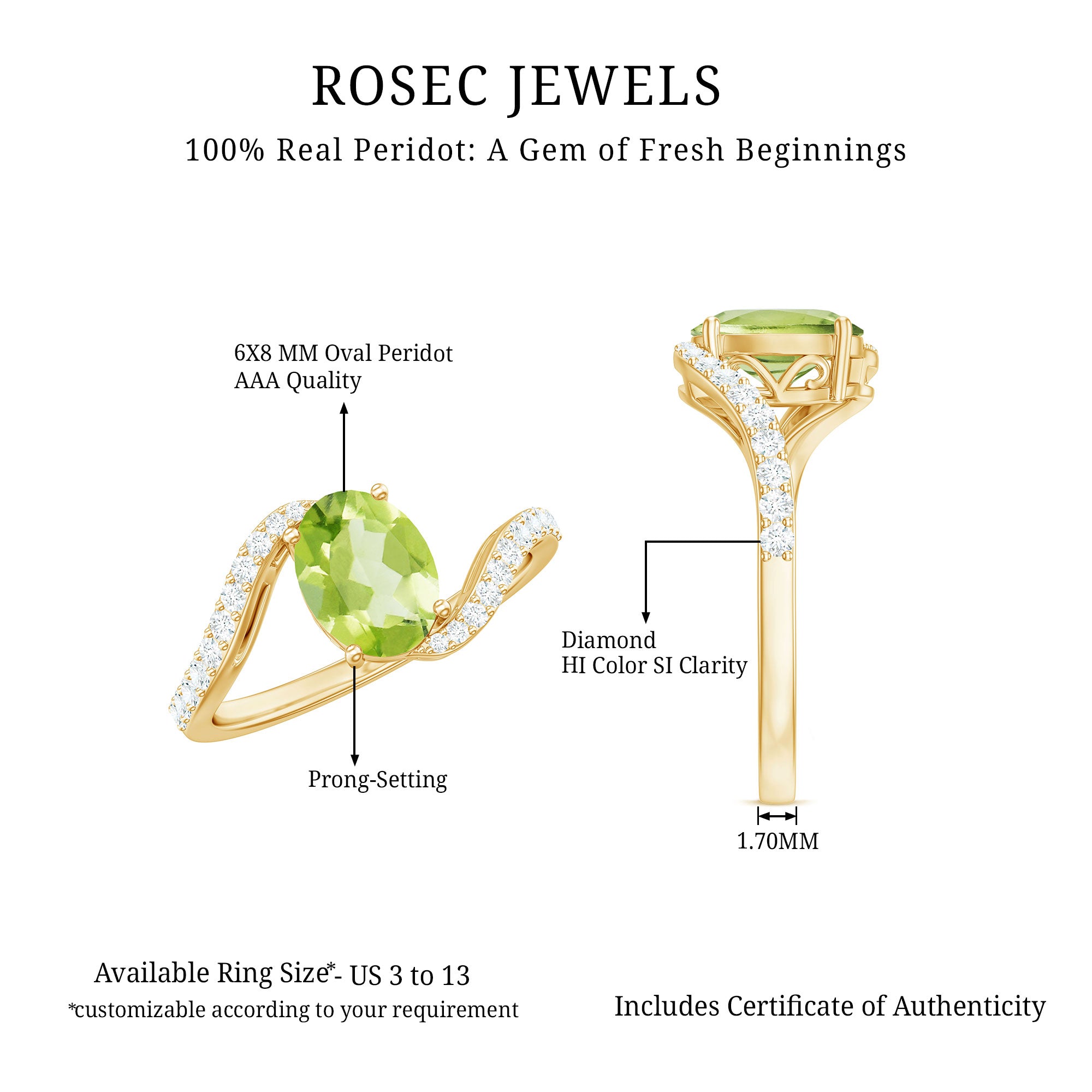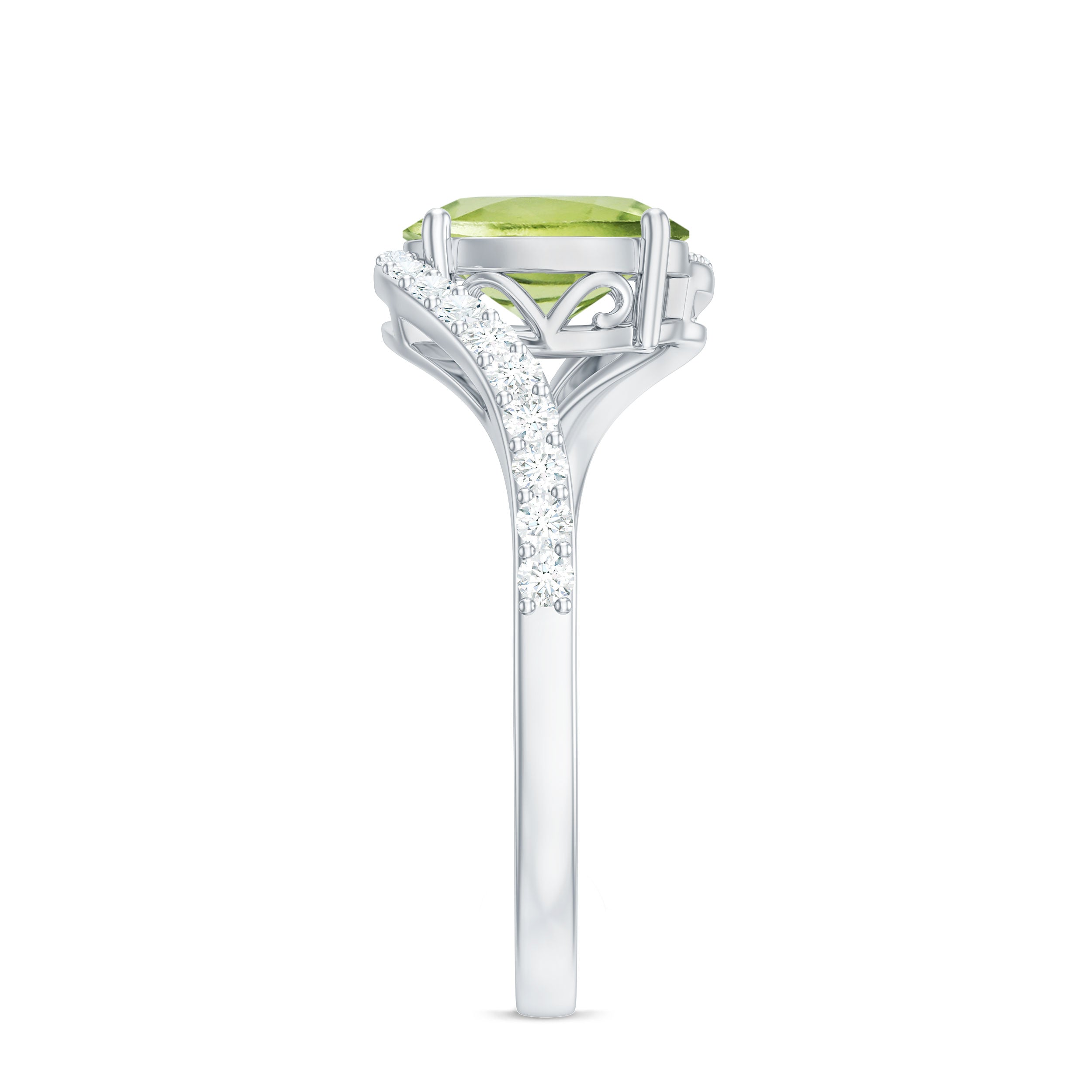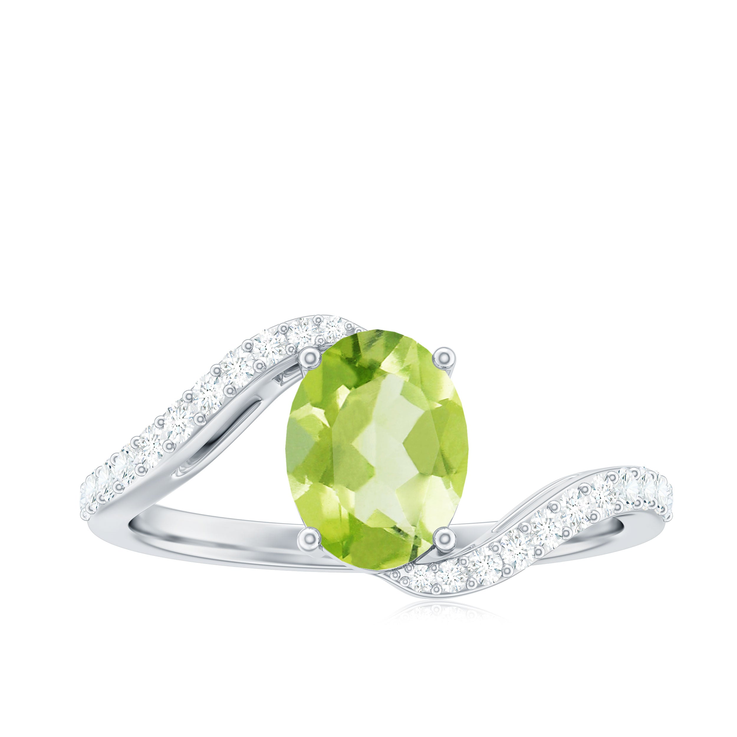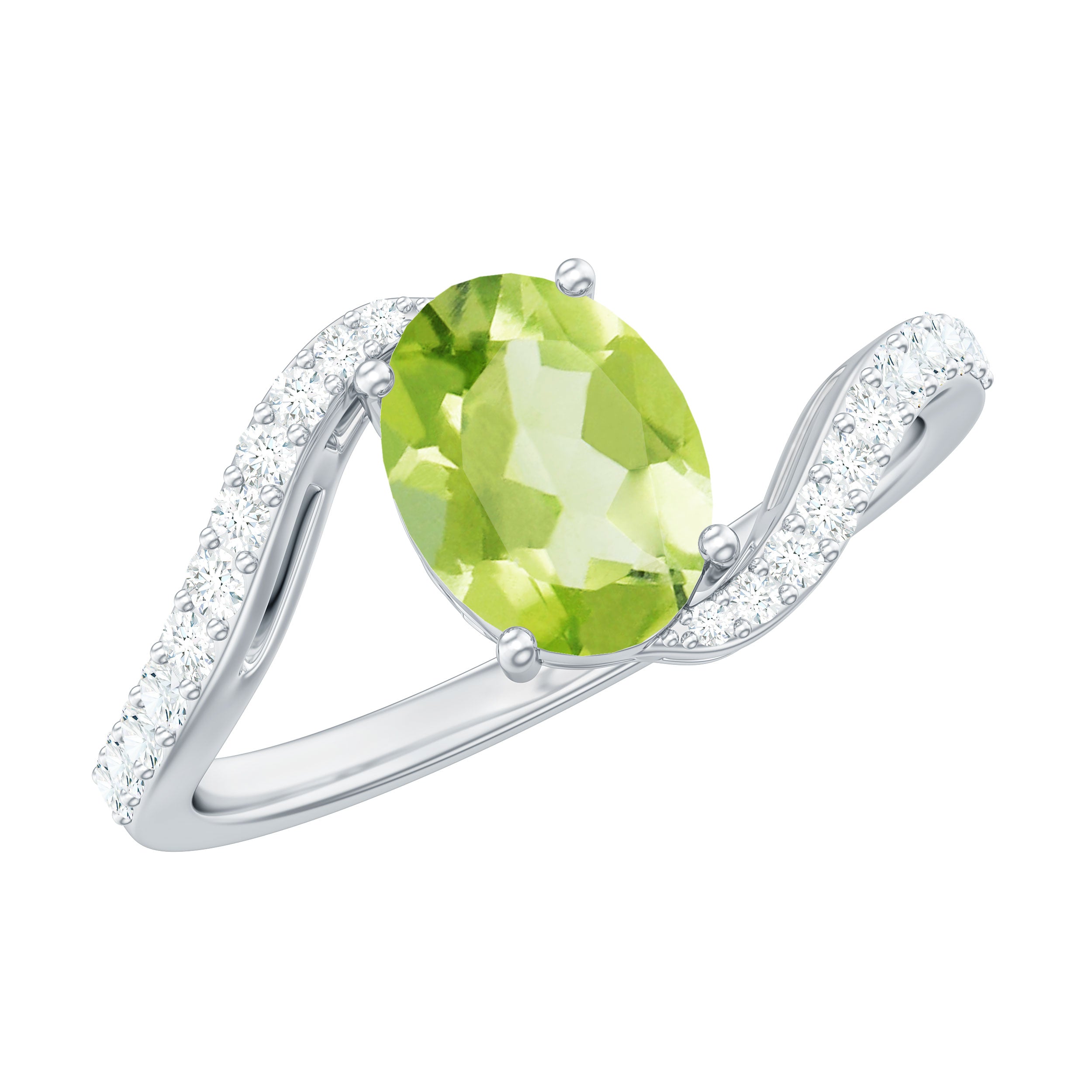 1.50 CT Oval Cut Peridot Solitaire Ring with Diamond Accent