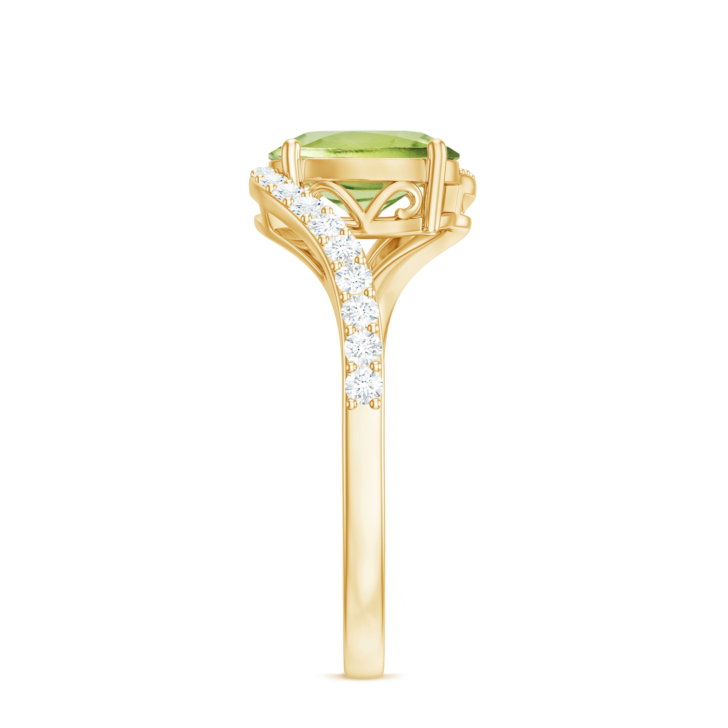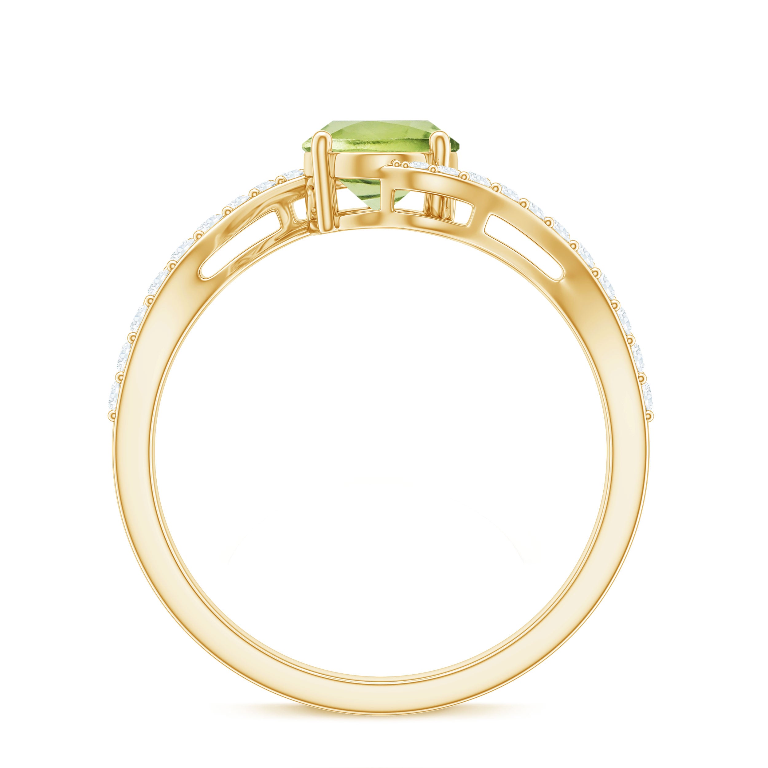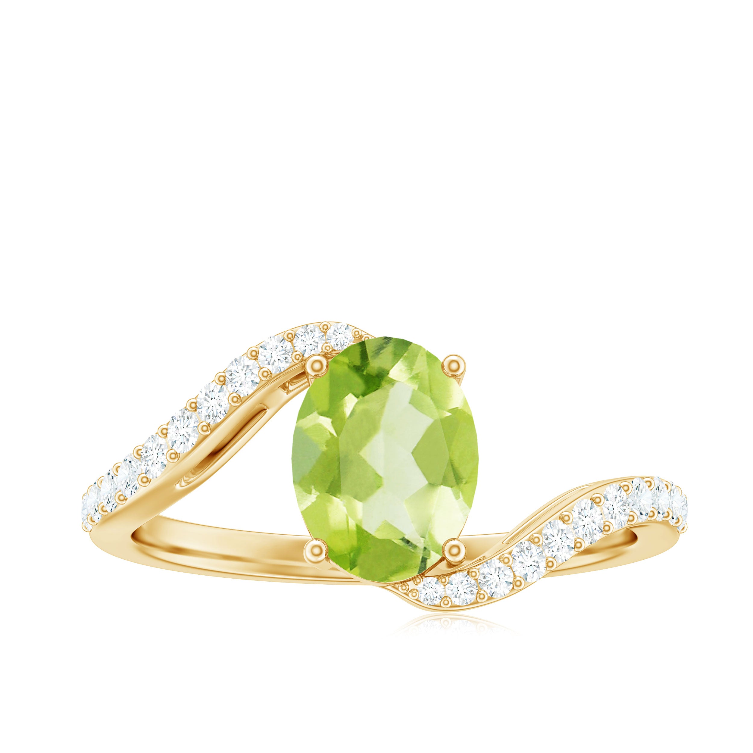 Bring out your alluring look by wearing this elegant Peridot Solitaire Ring embellished with Oval Cut Peridot in Prong Setting and Diamond Accent. This Peridot and Diamond Ring is crafted with Gold to give you a stand out look from others. Surprise your love with this elegant Peridot Stone Ring, something she would never try to keep away from herself.