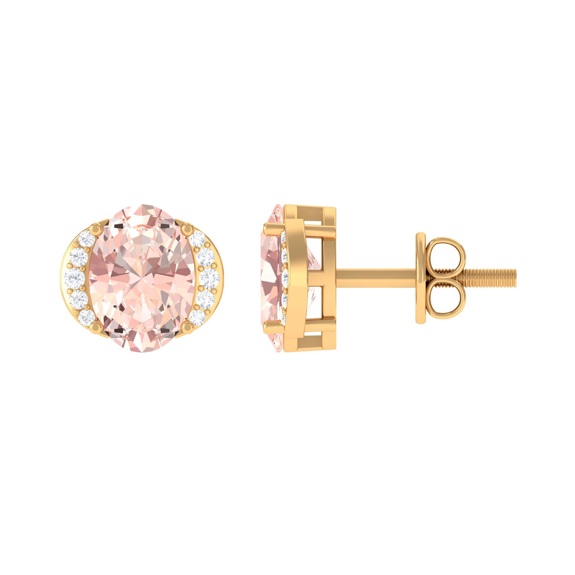 These Classic Stud Earrings are a stunning addition to any jewelry collection. The oval cut Morganite gemstones are paired with Diamond accents for added elegance. The earrings are made from gold and feature screw-back closures for added security. The minimalist design and high-quality materials make these earrings the perfect choice for a special occasion or simply to elevate your everyday look.