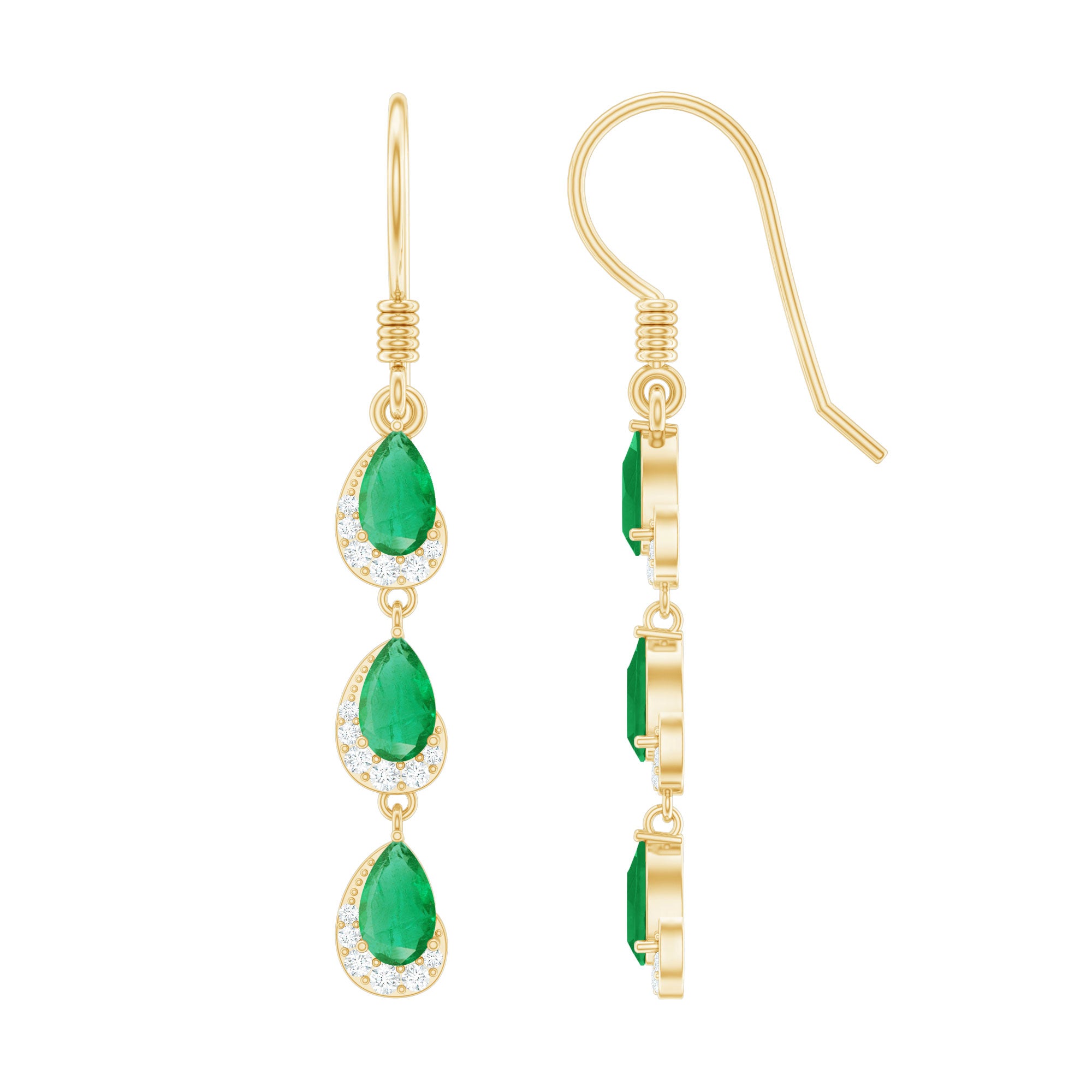 Add a pop of green to your everyday look with these Certified Emerald Dangle Earrings. The beautiful pear-cut emeralds dangle with Diamond accents, making them a fascinating addition to your jewelry collection. These solid gold earrings are here to enhance your radiance and warmth. Wear your greens all day, every day with these must-have earrings from Rosec Jewels.