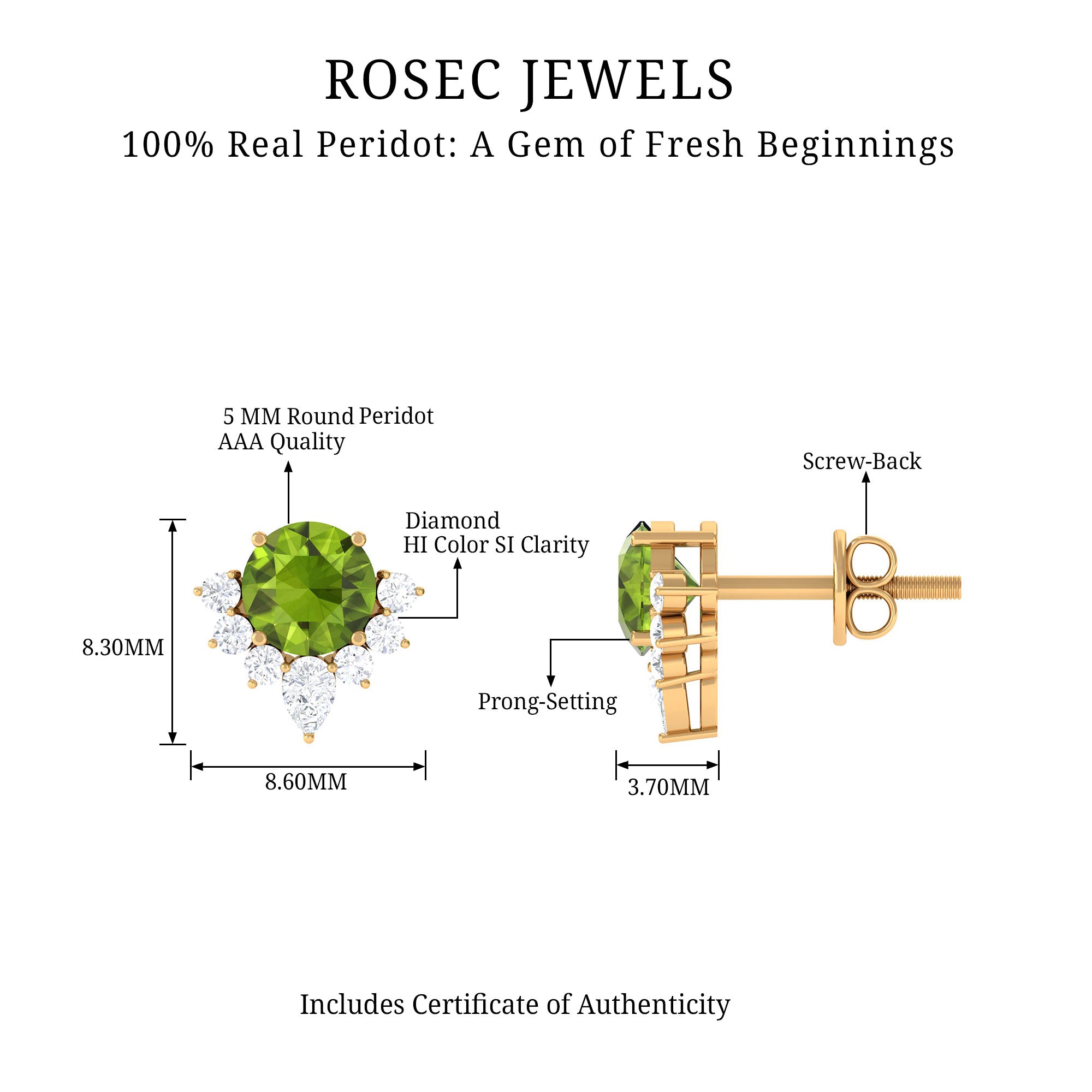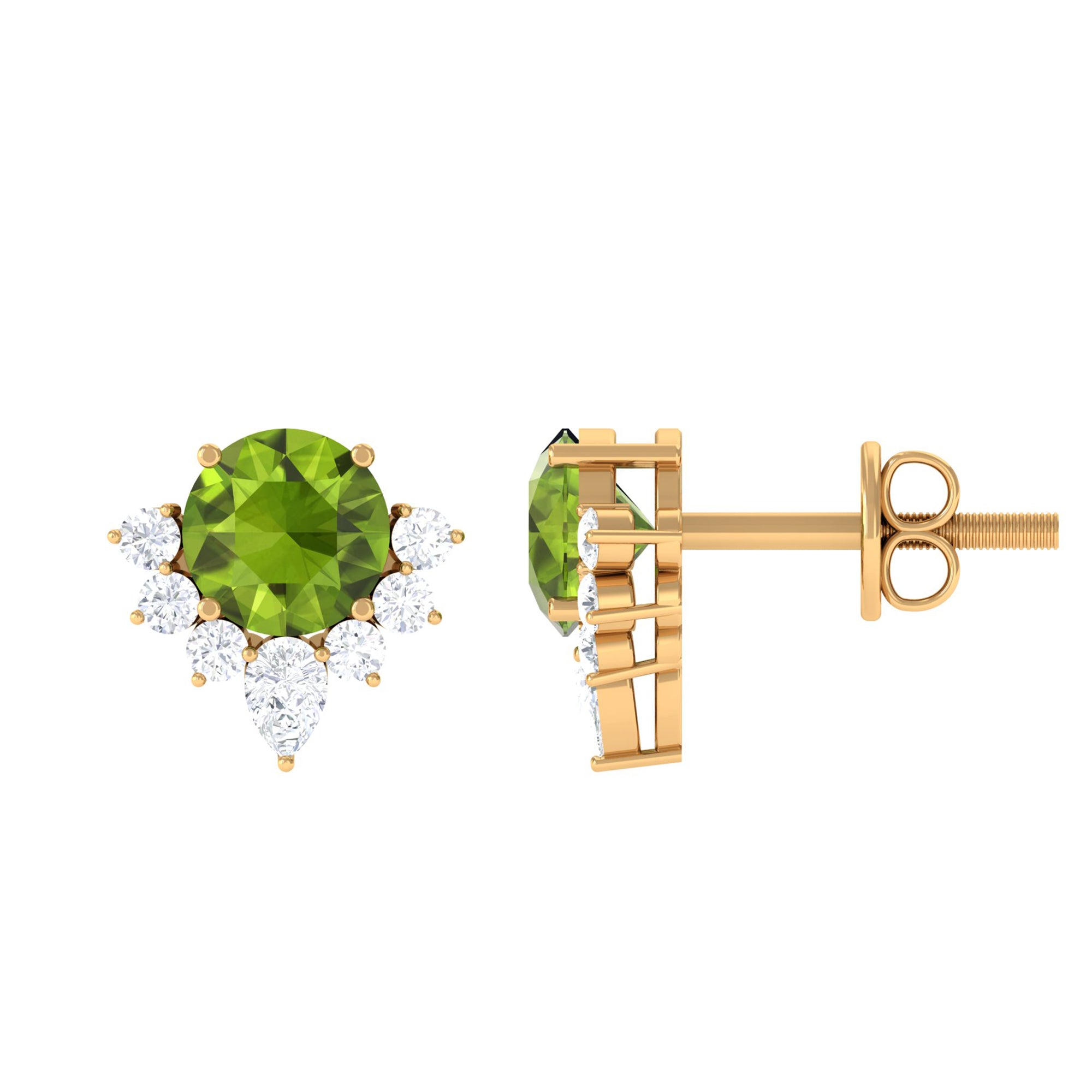 1.50 CT Peridot and Diamond Classic Stud Earrings with Half Halo