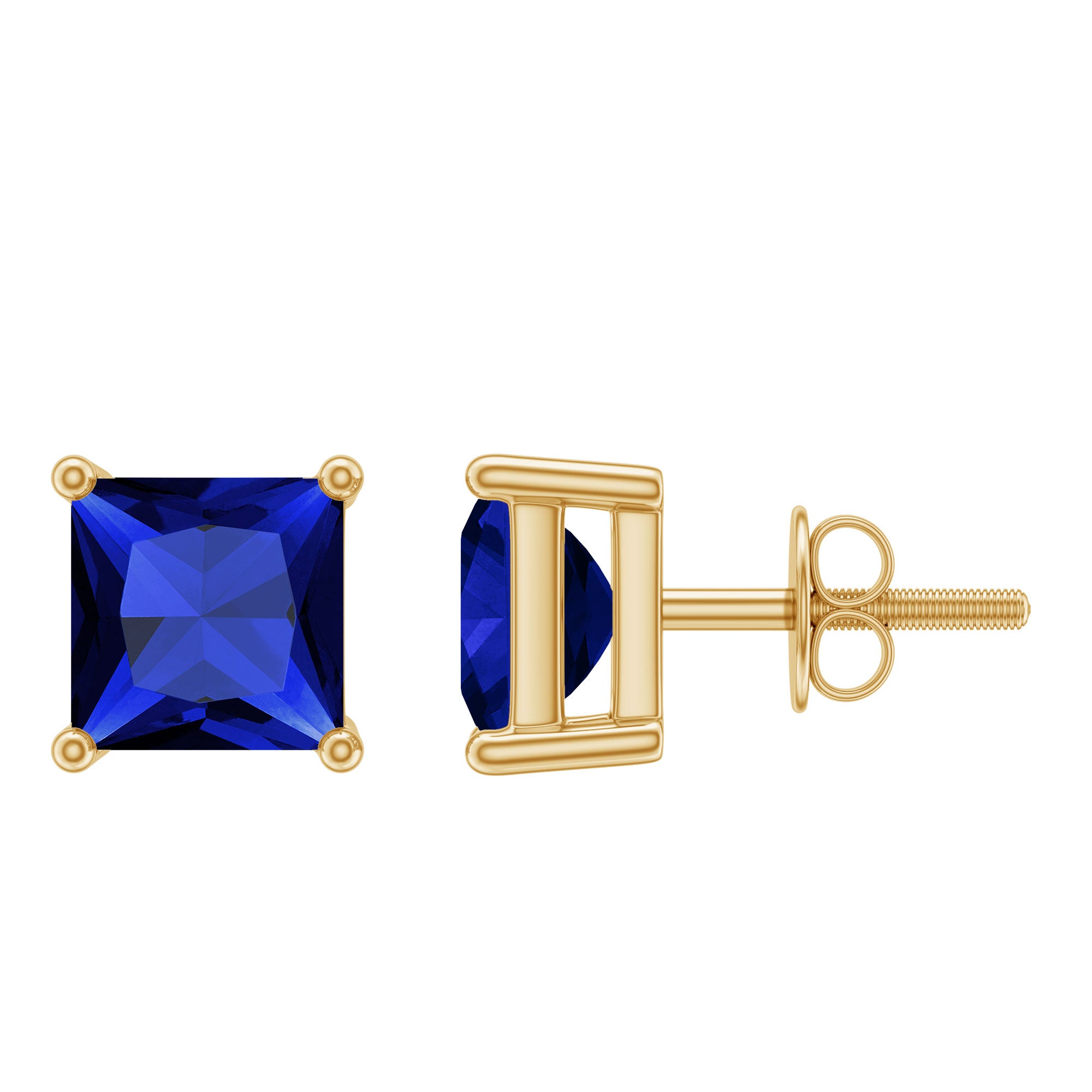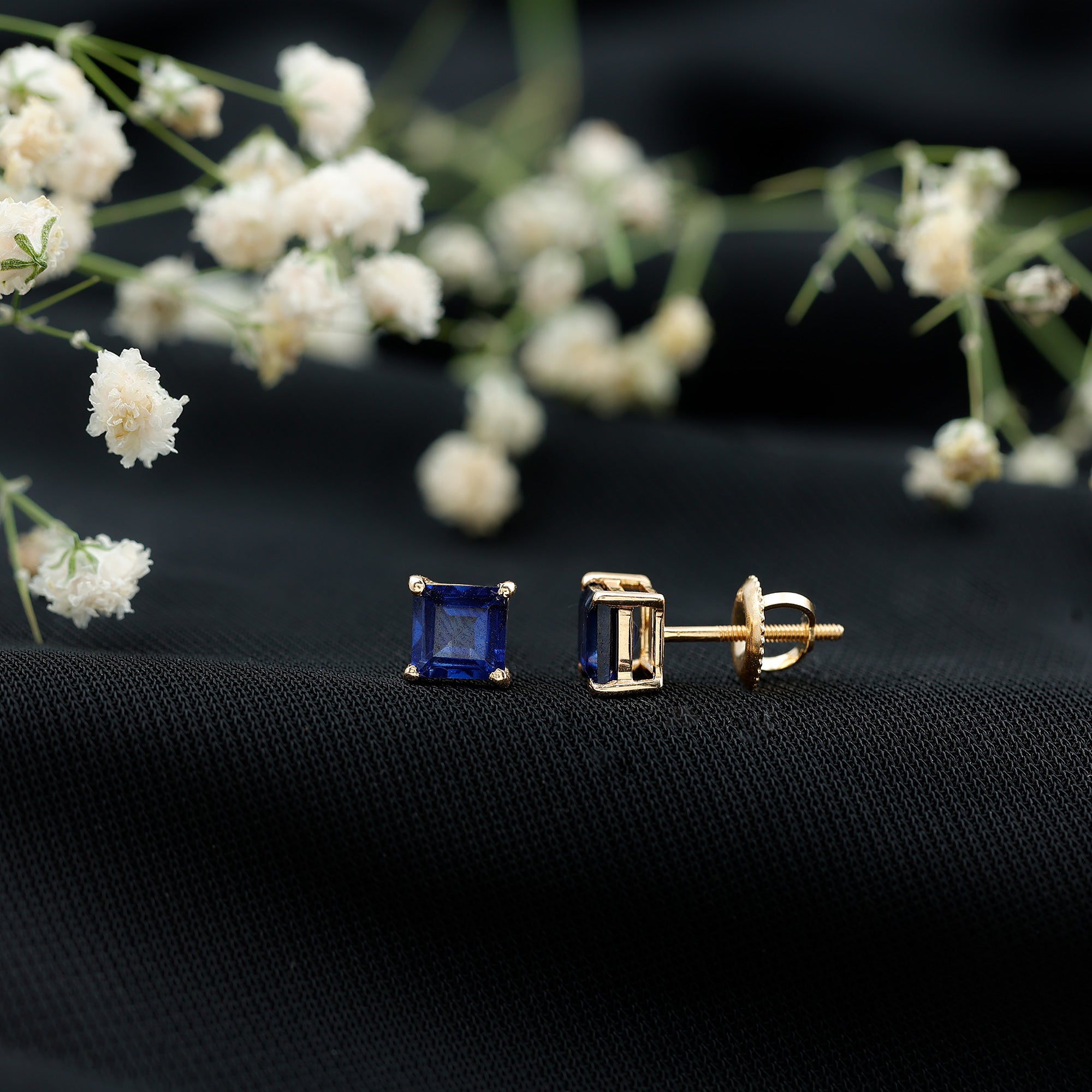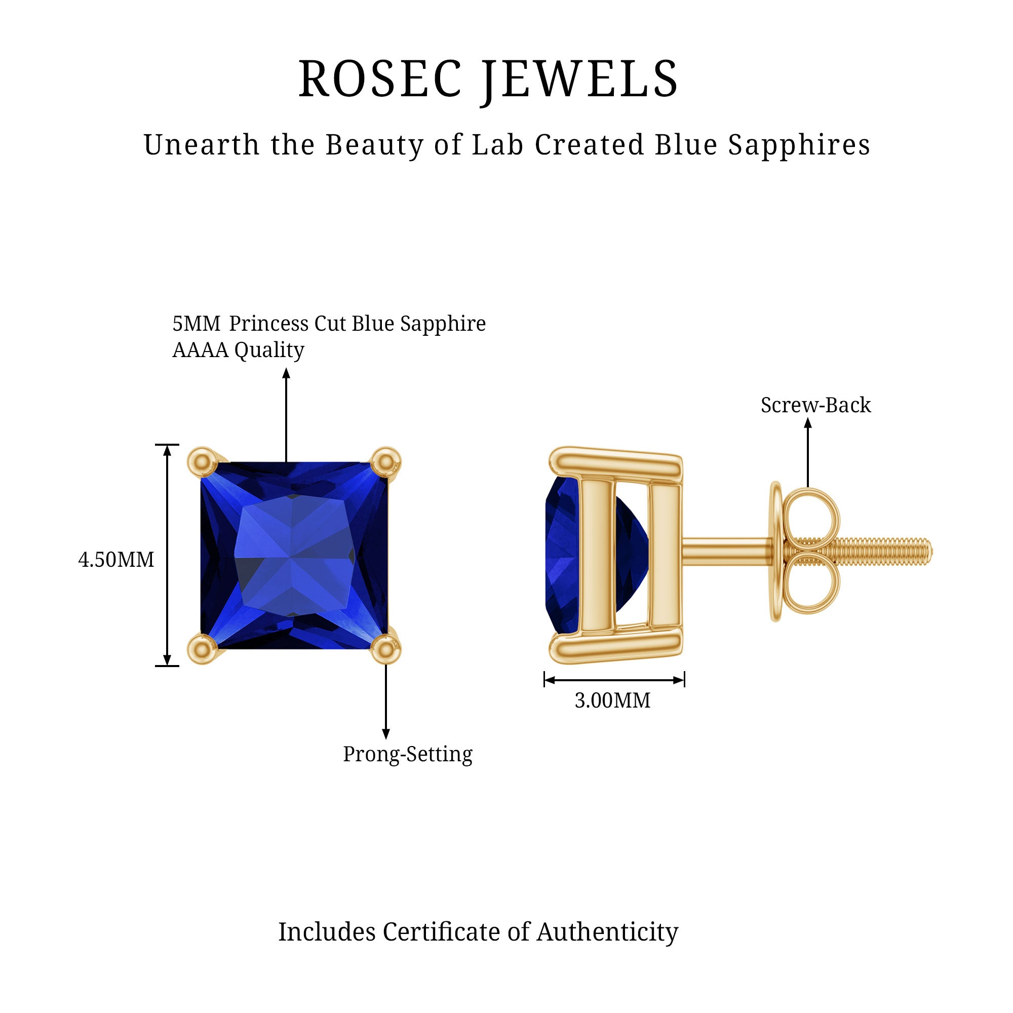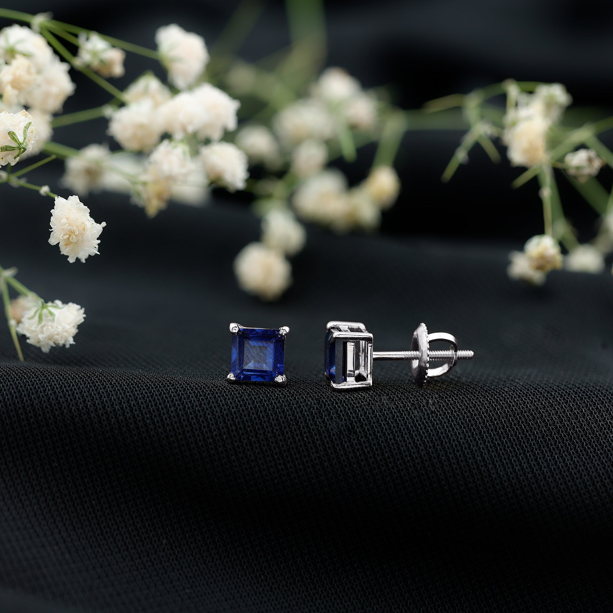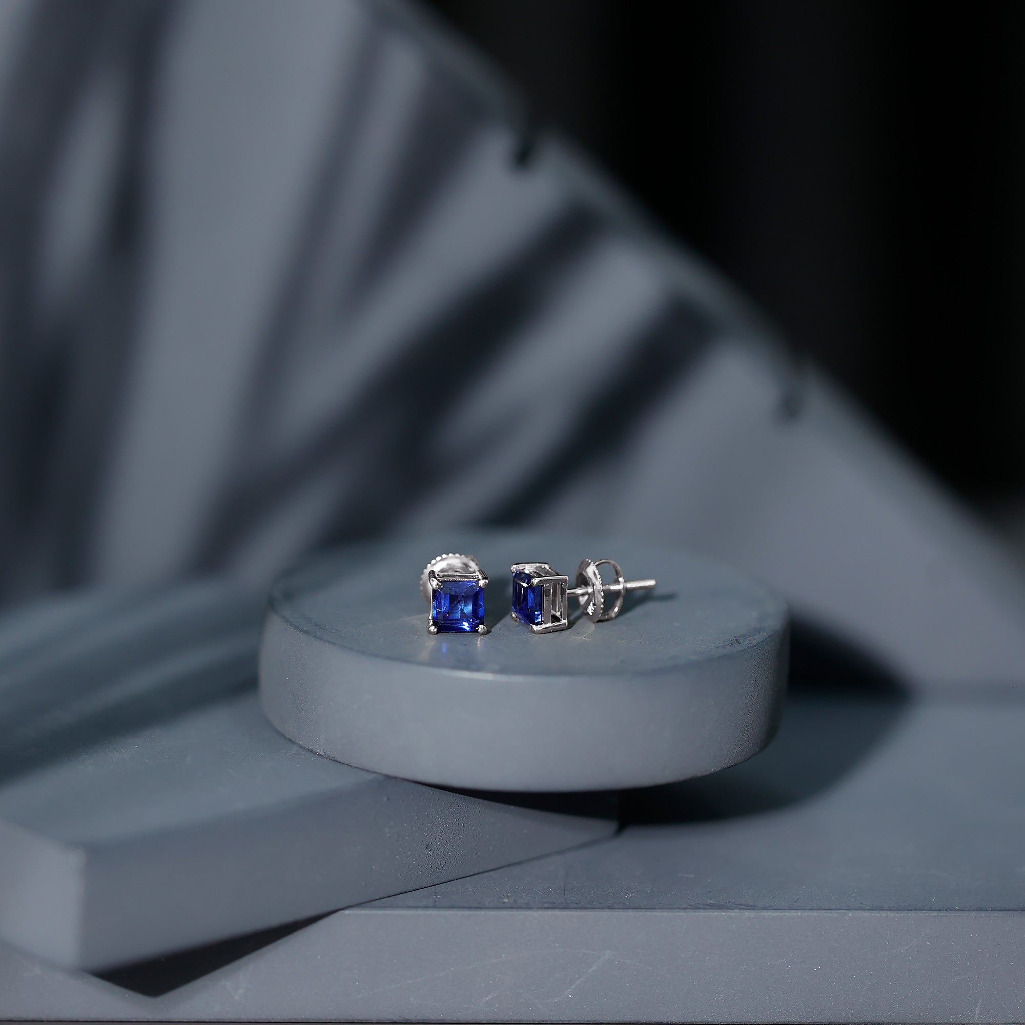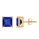 1.50 CT Princess Cut Created Blue Sapphire Solitaire Stud Earrings