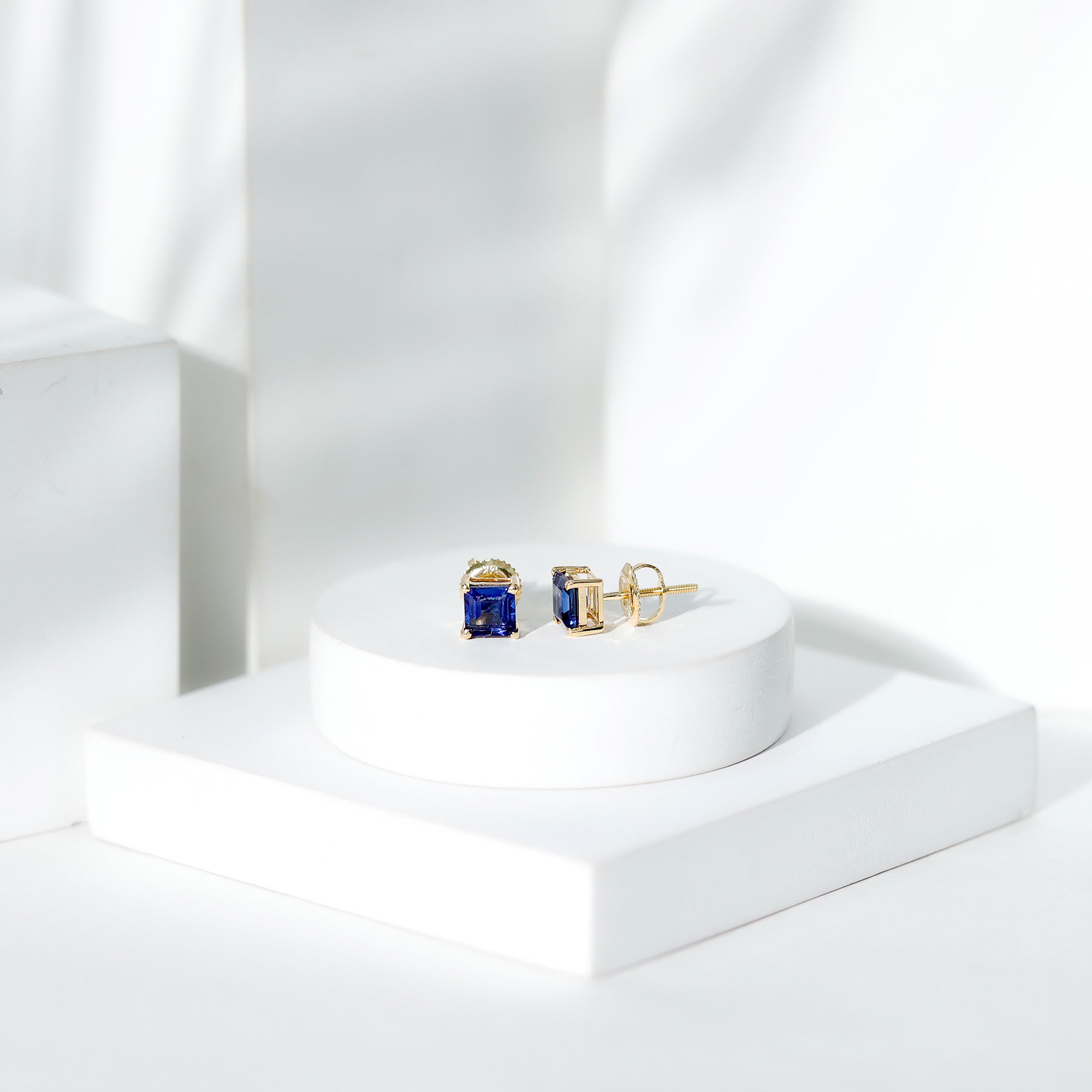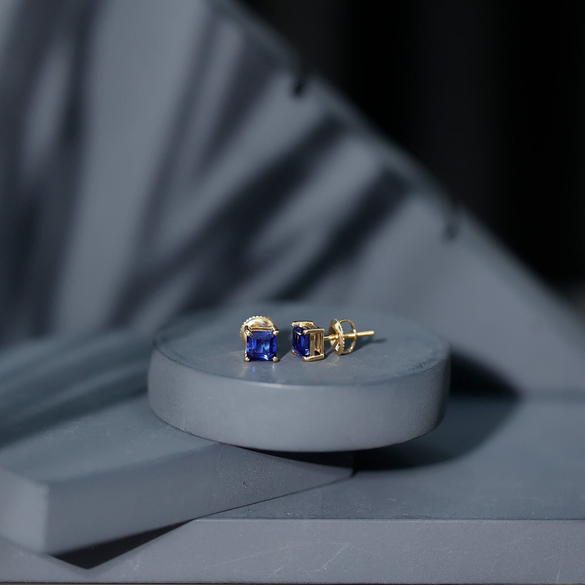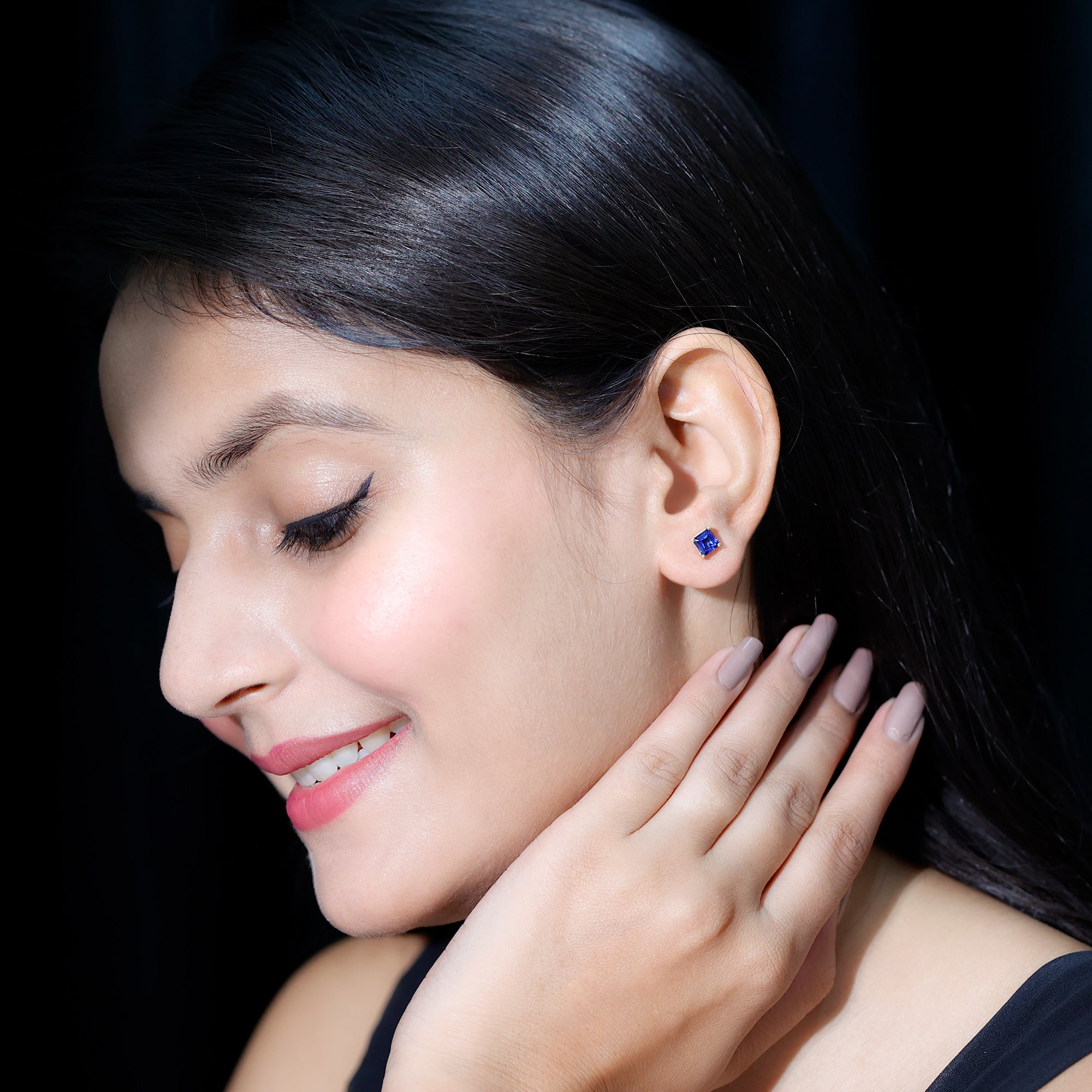 Solitaires are always bewitching! Grab these solitaire earrings and adorn your ears with their beauty. These earrings are mounted with princess cut created blue sapphire, held securely in 4 prong setting. These created blue sapphire earrings will look gorgeous on you and they are sure to fetch you compliments.