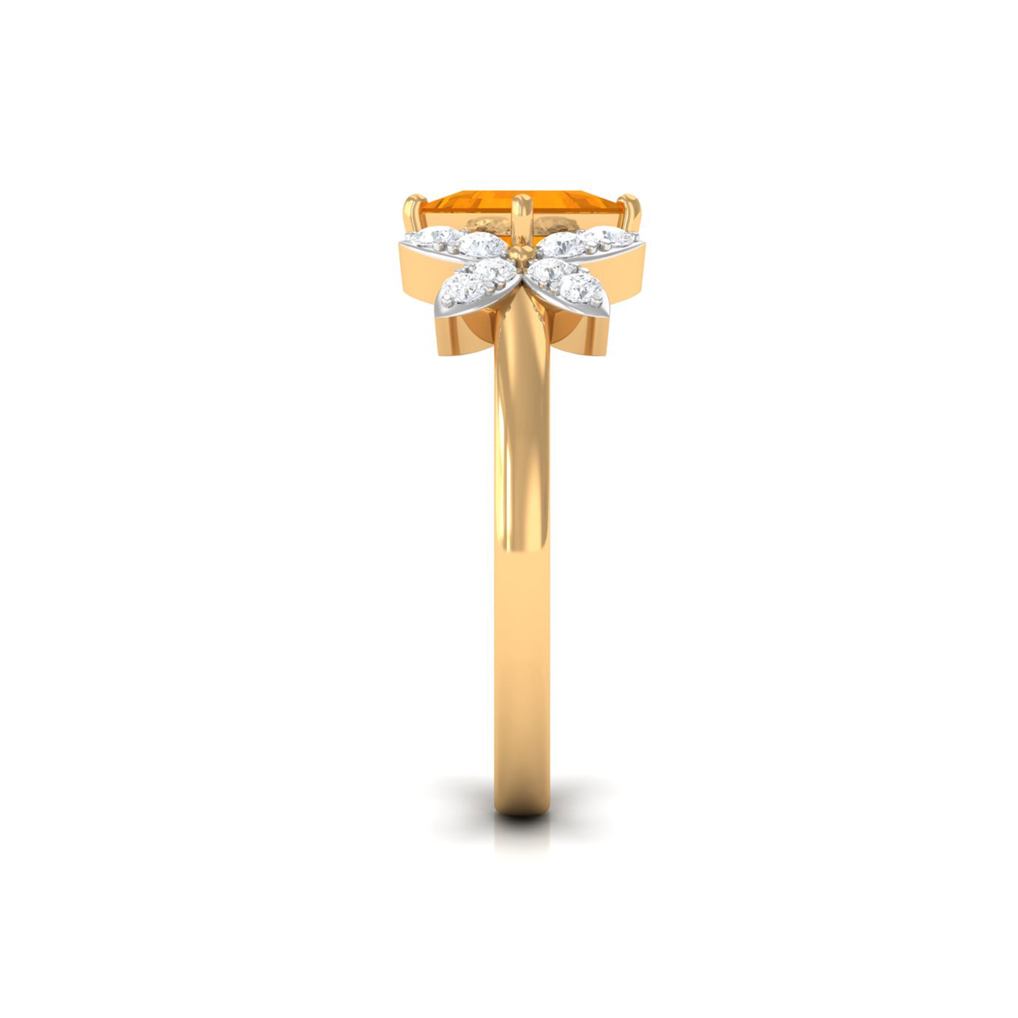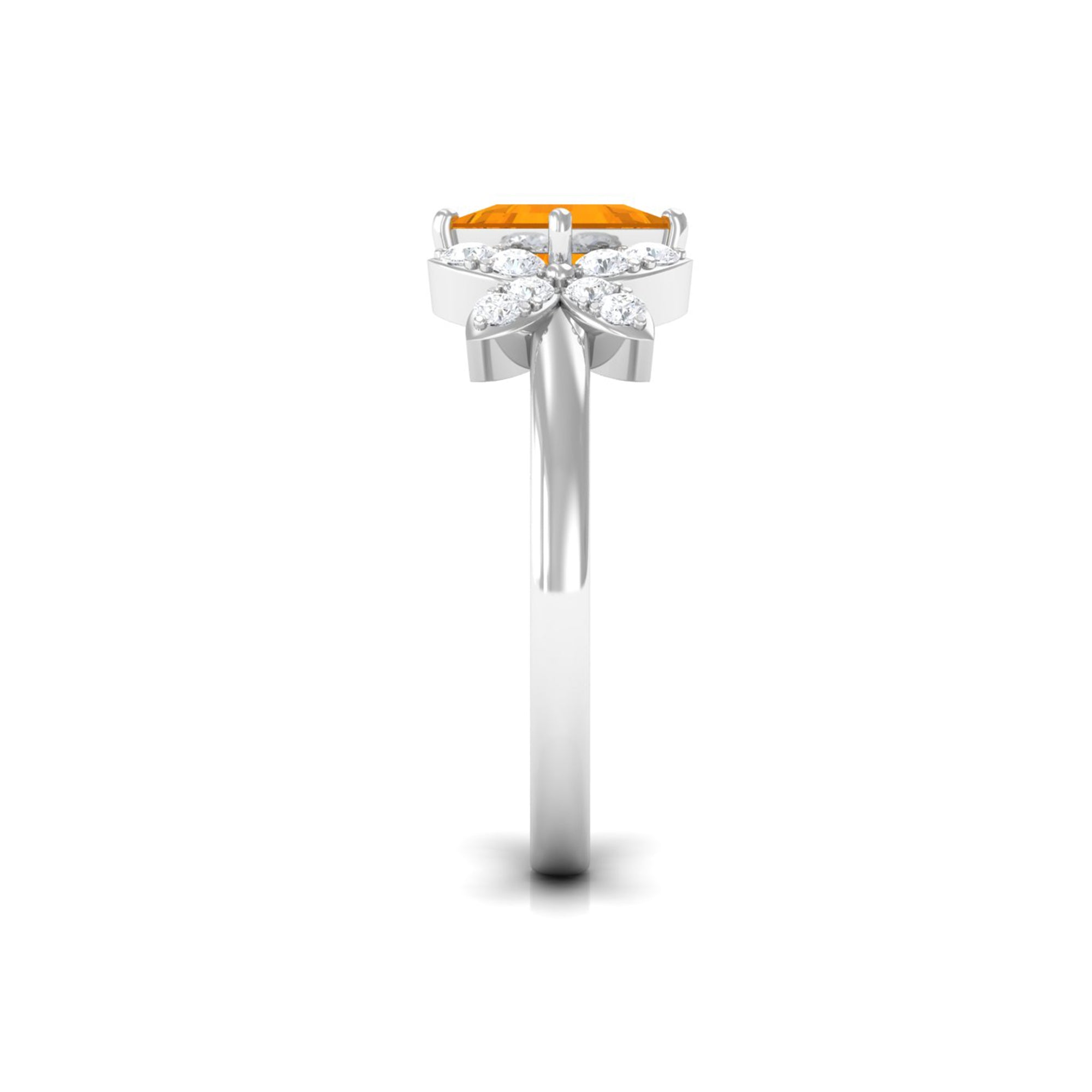 1.50 CT Princess Cut Fire Opal Flower Engagement Ring with Diamond