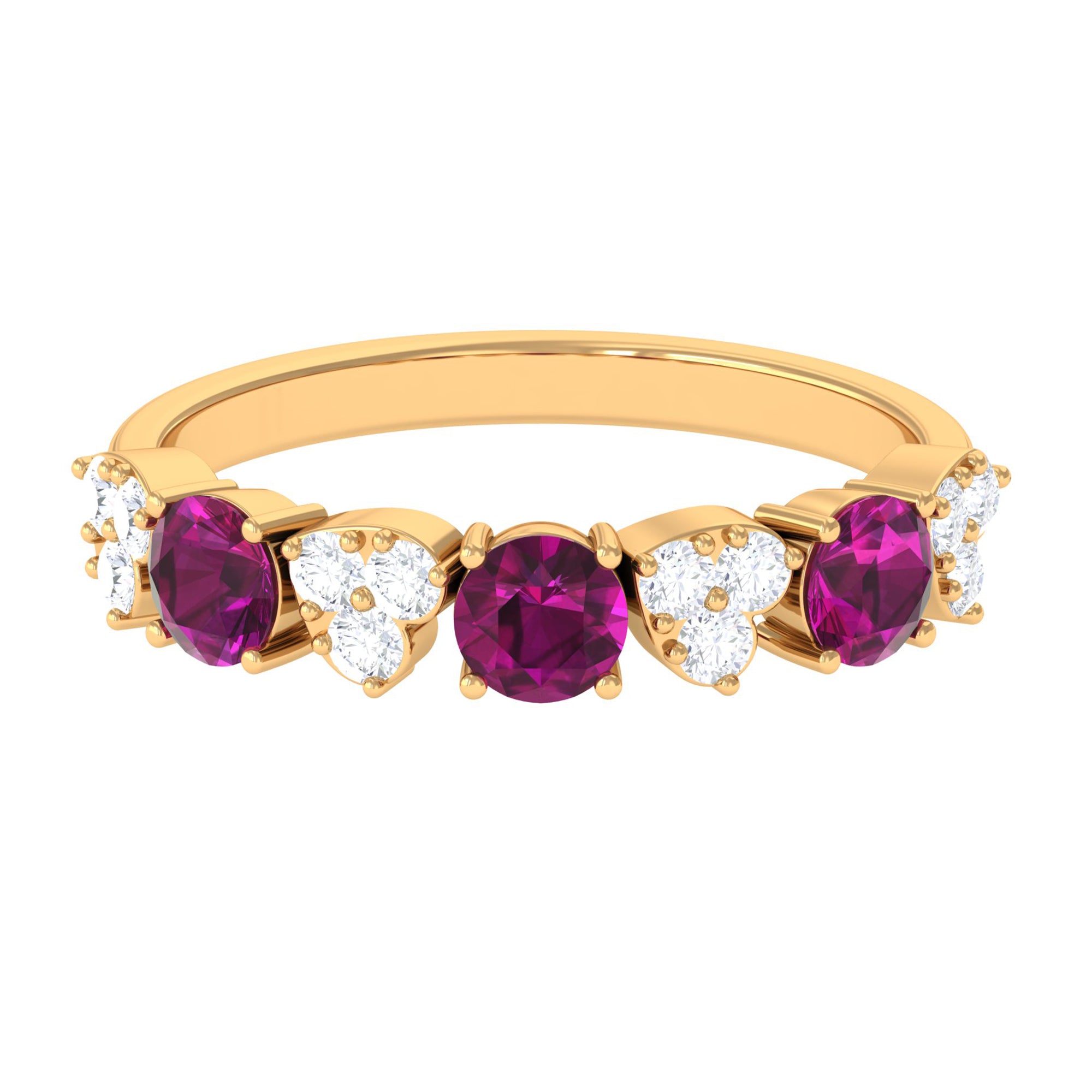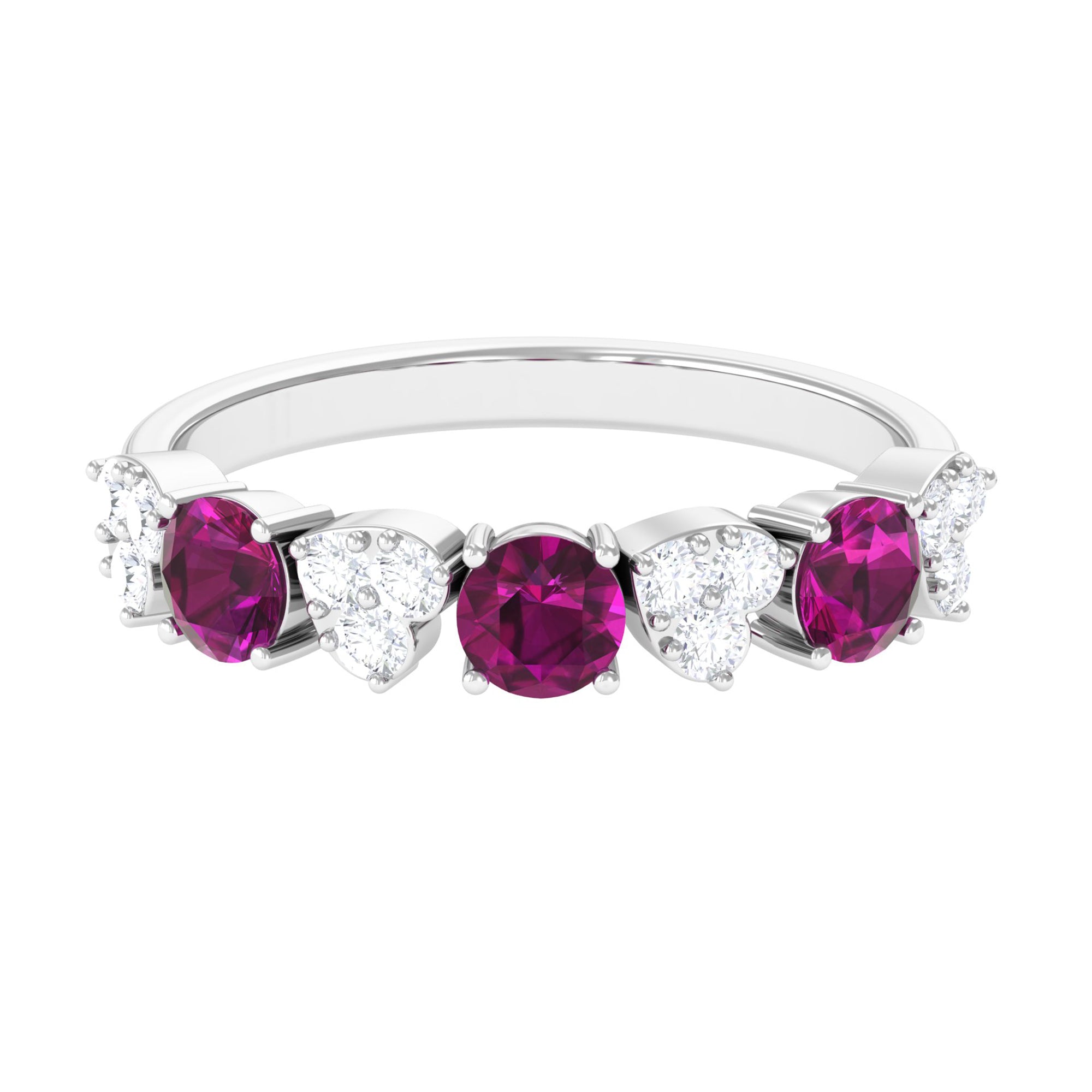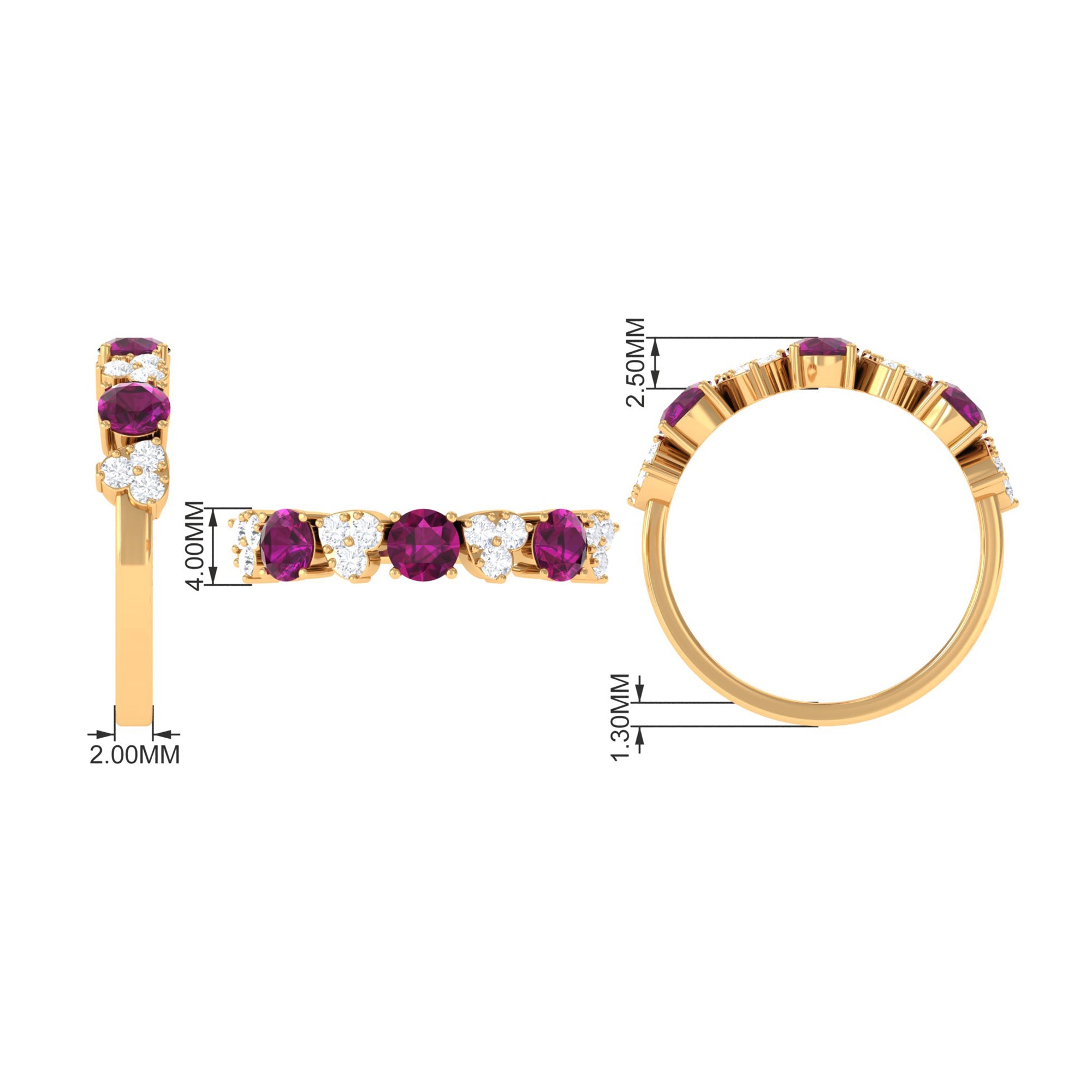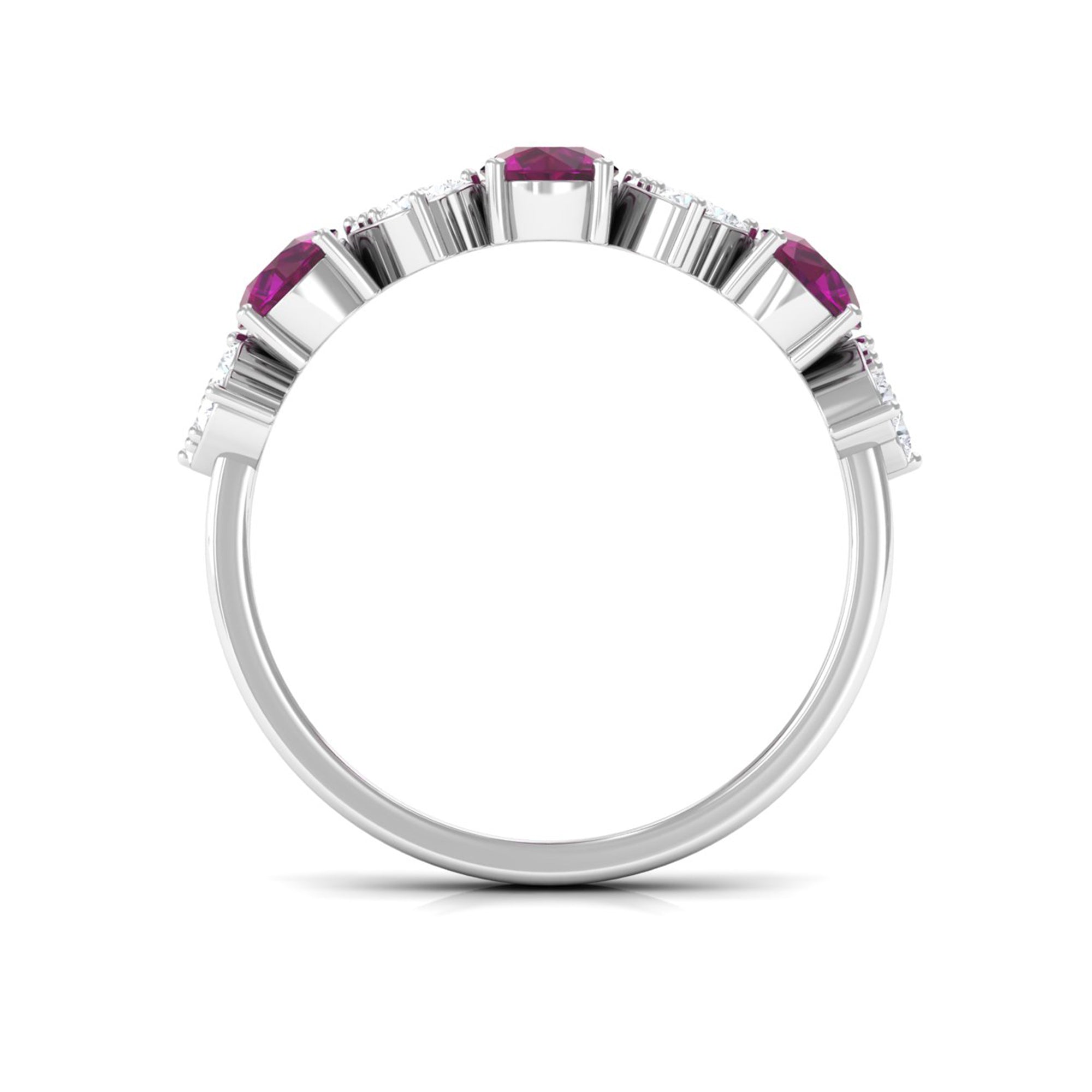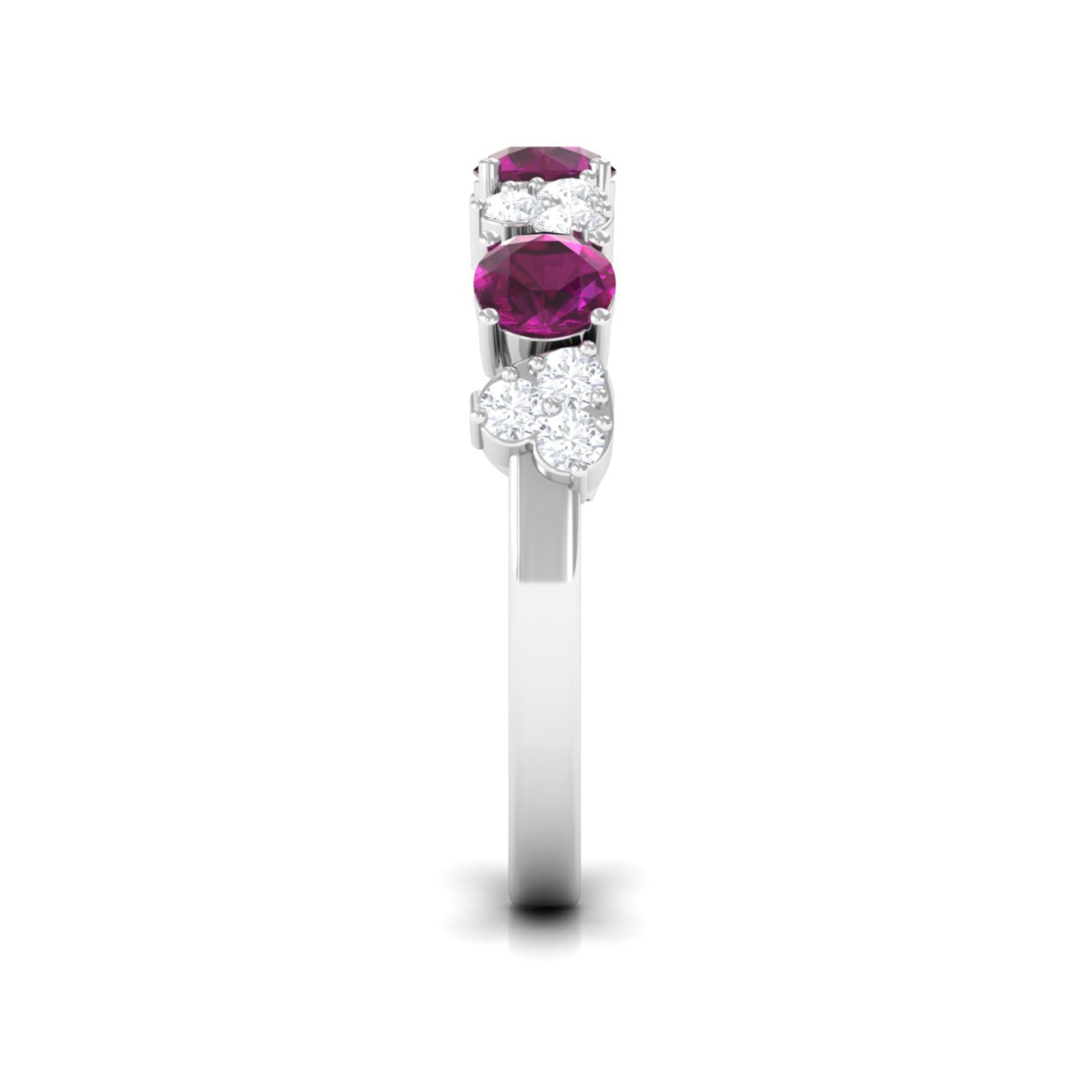 1.50 CT Rhodolite and Diamond Heart Shape Alternate Eternity Ring