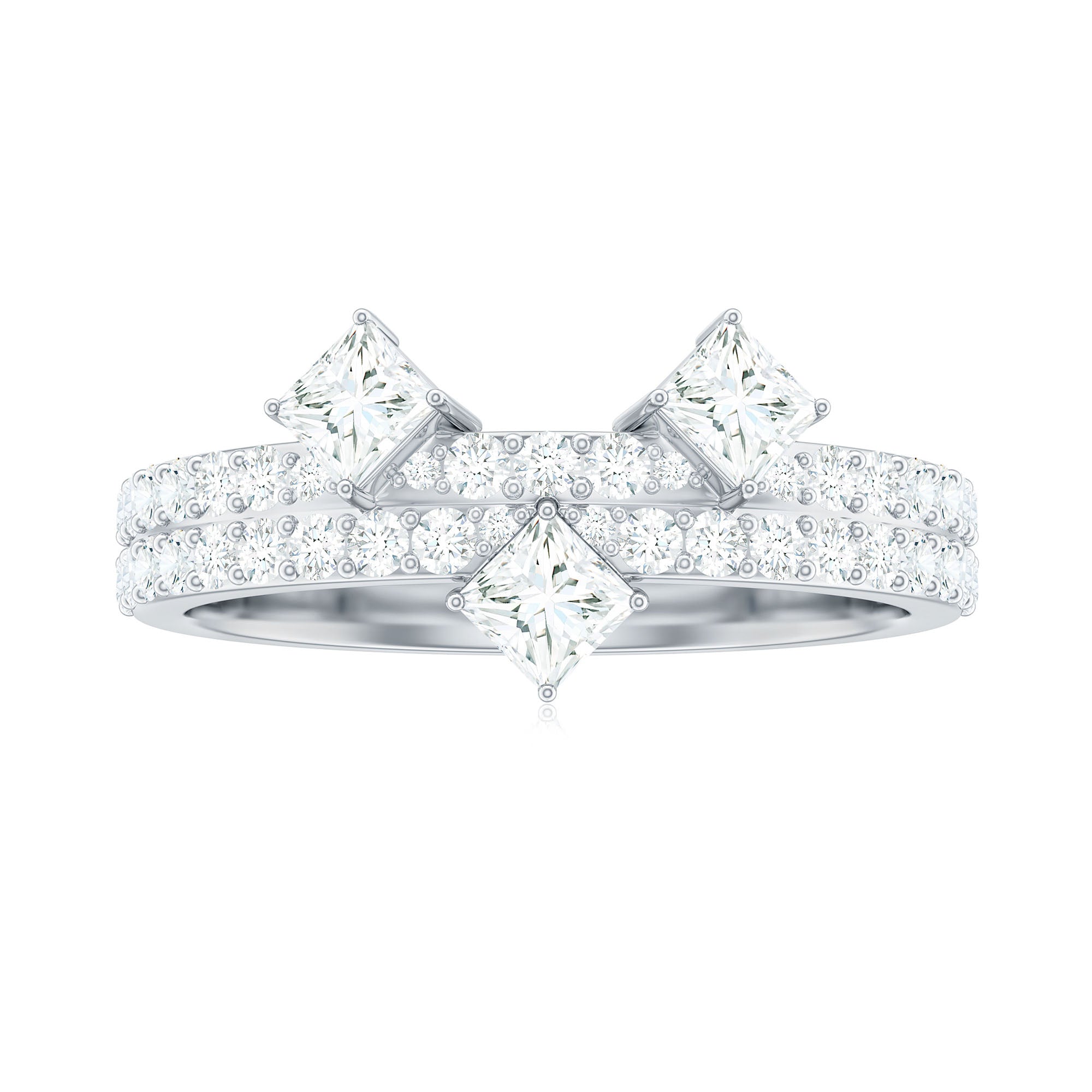 1.50 CT Round and Princess Moissanite Designer Band Ring