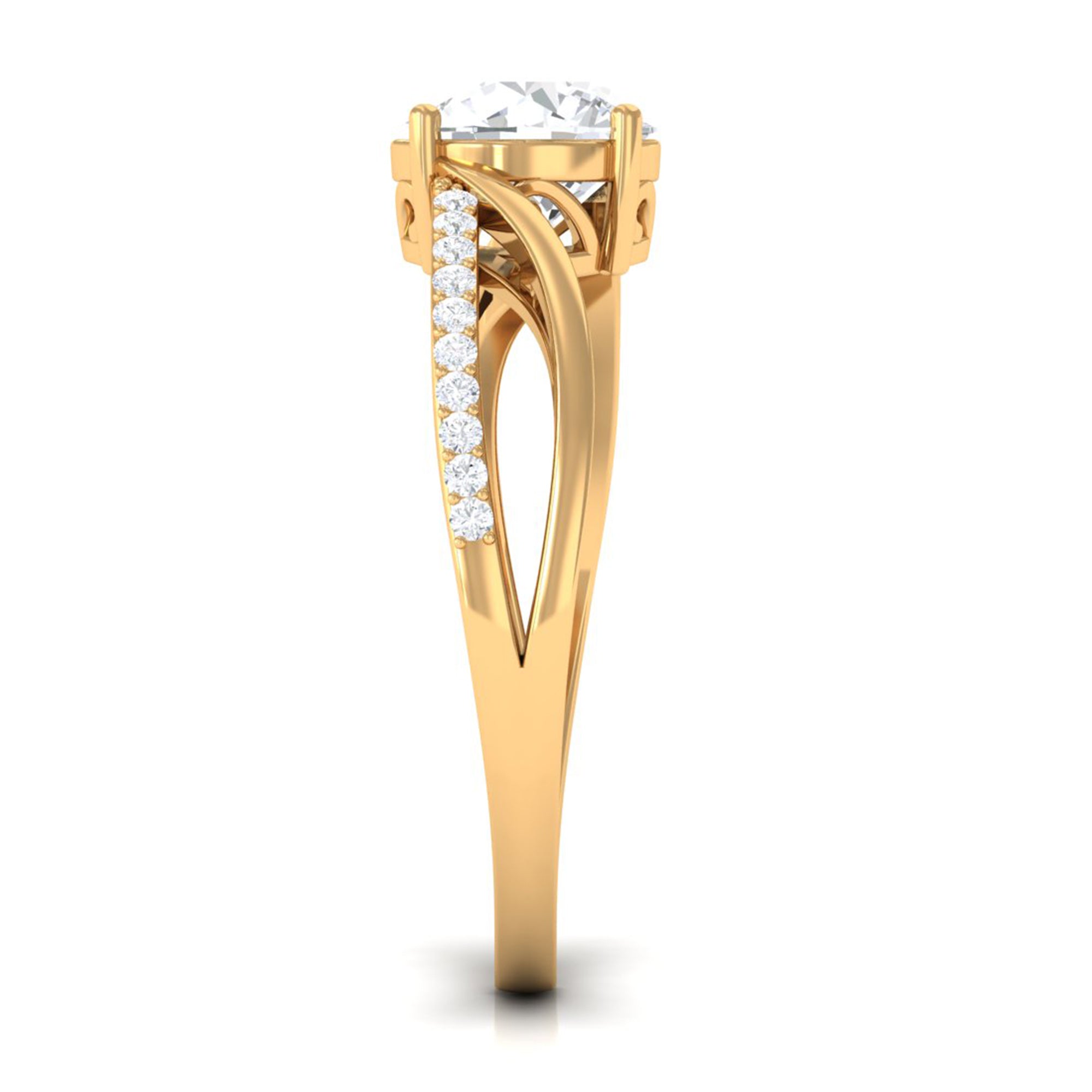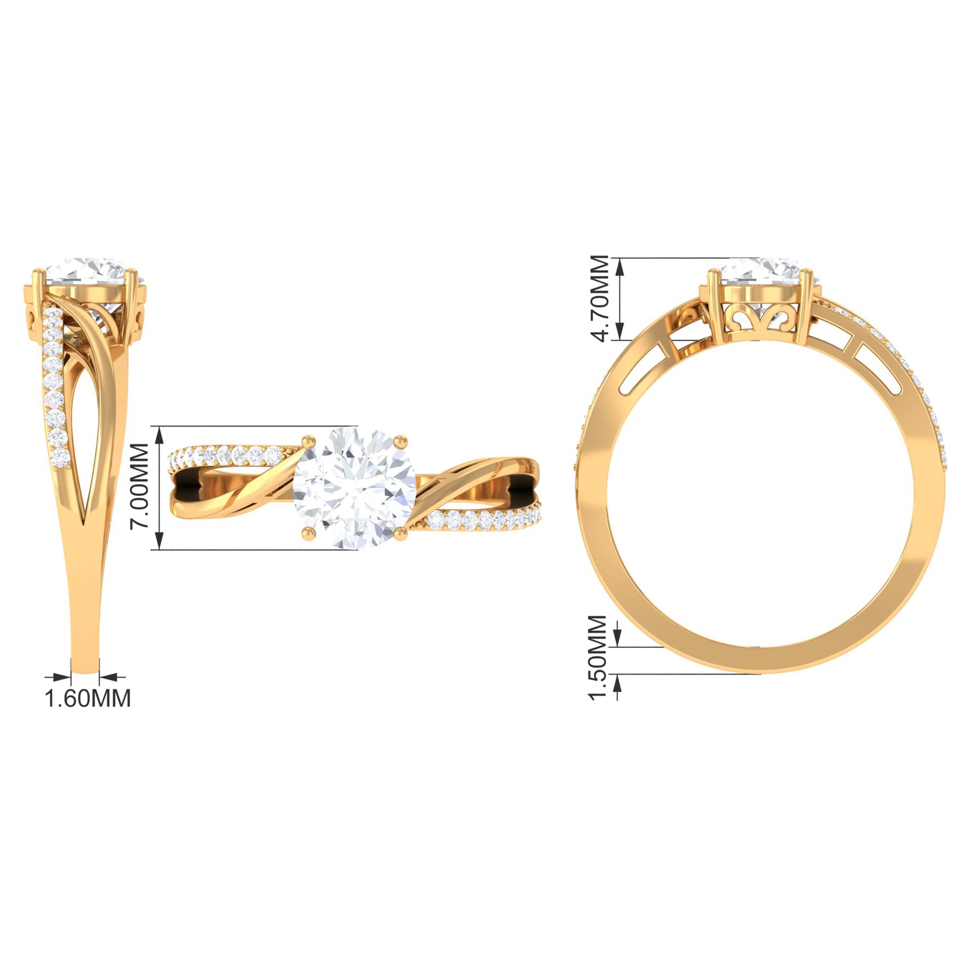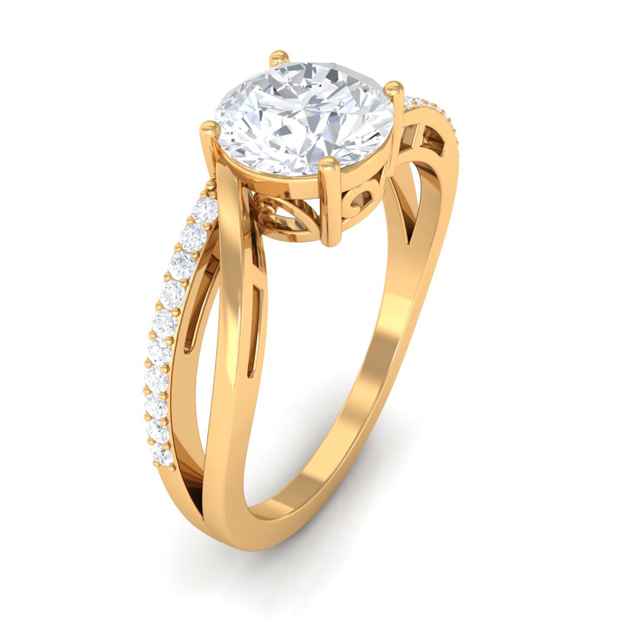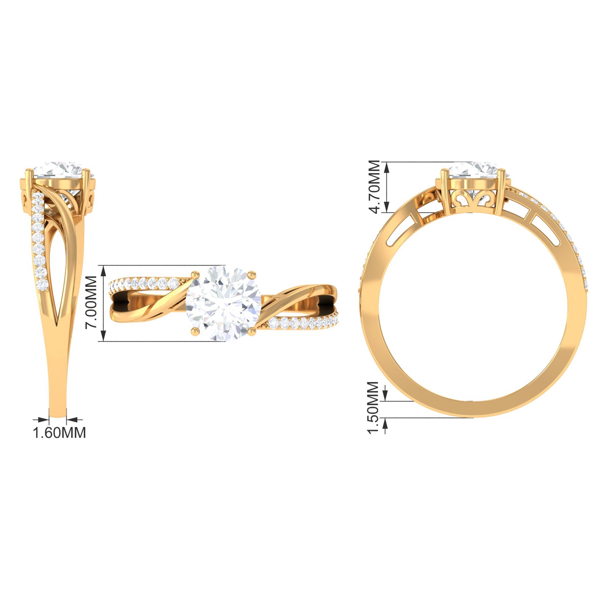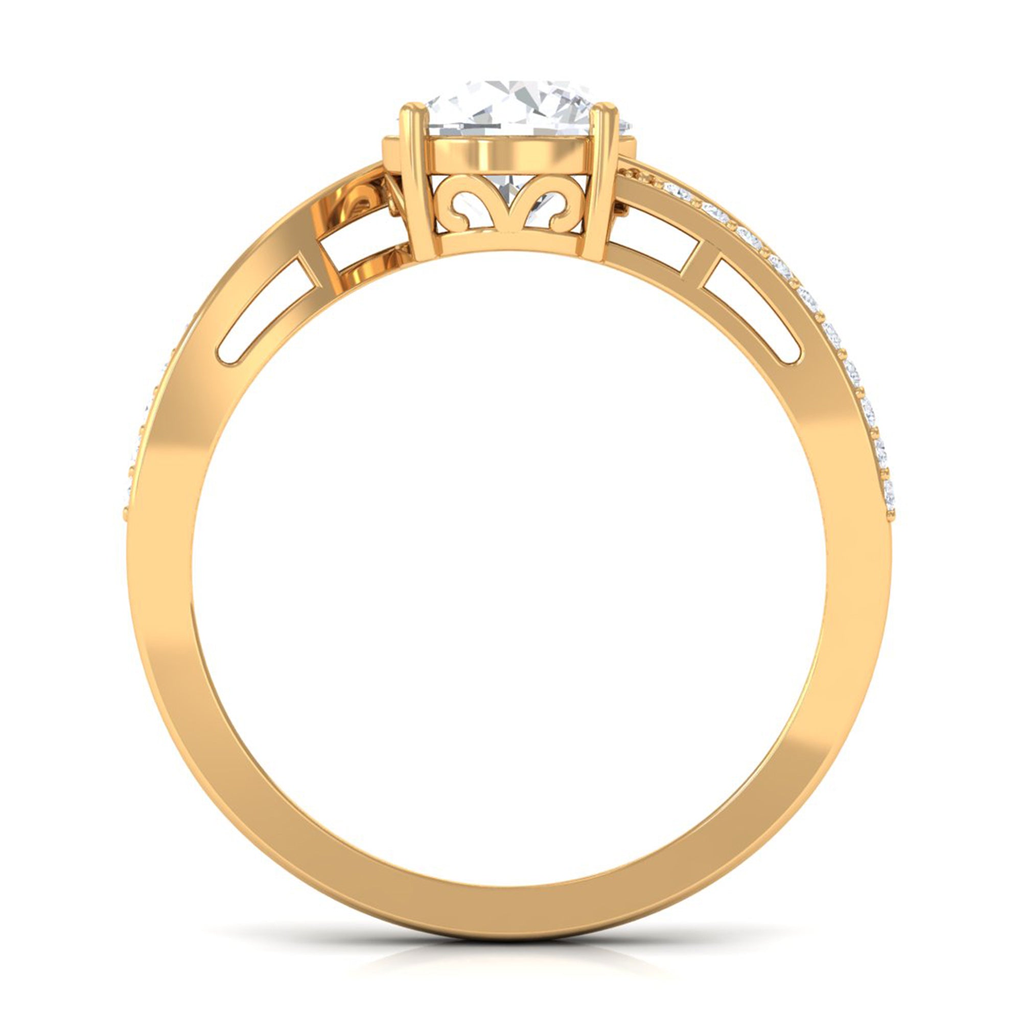 Jewelry has the power to be the one little thing that makes you feel unique. This Bypass Engagement Ring is embellished with Round Cut Zircon in Bypass Shank. This Simulated Diamond Engagement Ring is crafted in gold. Tell your story by wearing this Beautiful Solitaire Engagement Ring.