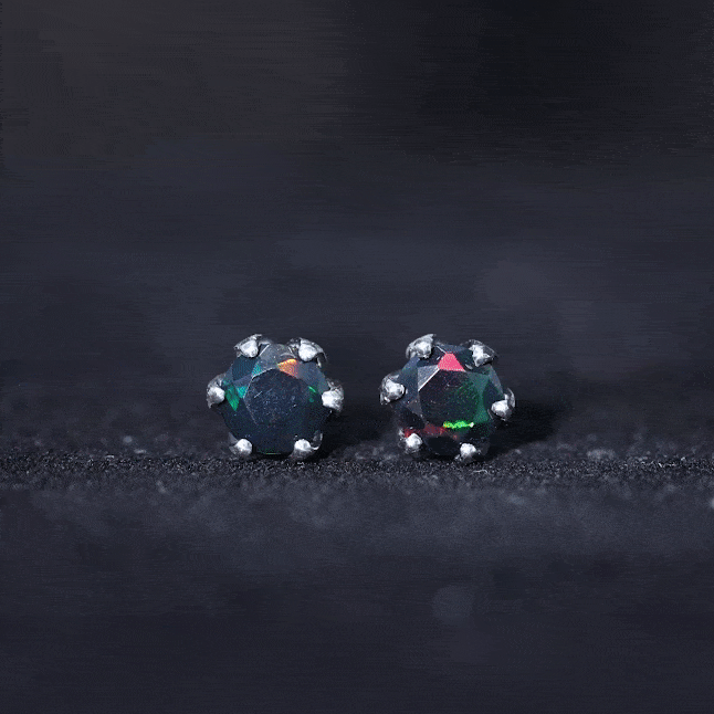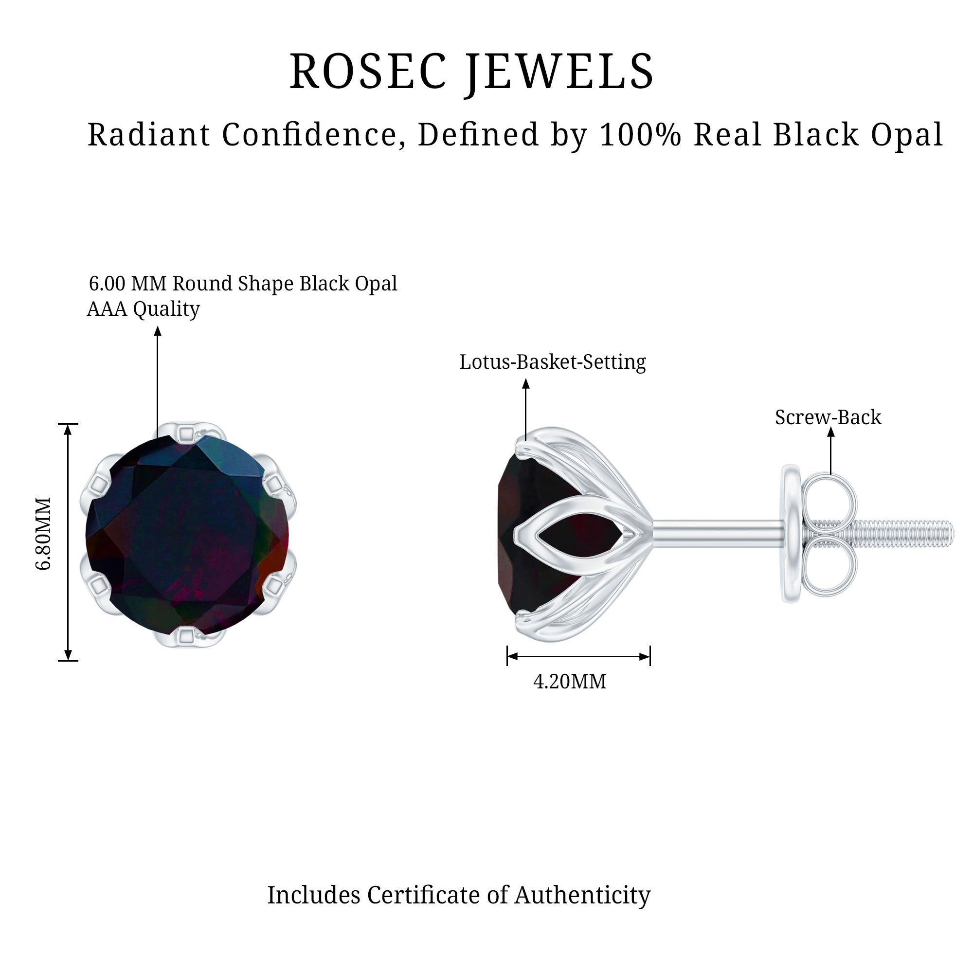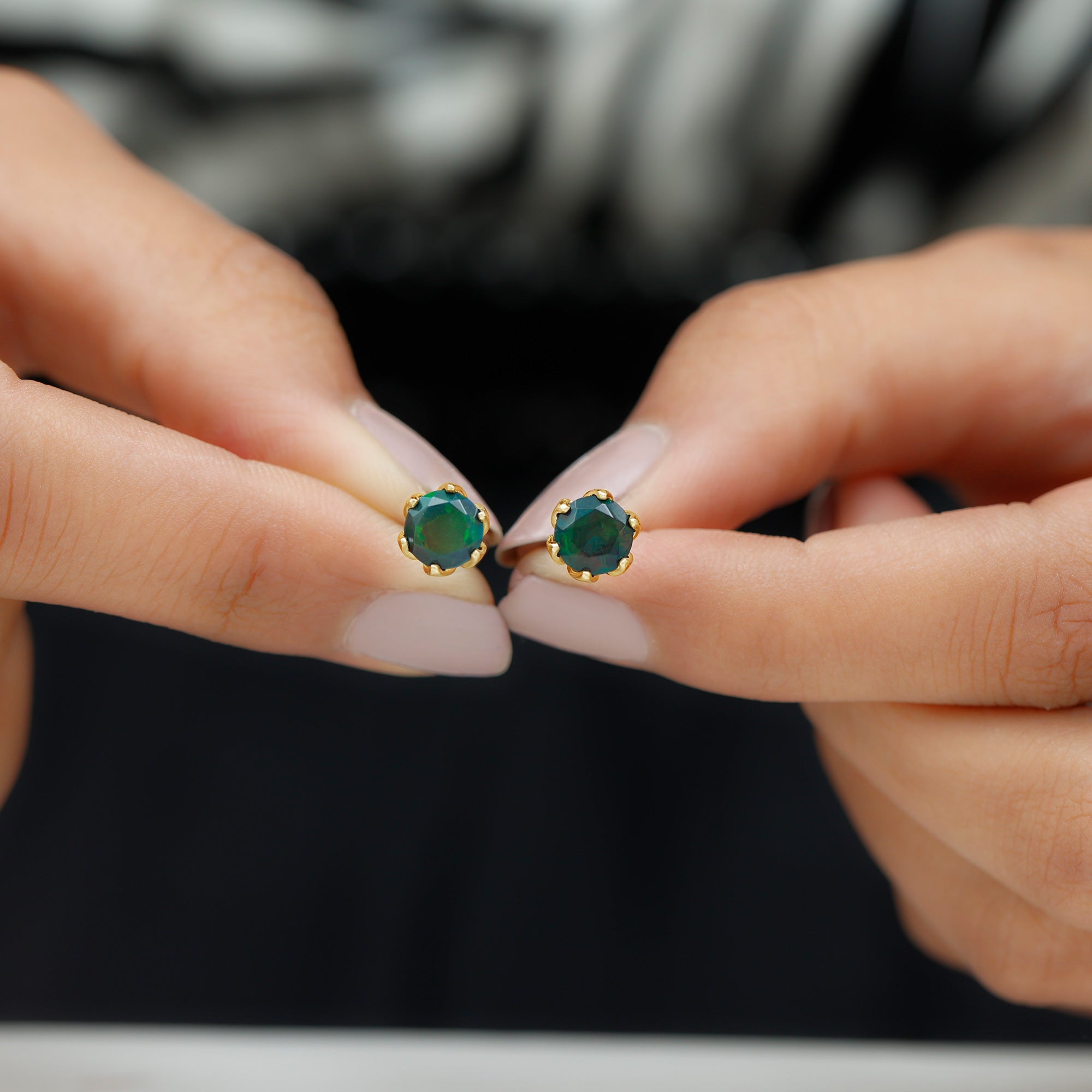 1.50 CT Round Shape Black Opal Solitaire Stud Earrings