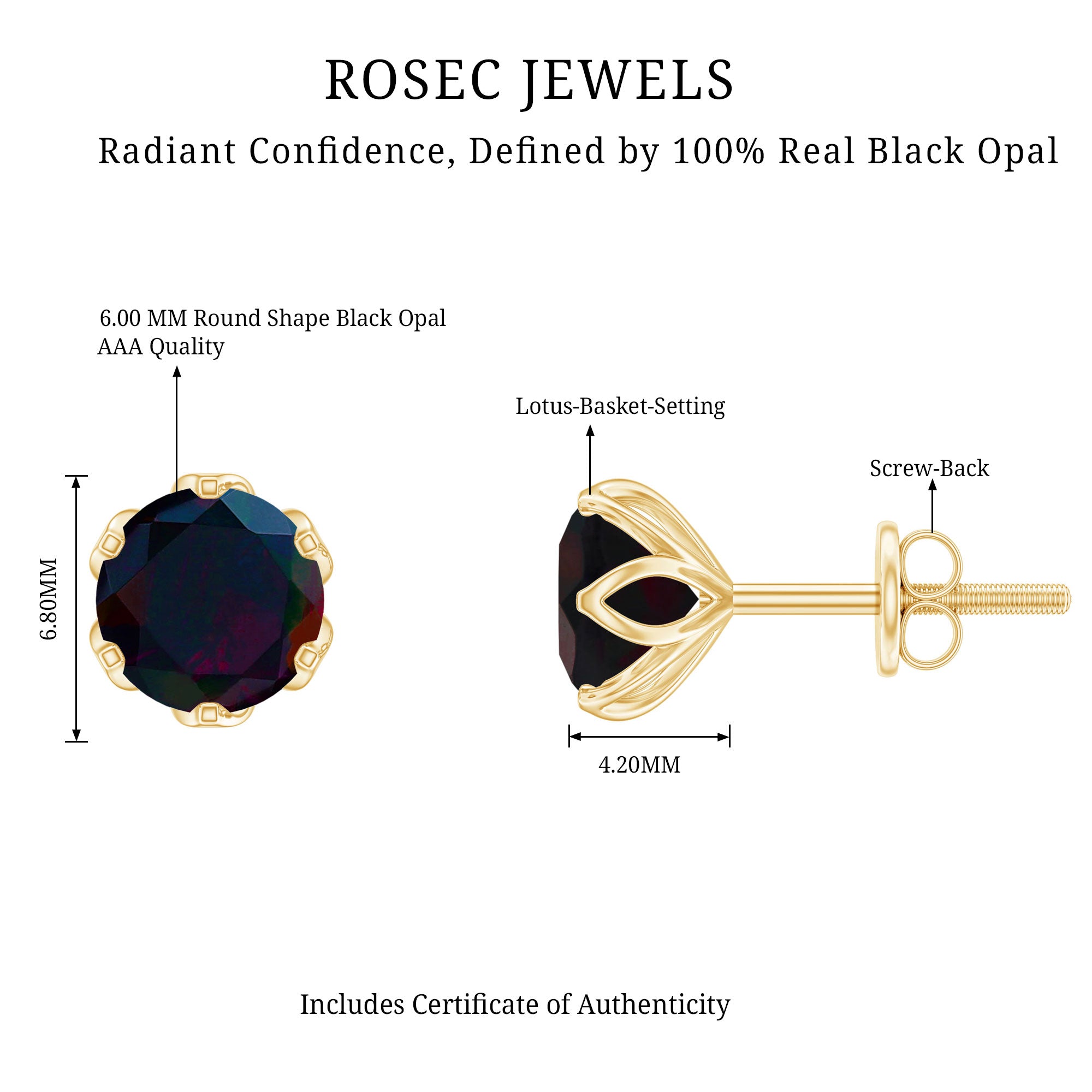 Make a bold statement with these Solitaire Stud Earrings. Adorned with Round Shape Black Opal in Lotus Basket Setting, these Stud Earrings add a touch of sophistication and elegance to any outfit. The Screw Back ensures that they stay securely in place, making them comfortable and easy to wear. Crafted from gold metal, these earrings are designed to last for years to come. Whether you are looking for a special gift for a loved one or a stylish addition to your own jewelry collection, these earrings are sure to become a beloved staple. Dress them up or down for any occasion and enjoy their timeless beauty.