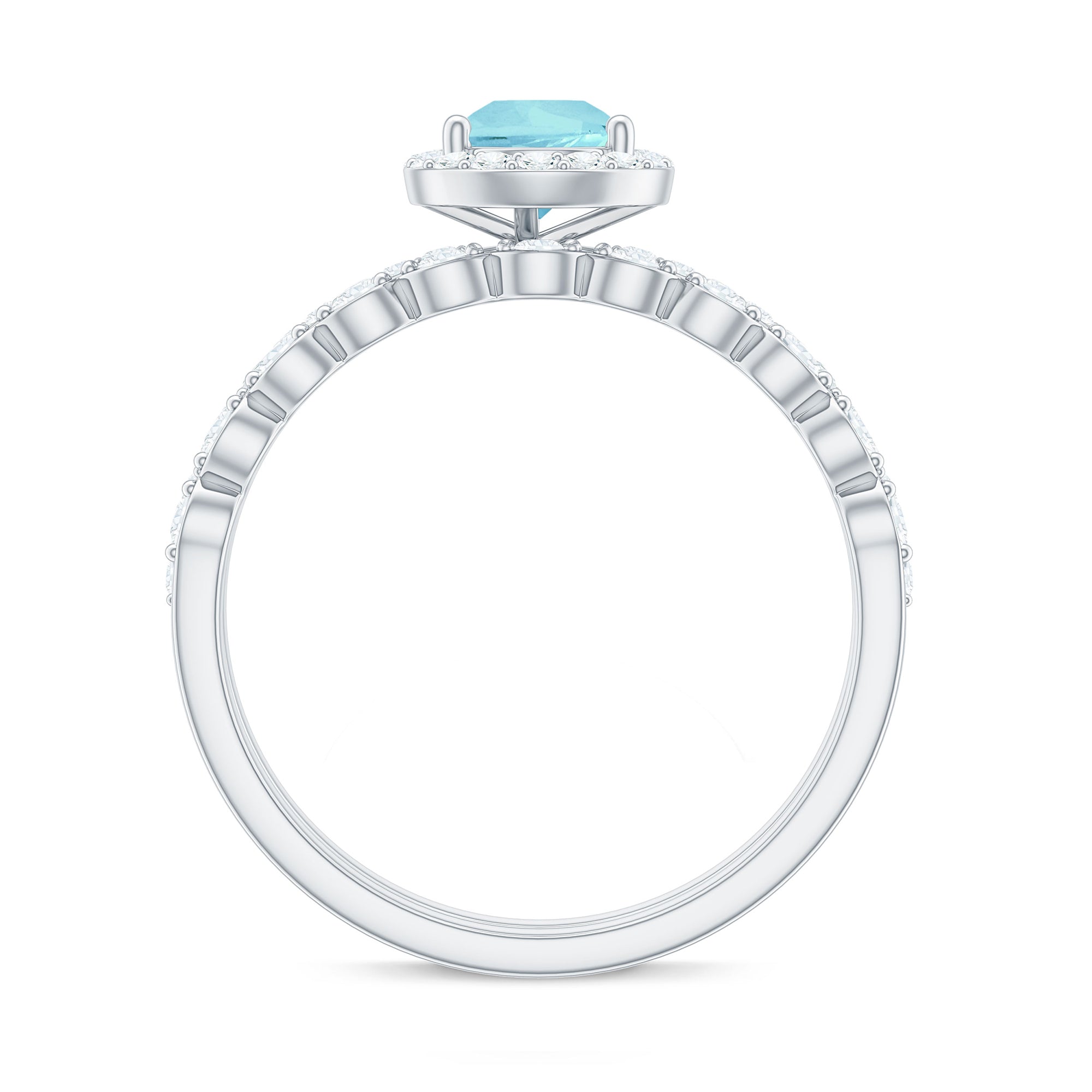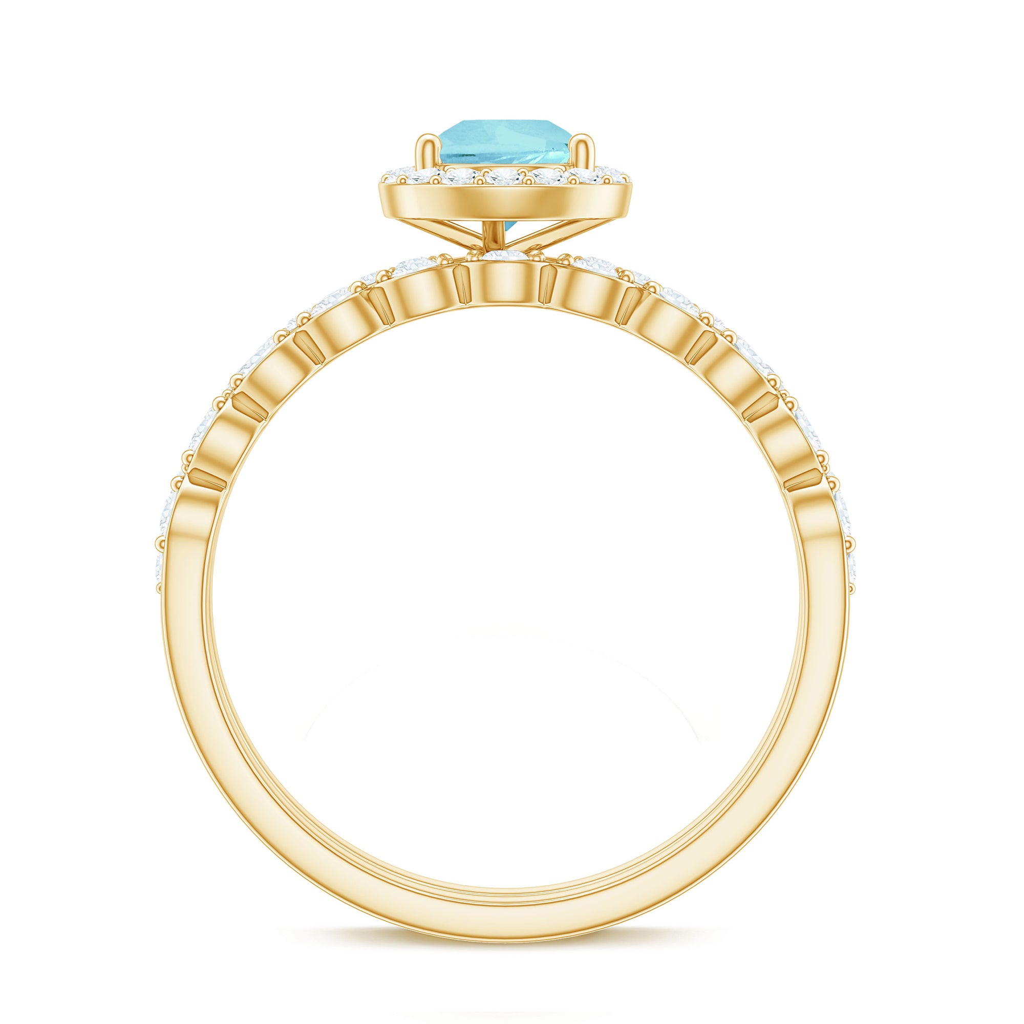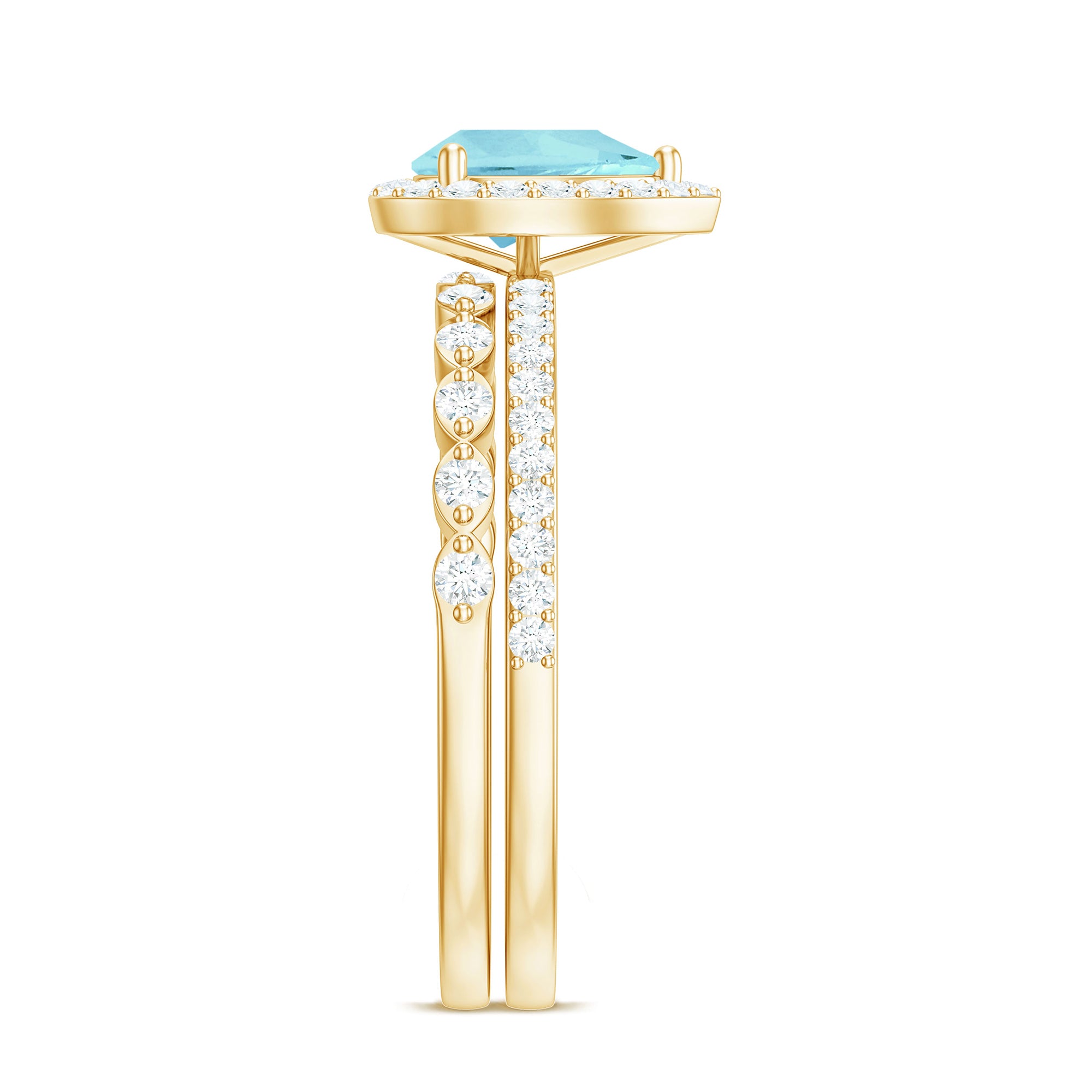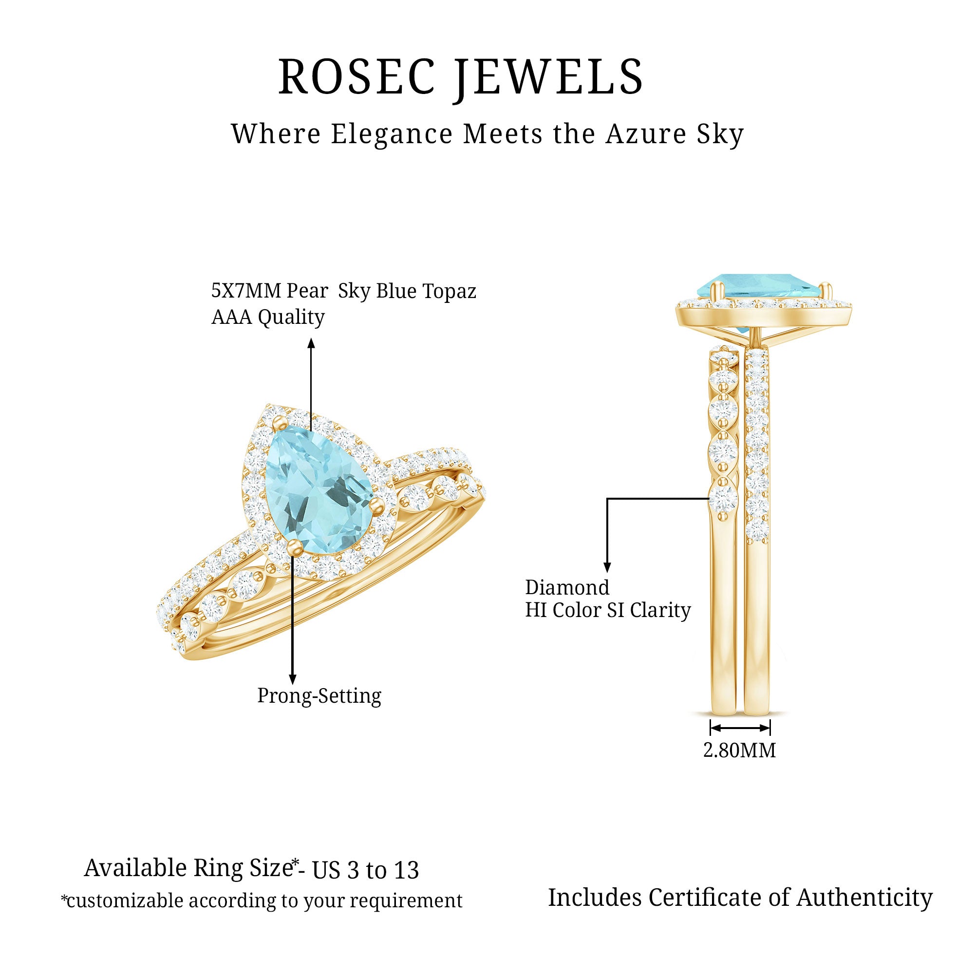 Elegance meets romance in our Teardrop Sky Blue Topaz Bridal Ring Set with Diamond. The focal point, a graceful teardrop-shaped Sky Blue Topaz, captures the essence of everlasting love with its serene blue hue. Nestled in a halo of brilliant Diamond stones, the design exudes sophistication and sparkle, symbolizing the eternal nature of your commitment. The matching wedding band complements the engagement ring with seamless beauty.