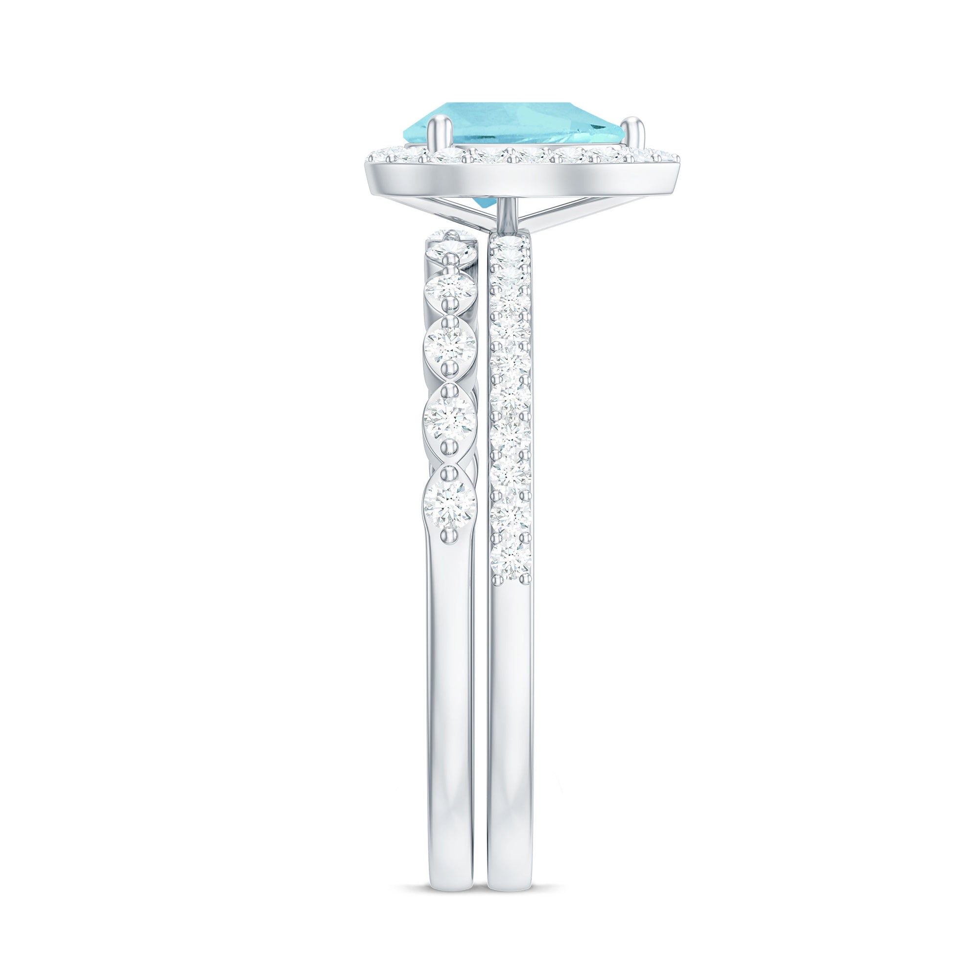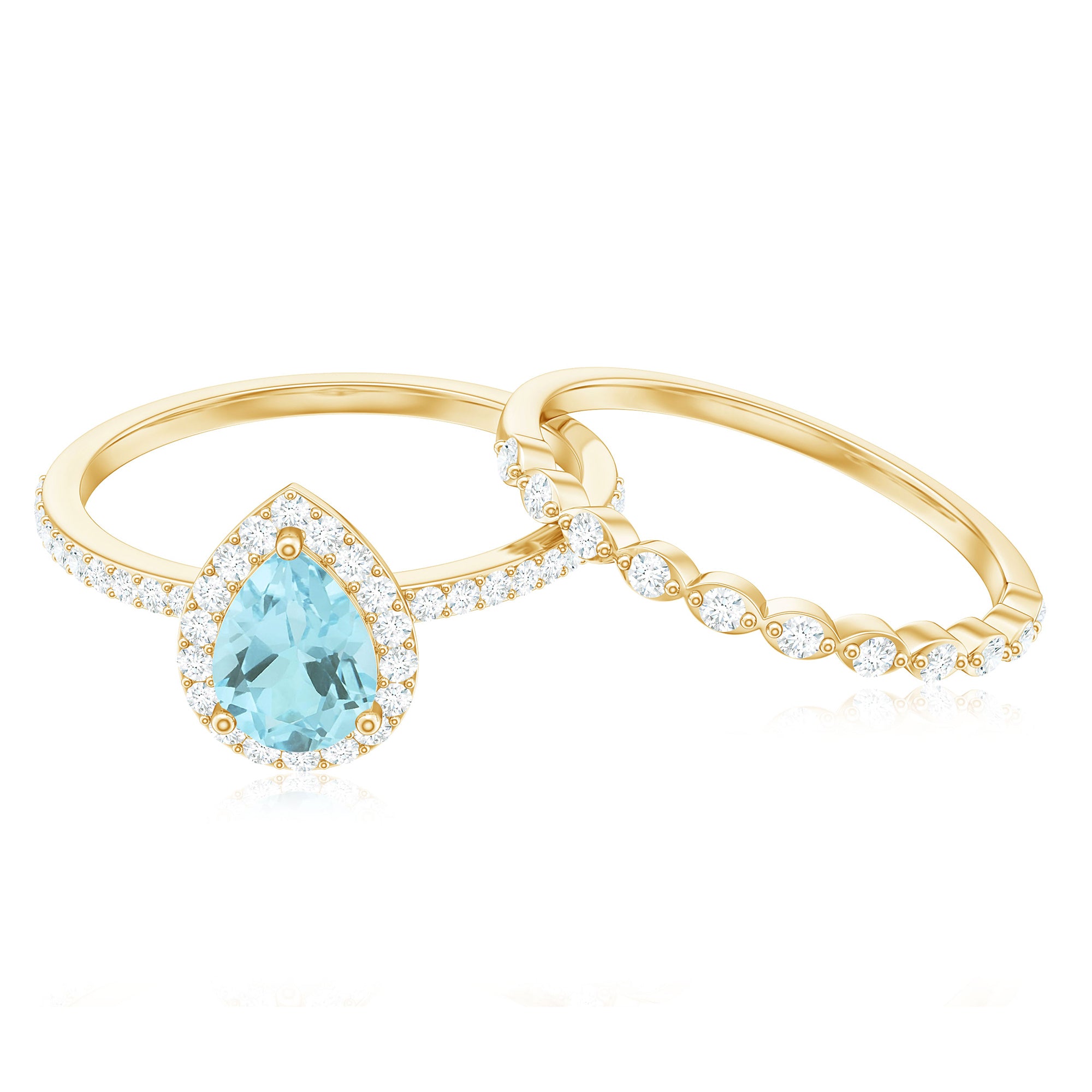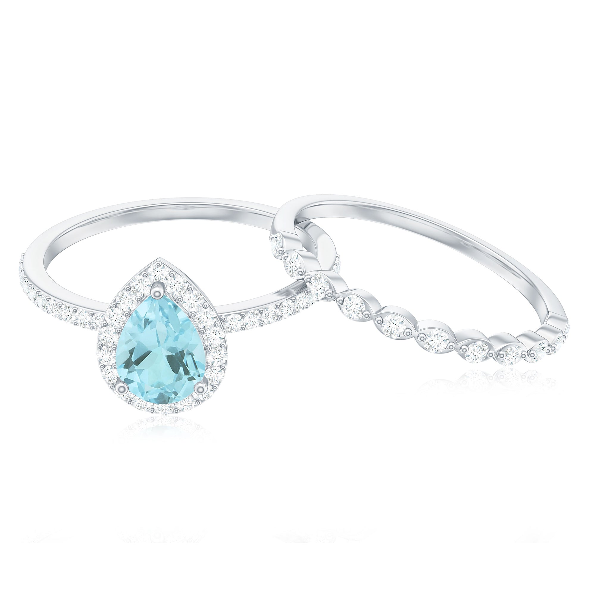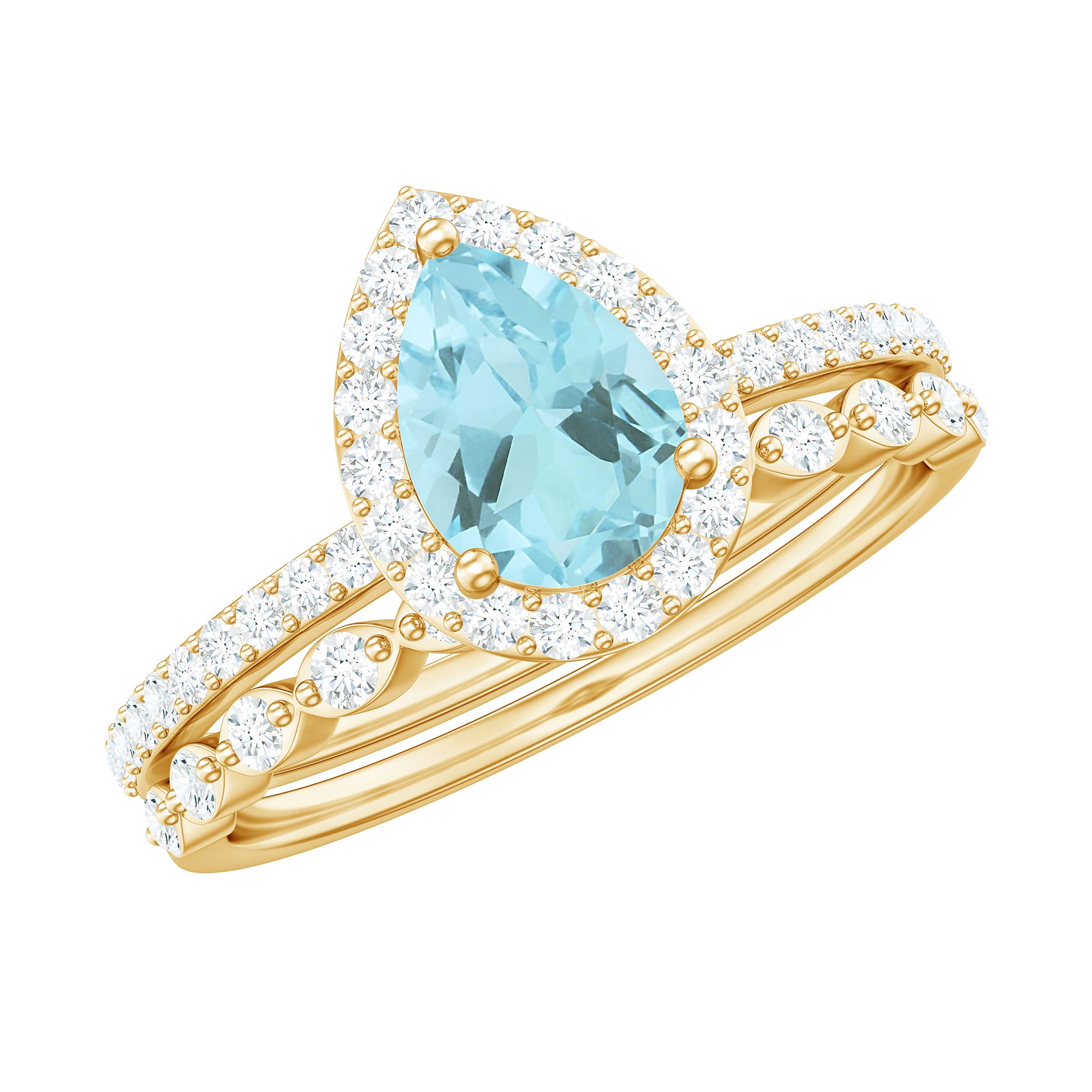 1.50 CT Teardrop Sky Blue Topaz Bridal Ring Set with Diamond