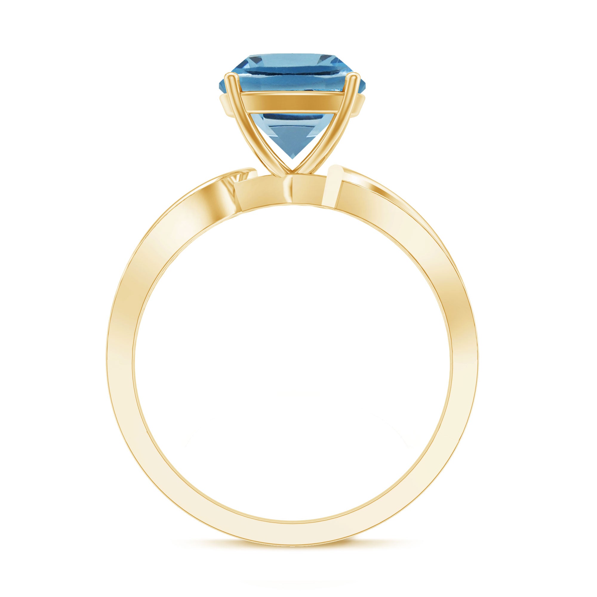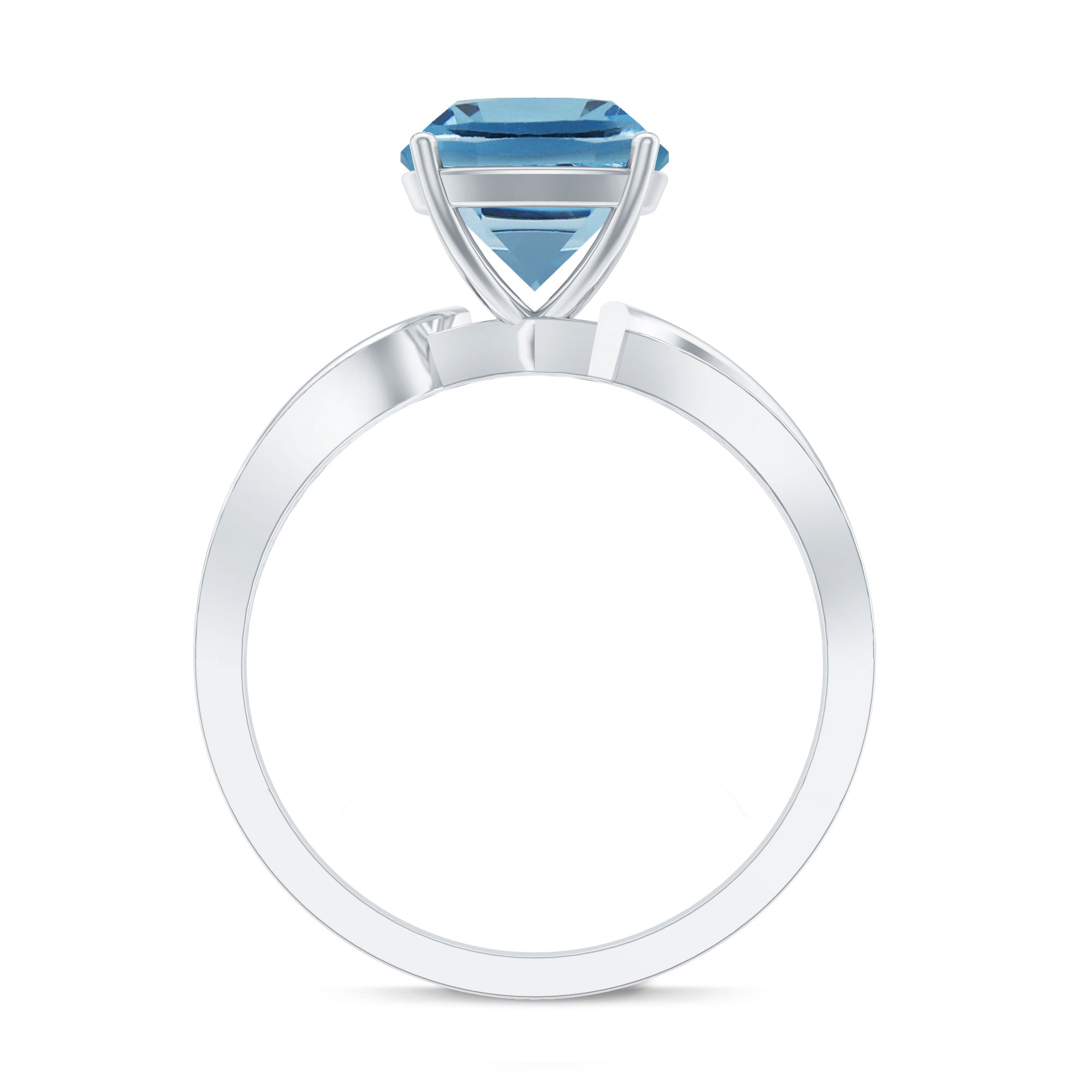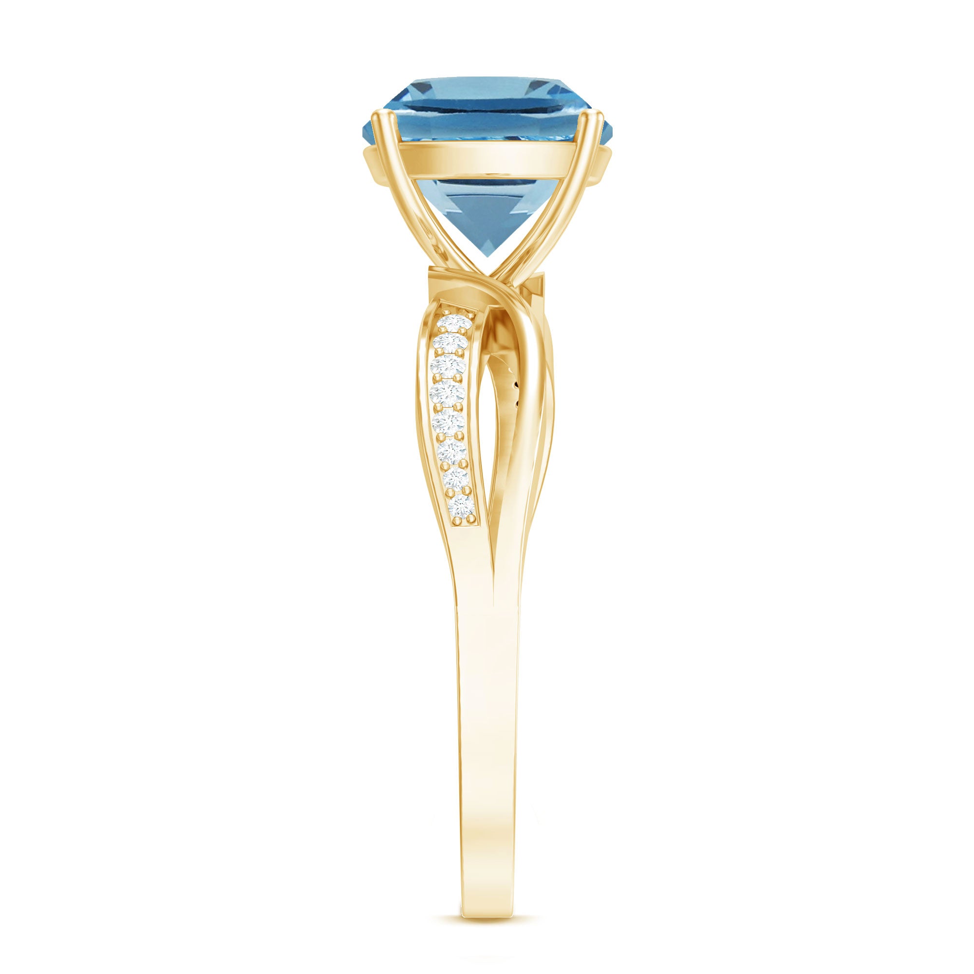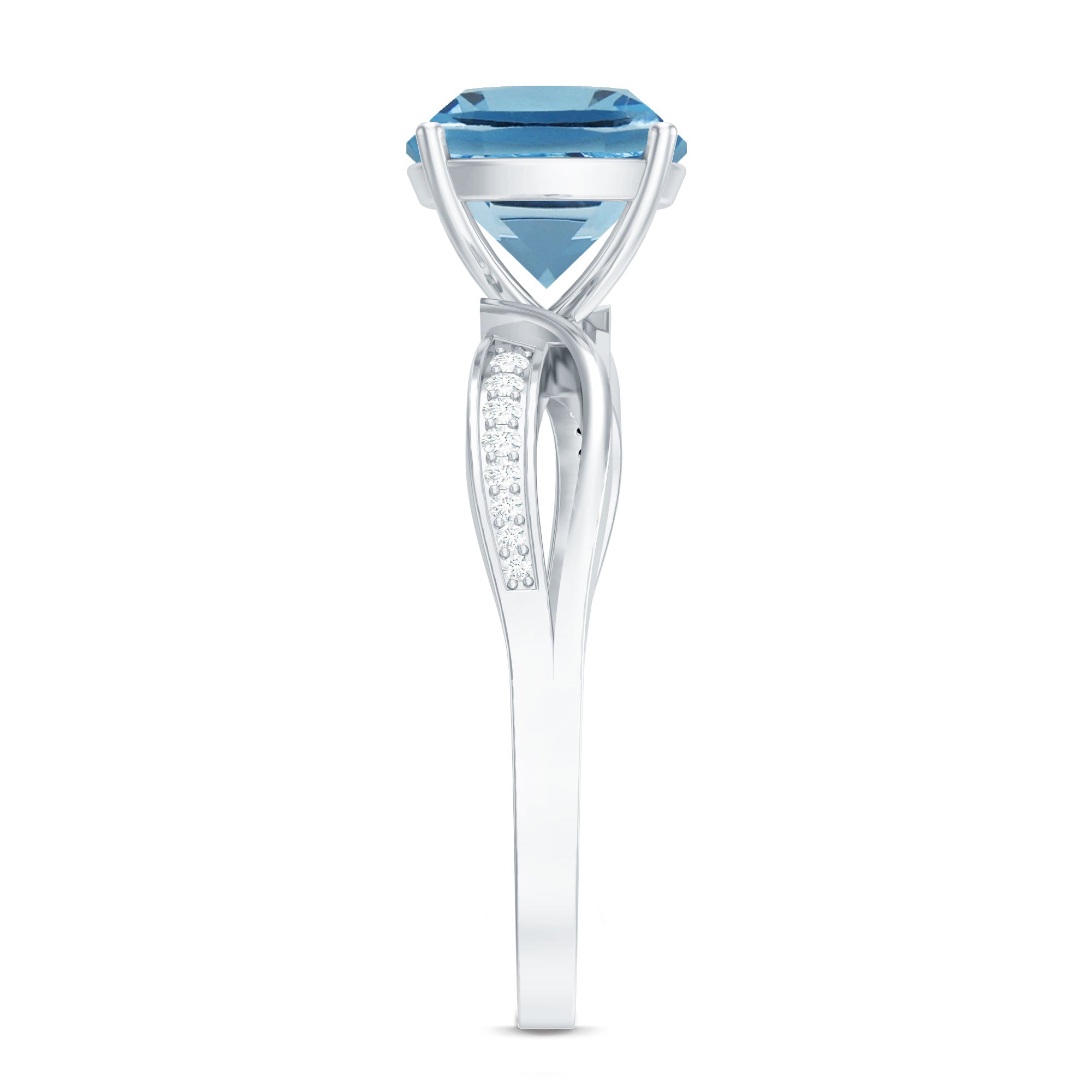 1.50 CT Two Tone Cushion Cut Swiss Blue Topaz Solitaire with Diamond Split Shank Ring