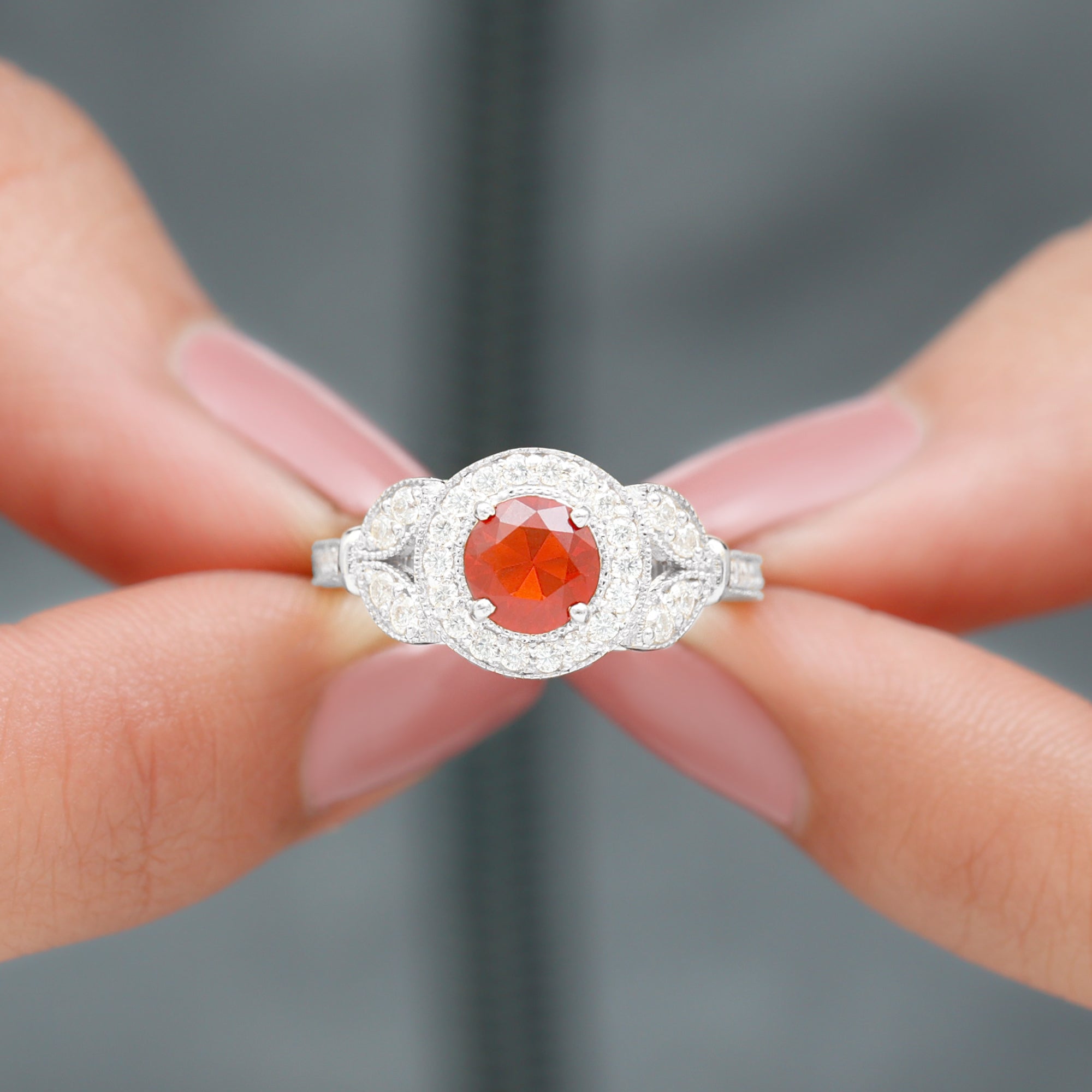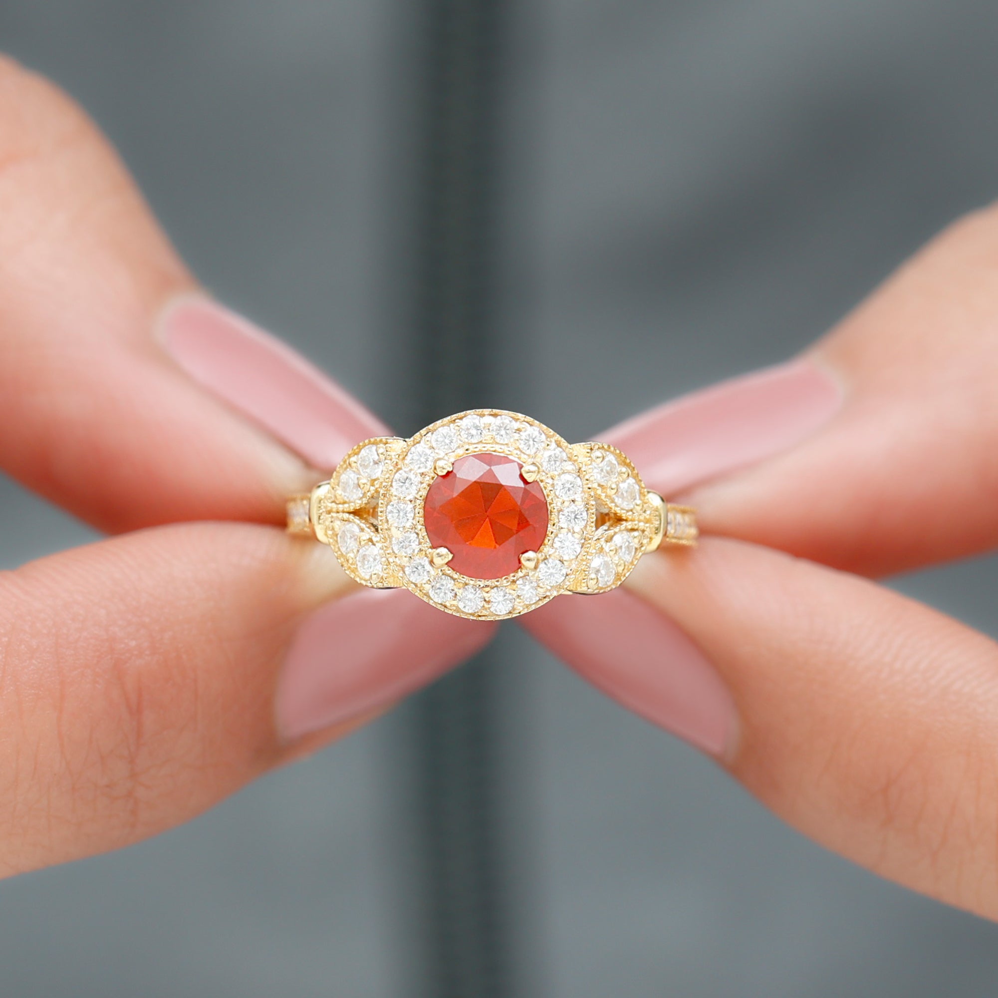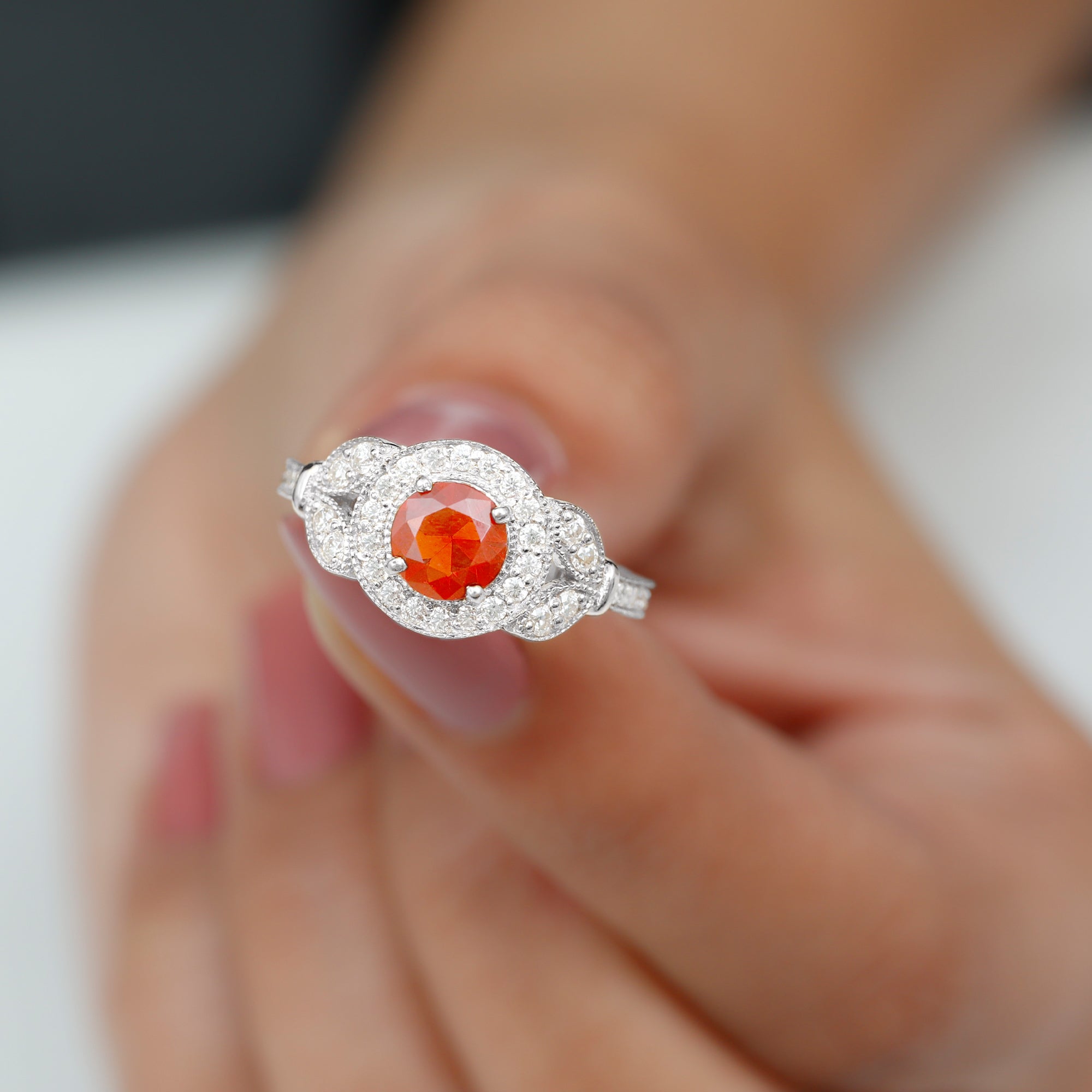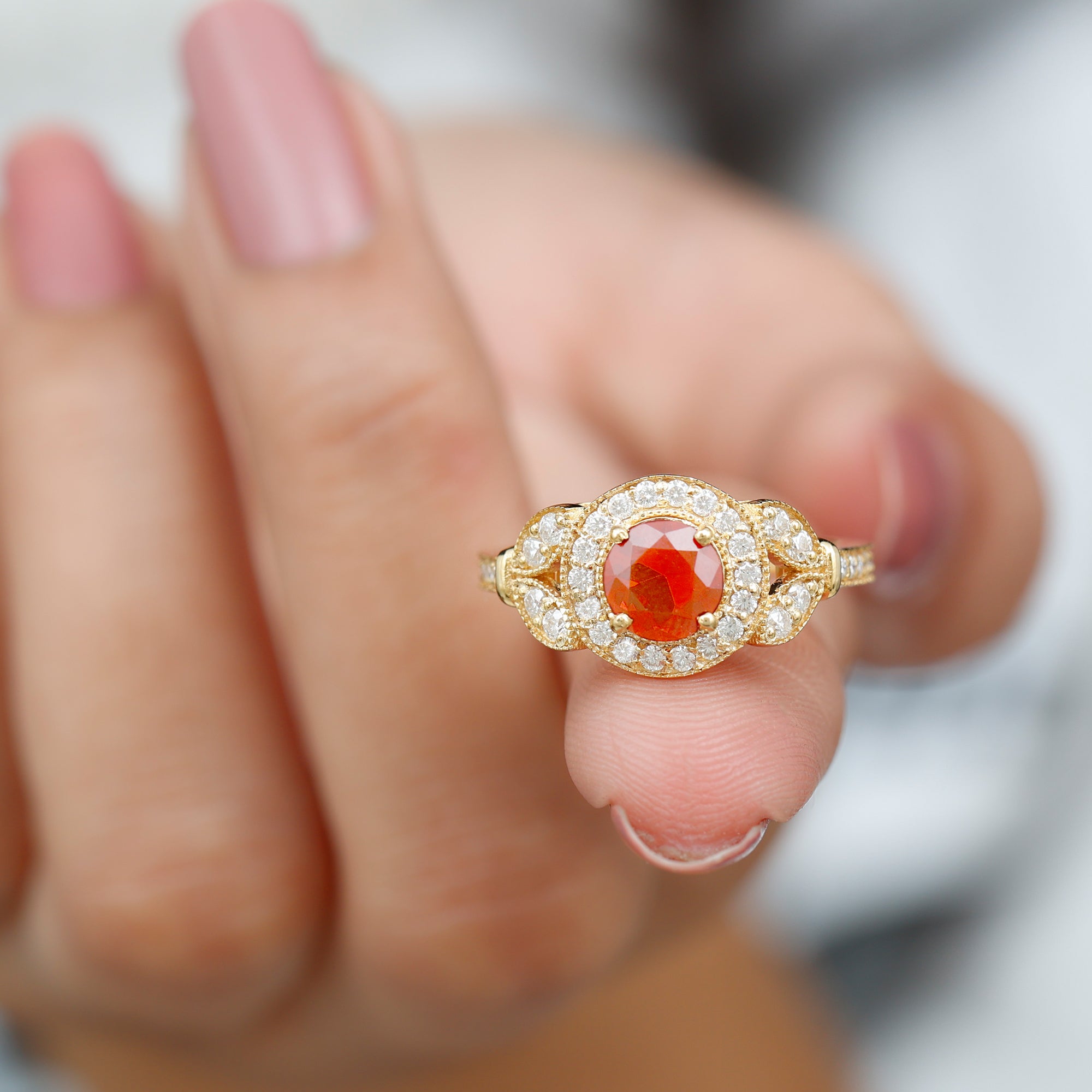 1.50 CT Vintage Inspired Fire Opal Engagement Ring with Diamond