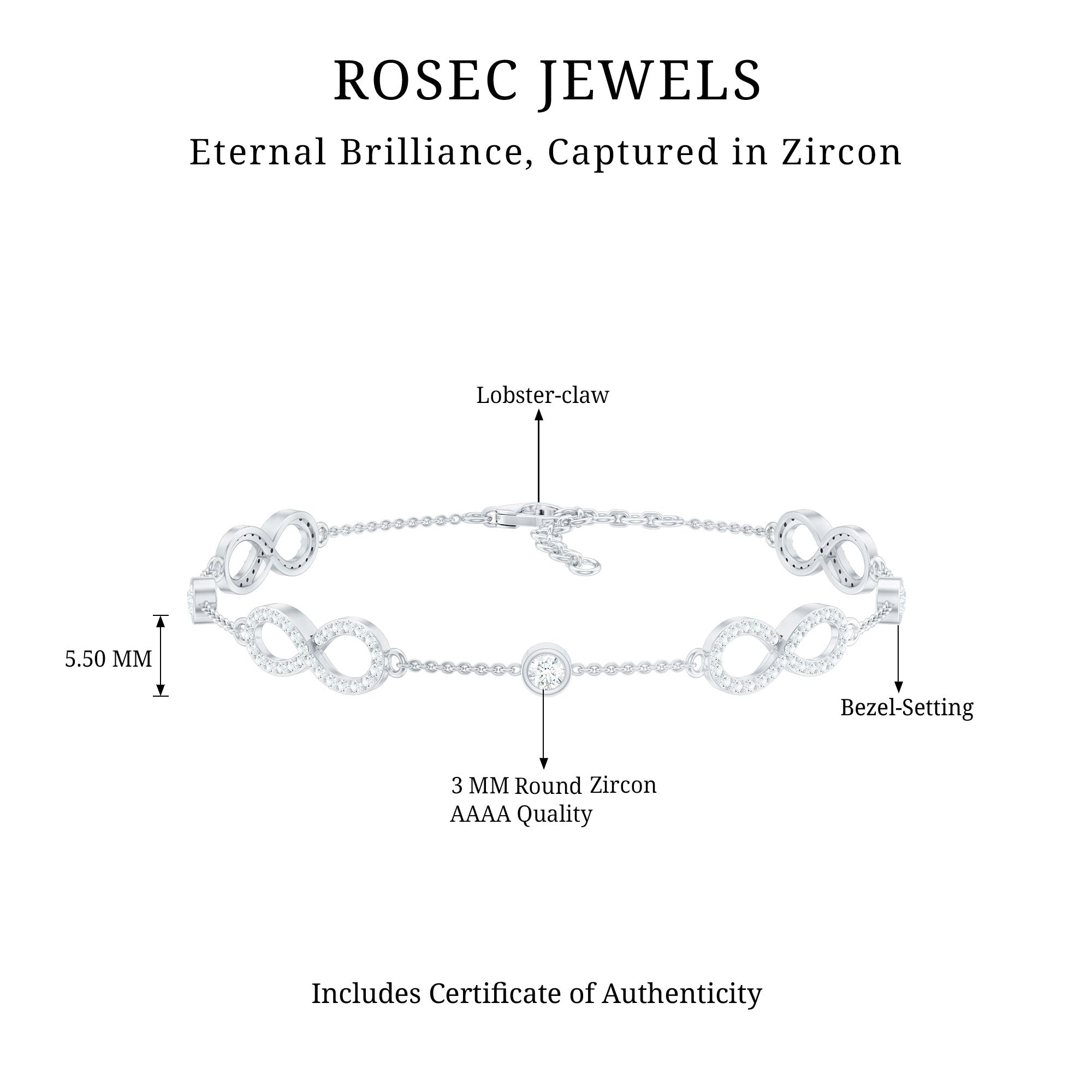 1.50 CT Zircon Infinity Station Chain Bracelet