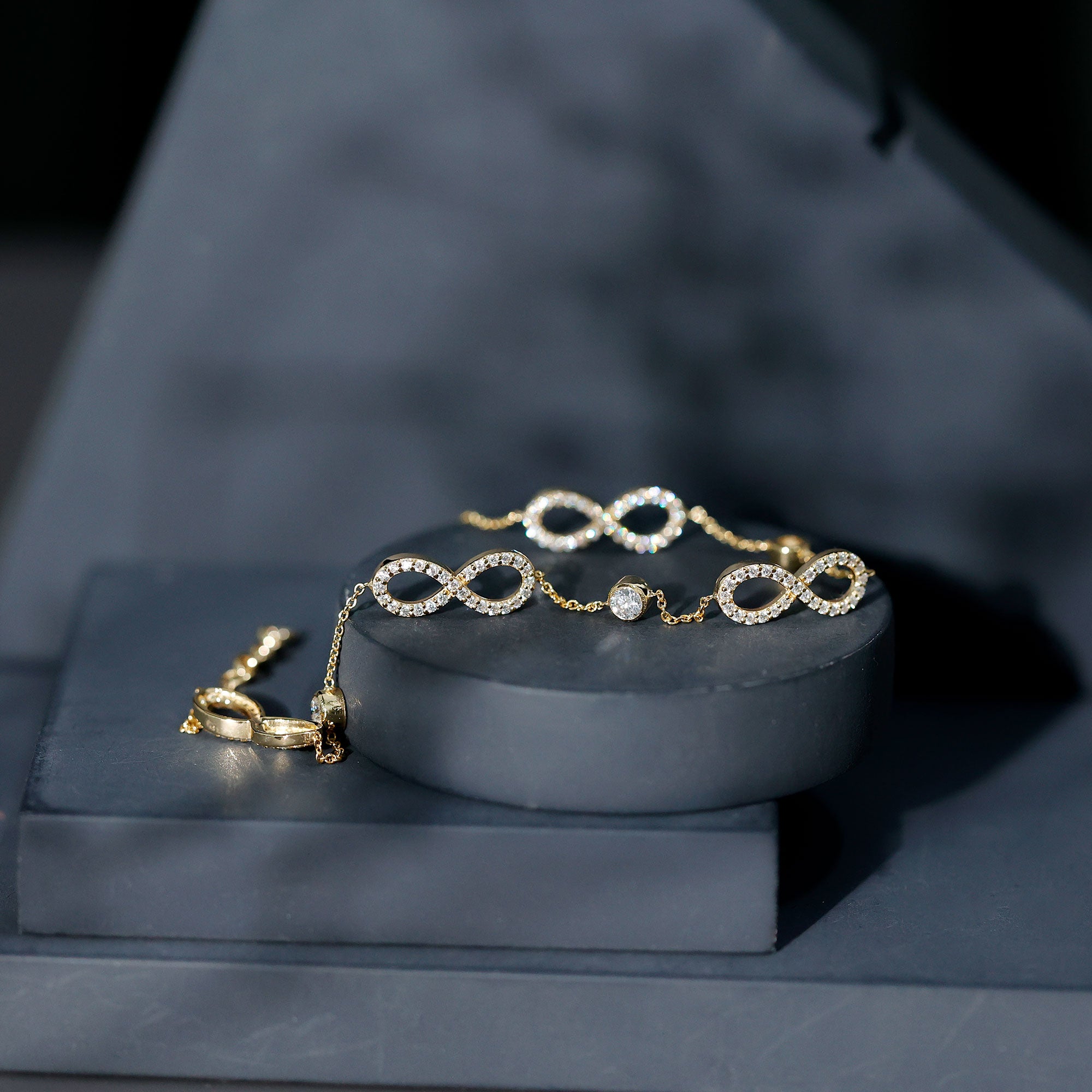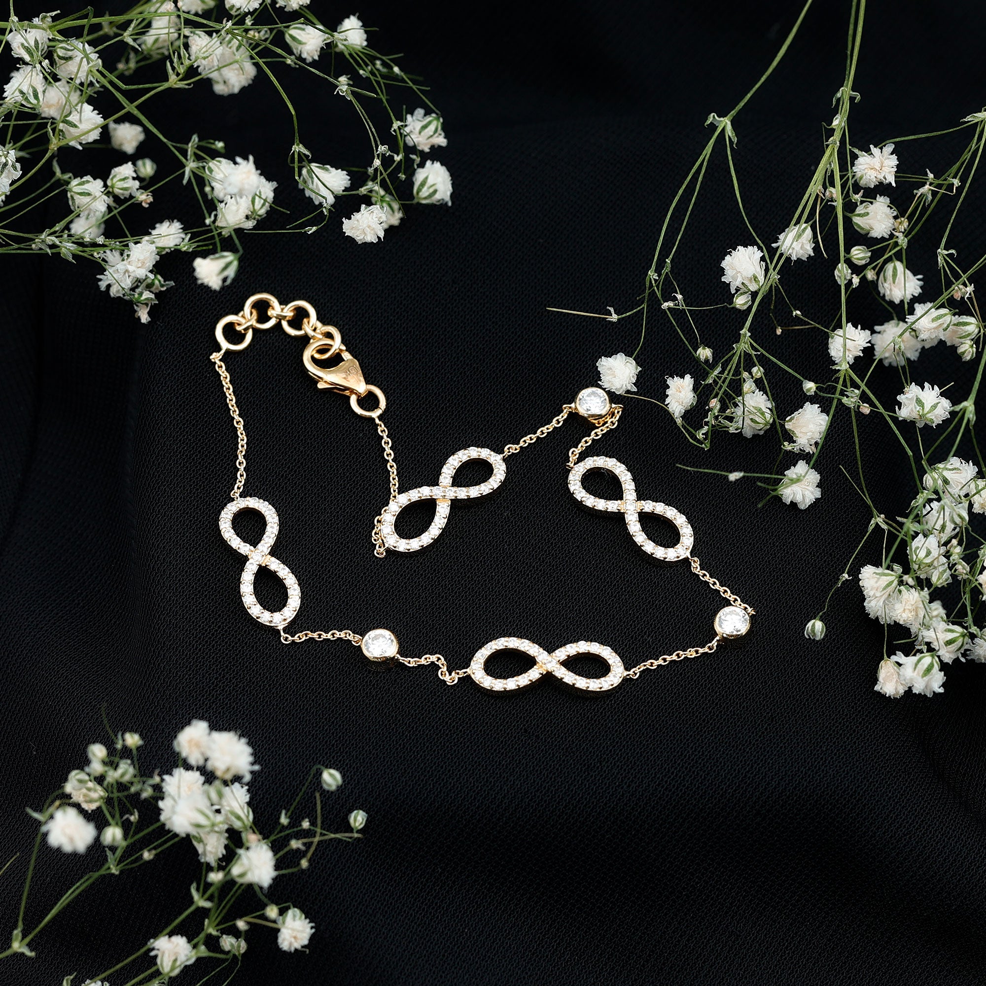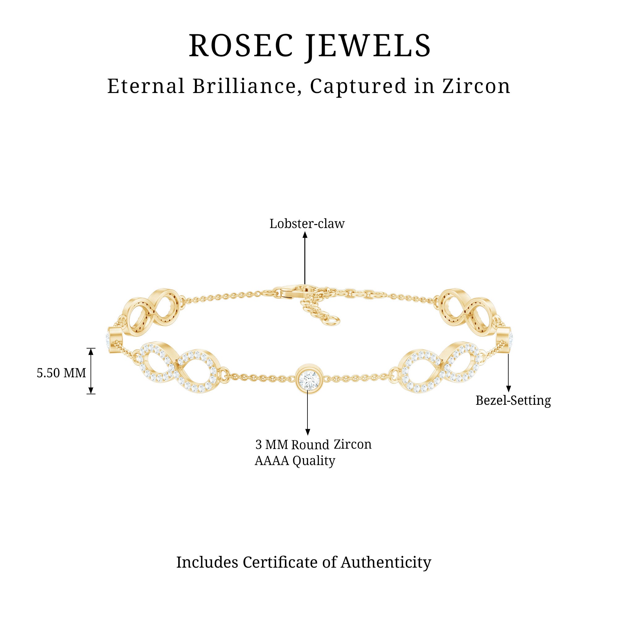 Wonderful Infinity Station Bracelet is elegantly designed and has a modern and trendy look. Embellished with Round Cut Zircon in Bezel Setting. Chain Link Bracelet is composed of Solid Gold, a perfect accessory for your wrist. Create your minimalist style with this bracelet.