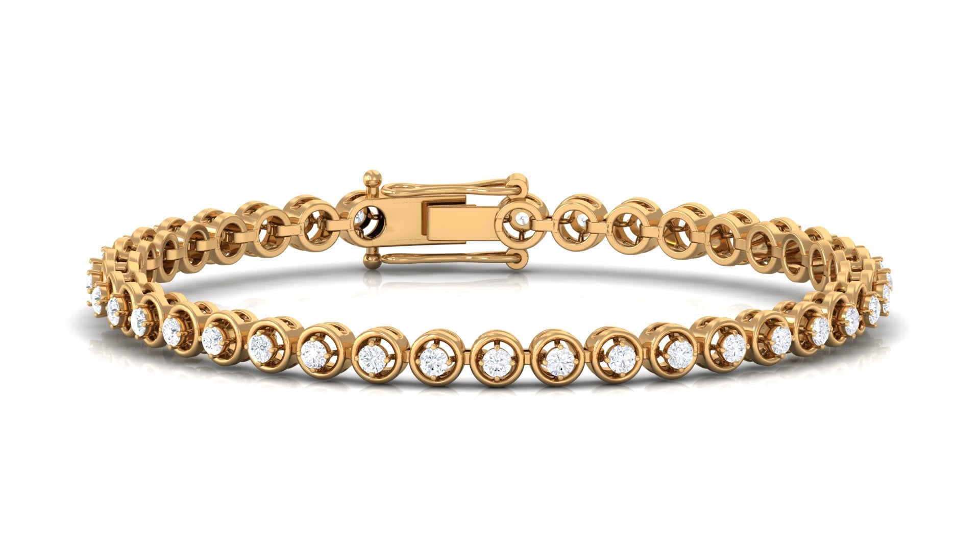 An Extraordinary Tennis Bracelet embellished with Round Shape Zircon is beautifully studded in a prong setting. Phenomenal Charm Bracelet is composed of Solid Gold. A gorgeous and Glamorous Bracelet is the perfect surprise gift for the one you love.