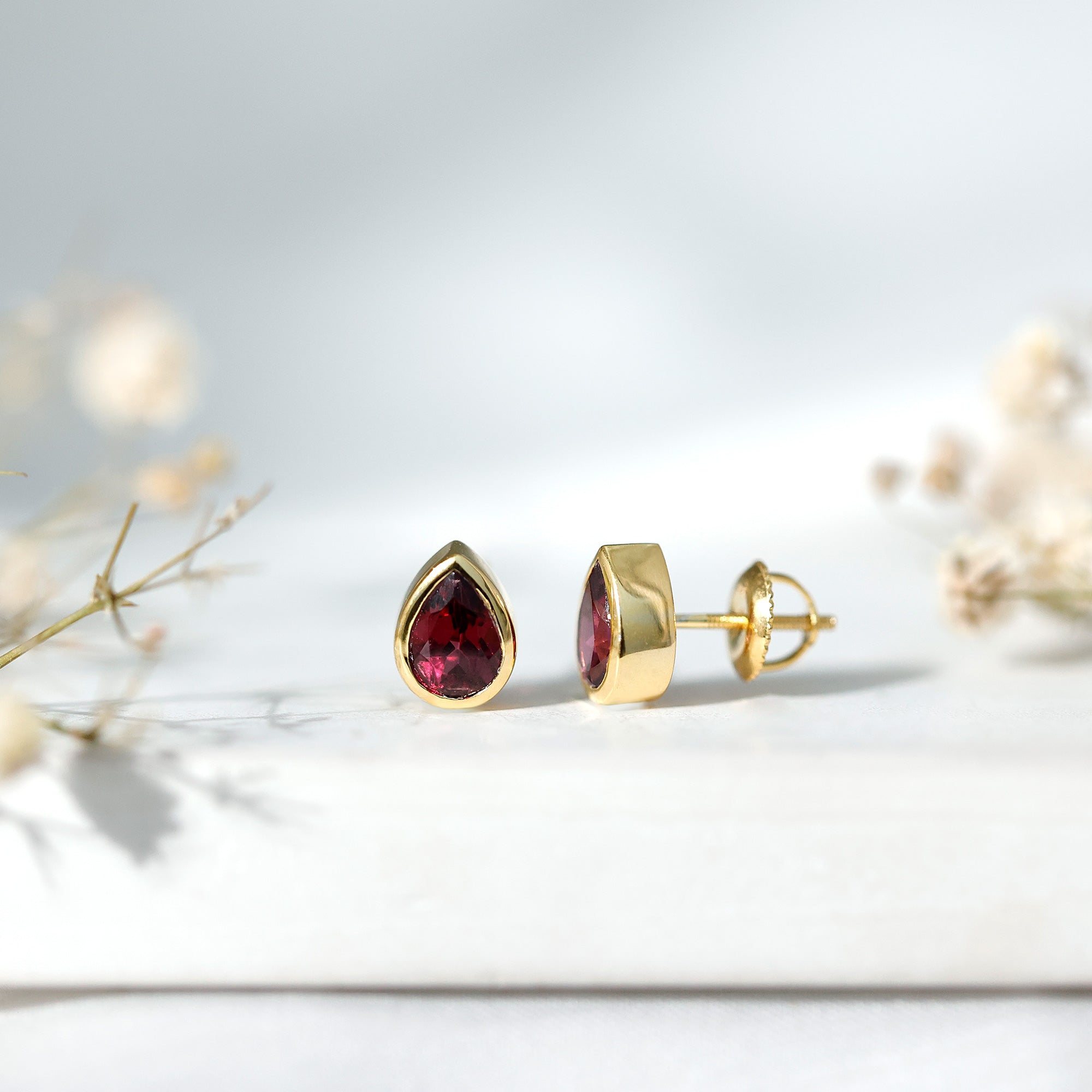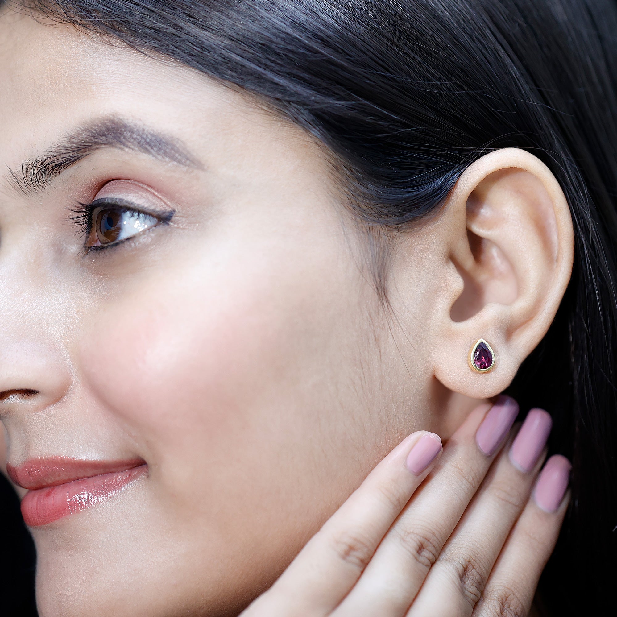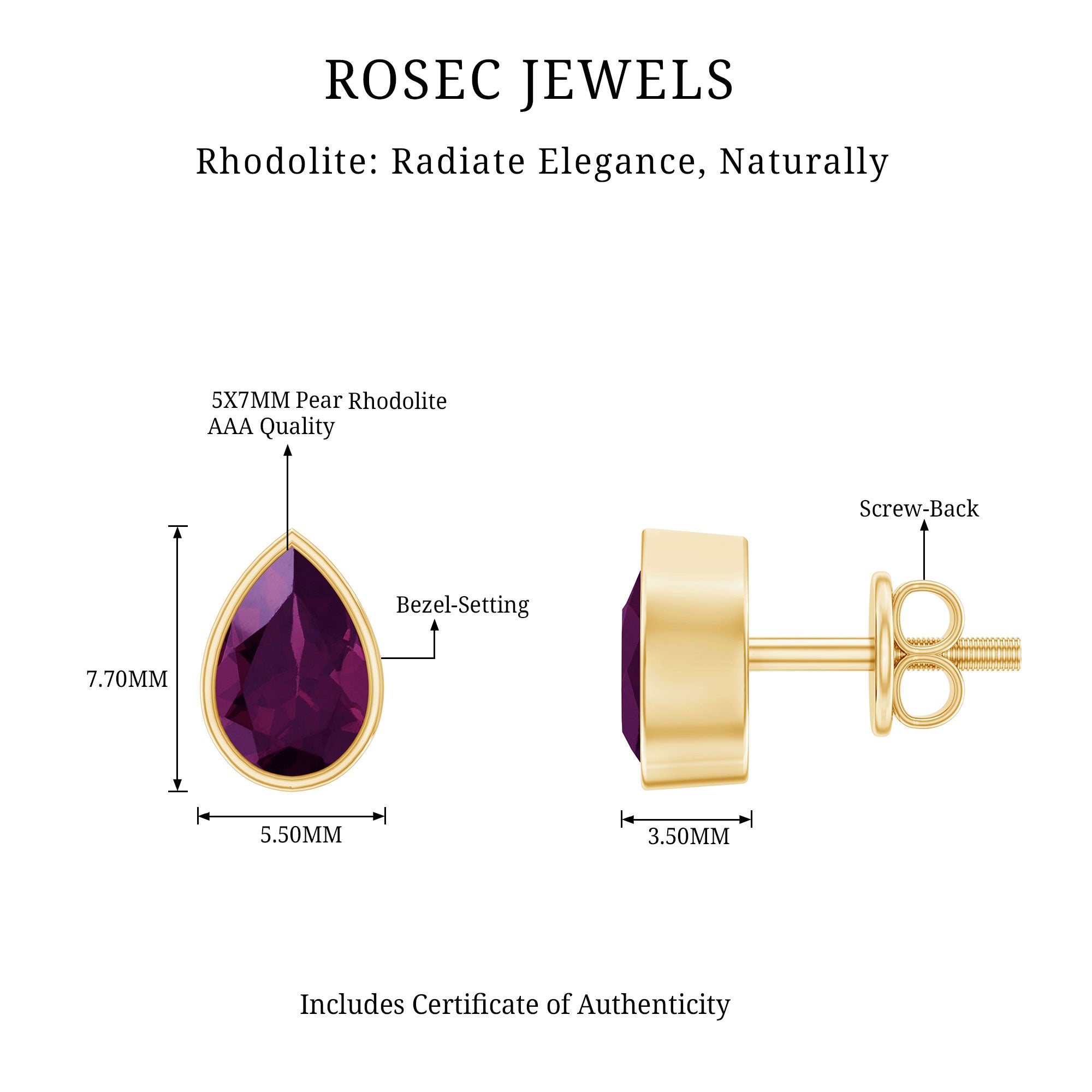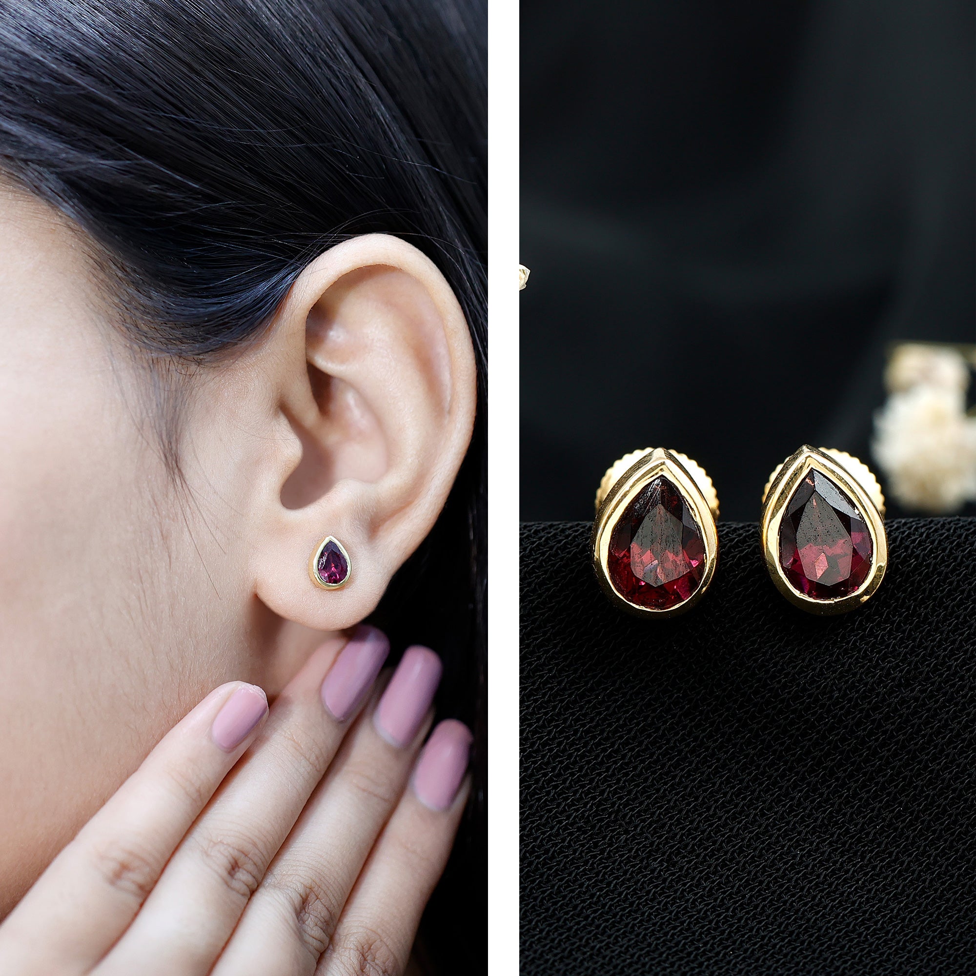Some pieces are minimal, but leave a lasting impression. These Rhodolite Garnet Earrings are designed with that exact thought in mind. Handcrafted in 14K yellow gold plated silver, they strike a beautiful balance between understated elegance and everyday ease, making them a timeless addition to your jewelry box. Each earring features a 5X7 MM pear shaped rhodolite, nestled in bezel setting that adds a clean, modern feel while securely framing the stone. Designed with screw back closures, these Rhodolite Earrings are comfortable enough for daily wear and secure enough for peace of mind. You can wear them confidently from morning meetings to night outings without missing a beat. The charm of this piece lies in its simplicity and meaning. As the birthstone for June, rhodolite symbolizes love, compassion, and emotional balance, making these Solitaire Stud Earrings more than just a pretty accessory. Arrives in a signature jewelry box with a gemstone certificate, ready to gift or keep close as your new go-to pair. Easy to love, even easier to wear, these Teardrop Stud Earrings are your everyday luxury, with just the right hint of something meaningful.