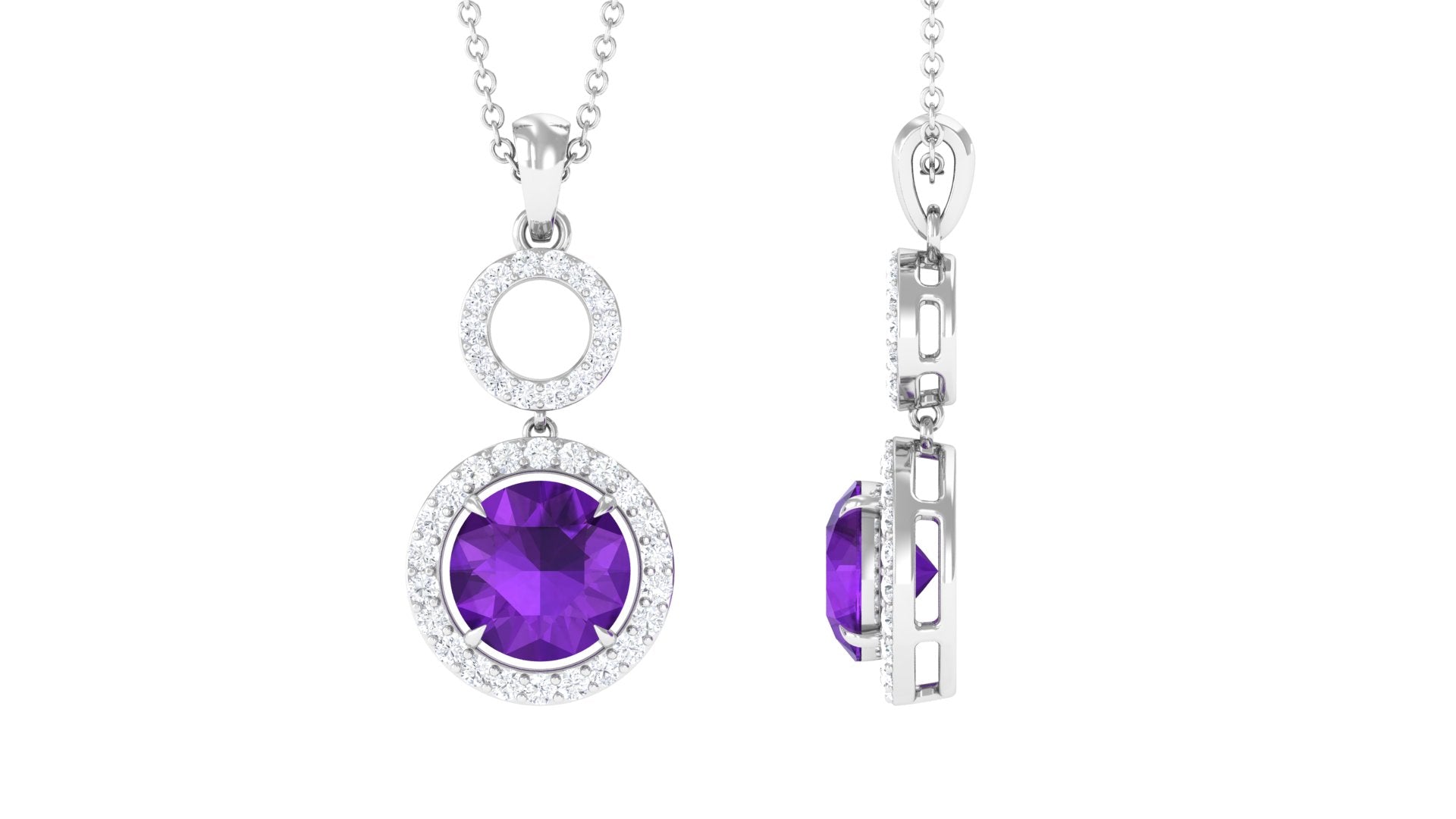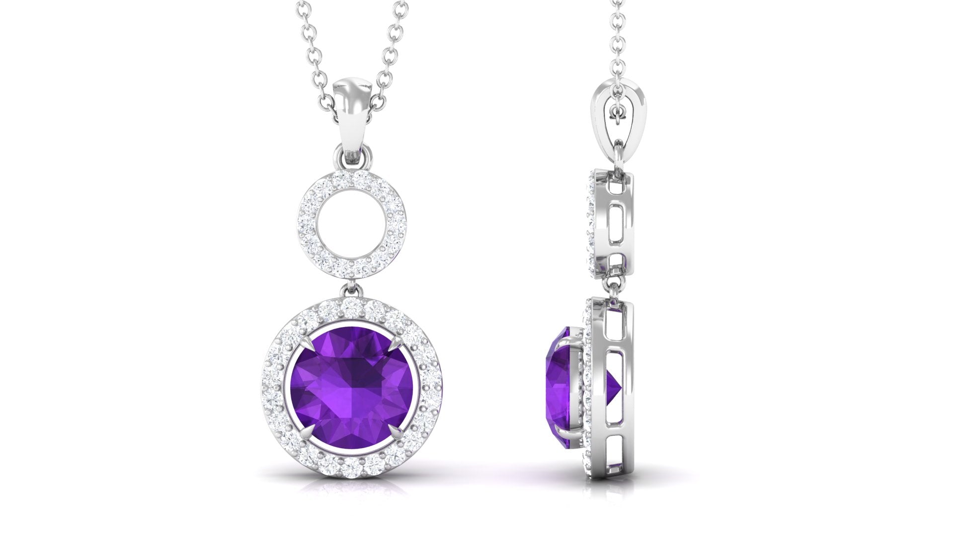 1.75 CT Amethyst and Diamond Halo Dangle Pendant
