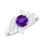 Every moment of yours is worth celebrating, so why not celebrate it with an alluring fine jewelry. This Amethyst Engagement Ring is exactly what your are looking for your partner, Round Amethyst and Marquise Diamond is held in Claw Setting and Round Diamond is held in prong setting are featured in leaf pattern. Show your love to your partner with this Vintage Amethyst Ring.
