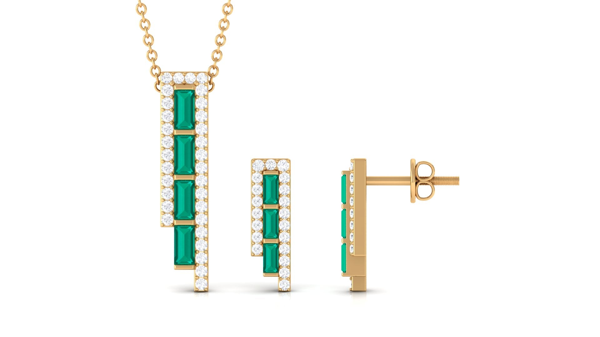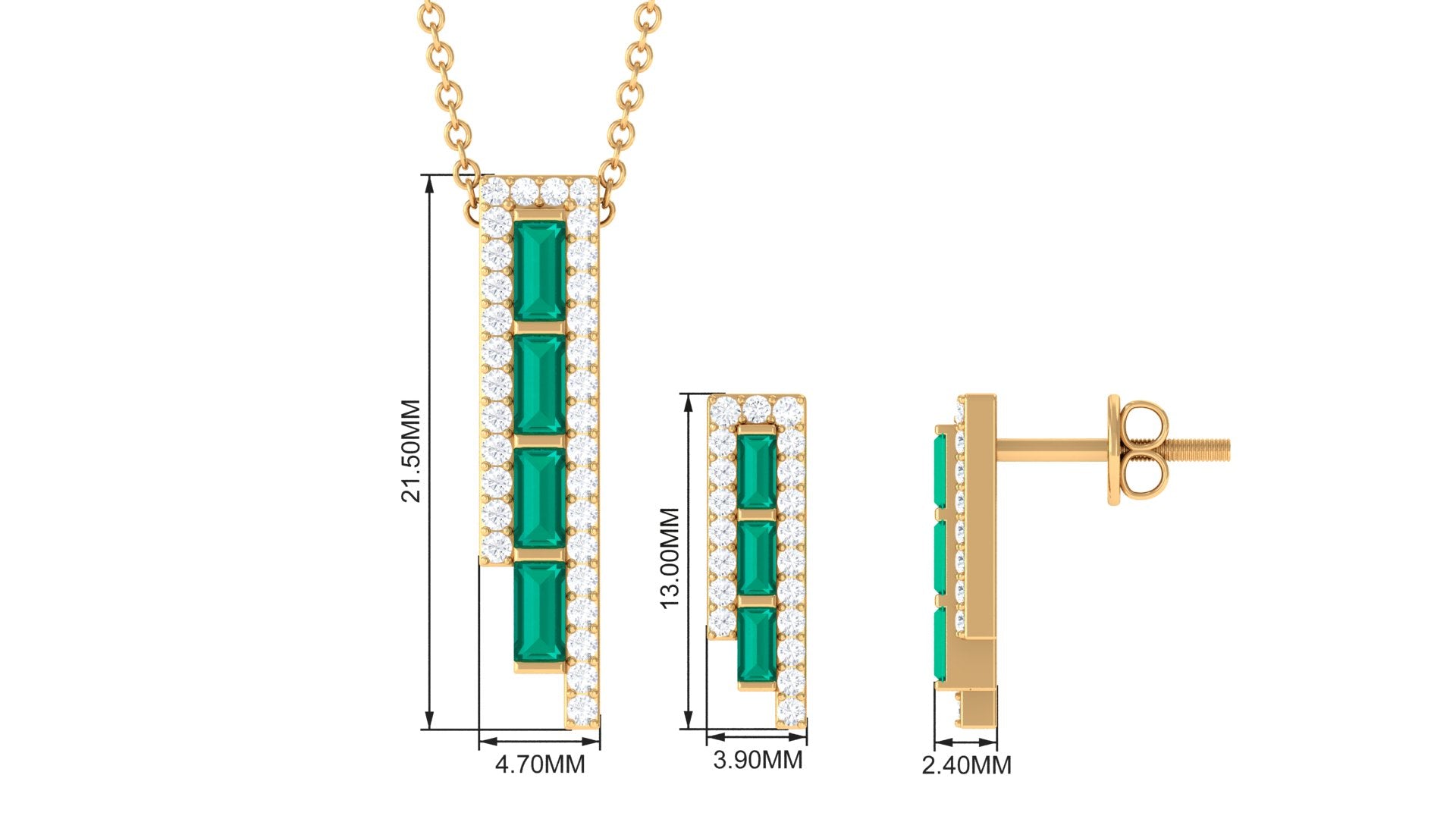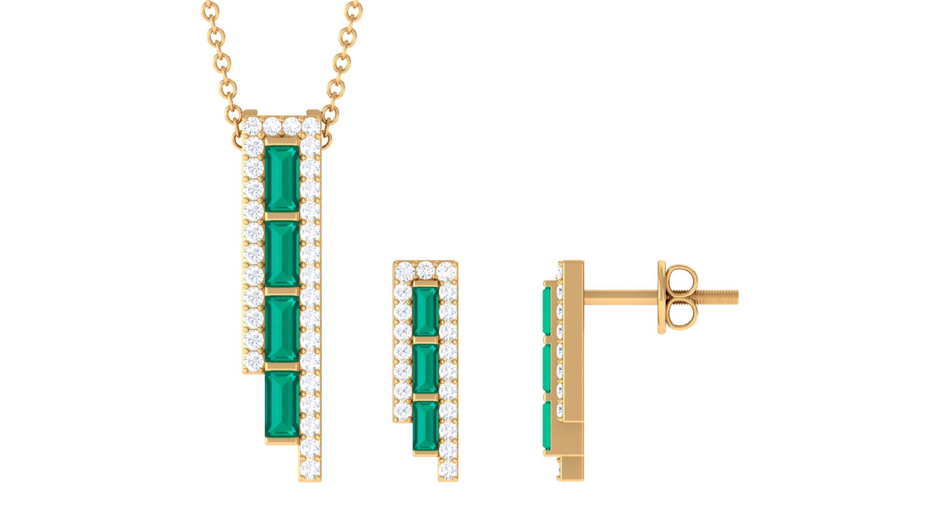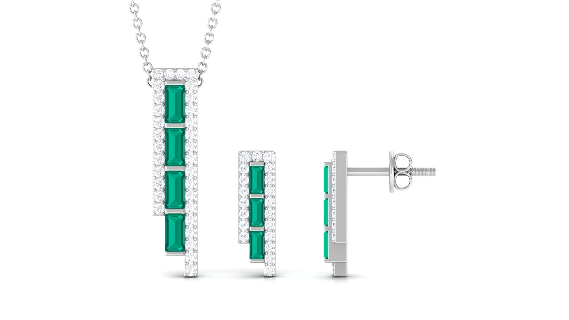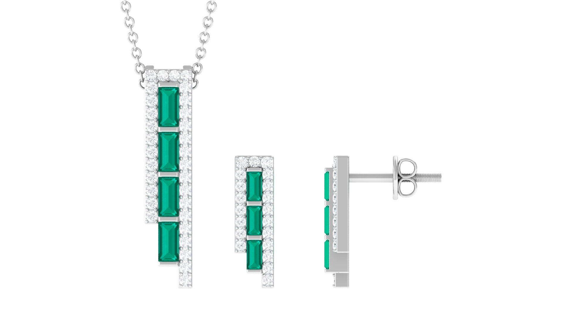 1.75 CT Baguette Cut Emerald Designer Bar Jewelry Set with Diamond