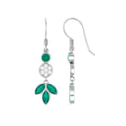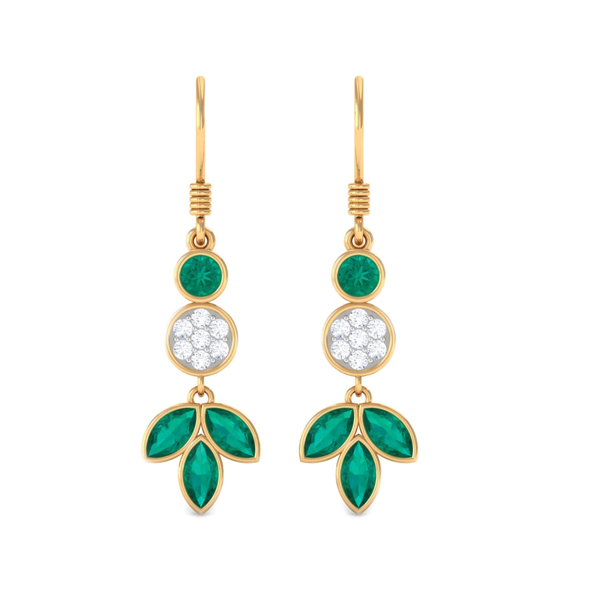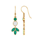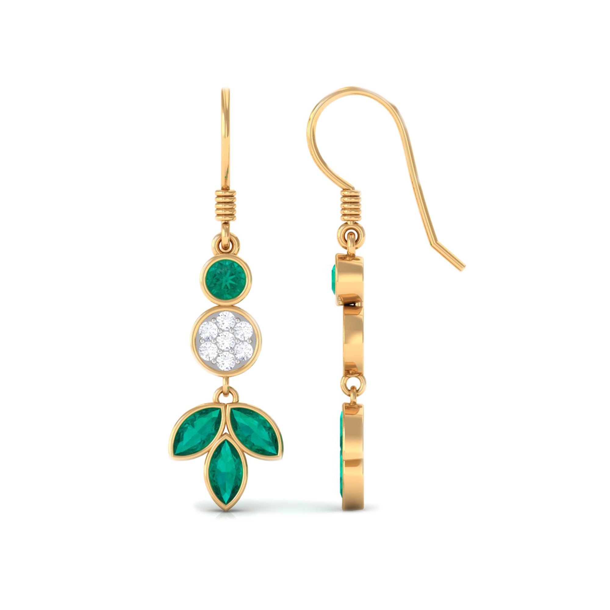 Indulge in the graceful beauty of nature with these enchanting Emerald Dangle Earrings, designed to bring a fresh elegance to your style. Each earring features Bezel Set Marquise Shape Emerald stones arranged like delicate leaves, flowing from a sparkling Diamond Flower that adds just the right touch of brilliance. An additional Emerald sits at the top, tying the whole design together with rich, vibrant color. The gentle sway of the dangles creates an eye-catching movement, while the Fish Hook Closure keeps the earrings light, comfortable and secure for all-day wear. Their nature-inspired look makes them perfect for both everyday outfits and special occasions, adding a hint of natural charm that feels unique and effortlessly beautiful. Presented in a lovely jewelry box, these Leaf Earrings are also an ideal gift for someone who appreciates refined details and meaningful design. Whether worn with flowy dresses or chic evening wear that needs a touch of sparkle, these Emerald Diamond Earrings bring a fresh, captivating glow to any look, making you shine with a style that feels both elegant and naturally inspired.