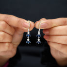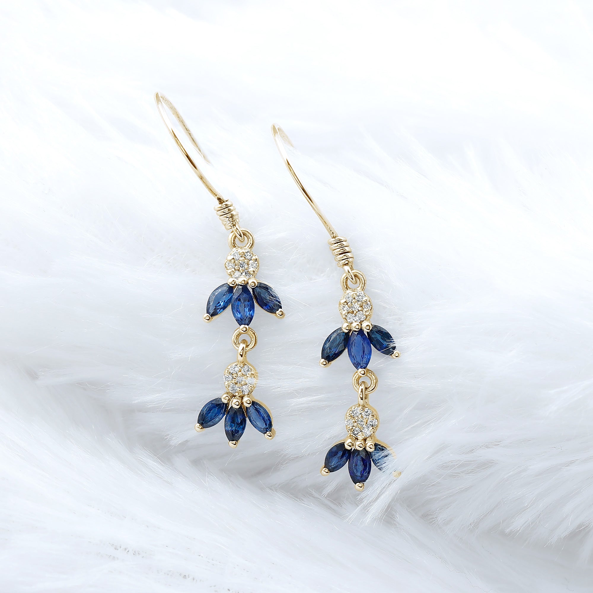 Natural Blue Sapphire and Diamond Leaf Dangle Earrings