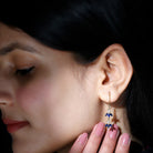 Elevate your style with these nature inspired blue sapphire leaf earrings. The earrings feature pear shape blue sapphires and Diamond stones set in a beautiful leaf motif. The dangle design adds a touch of movement, making these earrings perfect for those who appreciate unique and eye-catching jewelry. The solid gold setting adds a luxurious touch, making these earrings ideal for September born women. Whether worn for special occasions or as an everyday accessory, these earrings are sure to make a statement. With their beautiful blue color, nature inspired design, and high quality materials, these earrings are the perfect choice for anyone looking to add a touch of glamour and sophistication to their look. So why wait? Adorn yourself with these nature-inspired blue sapphire leaf earrings and let your style blossom.