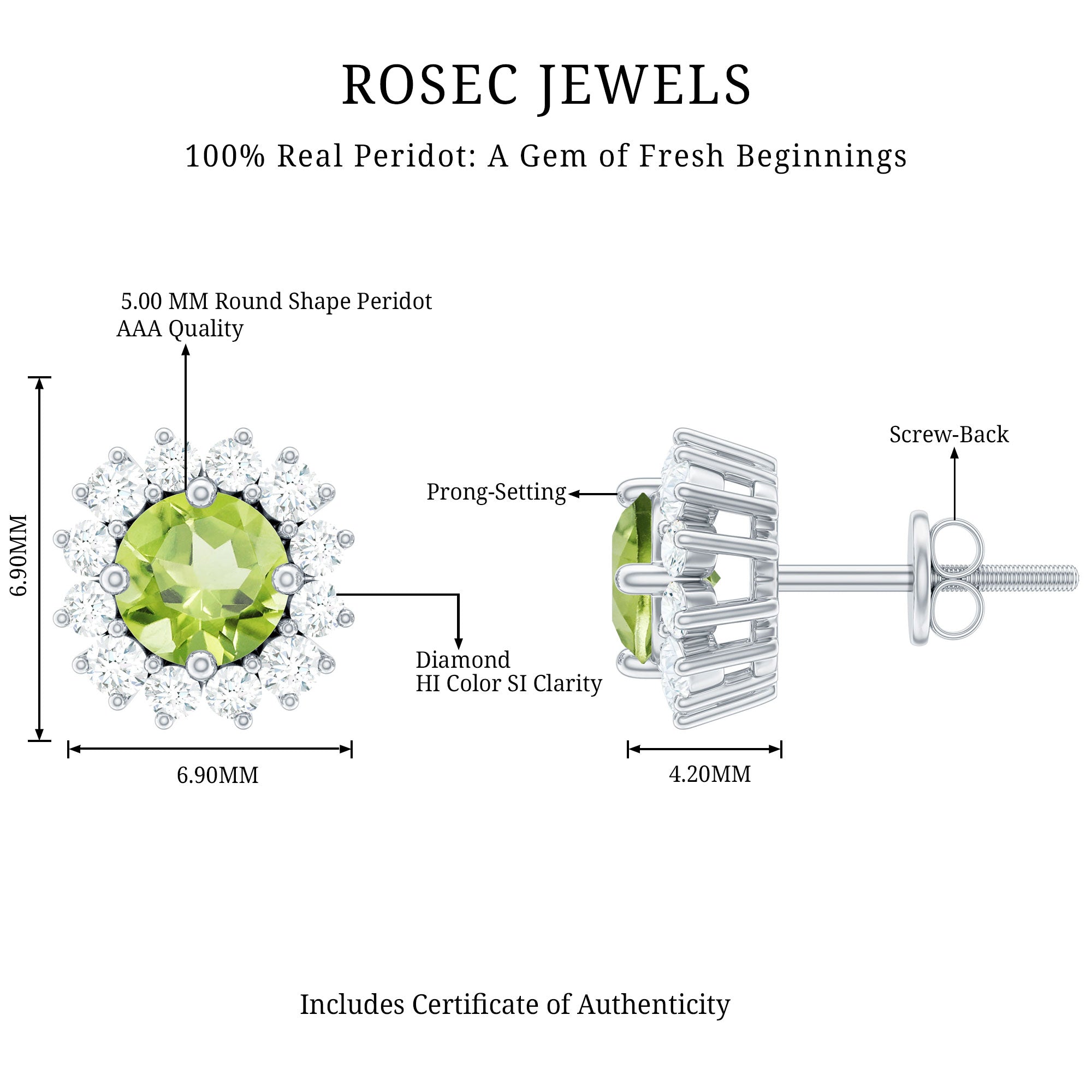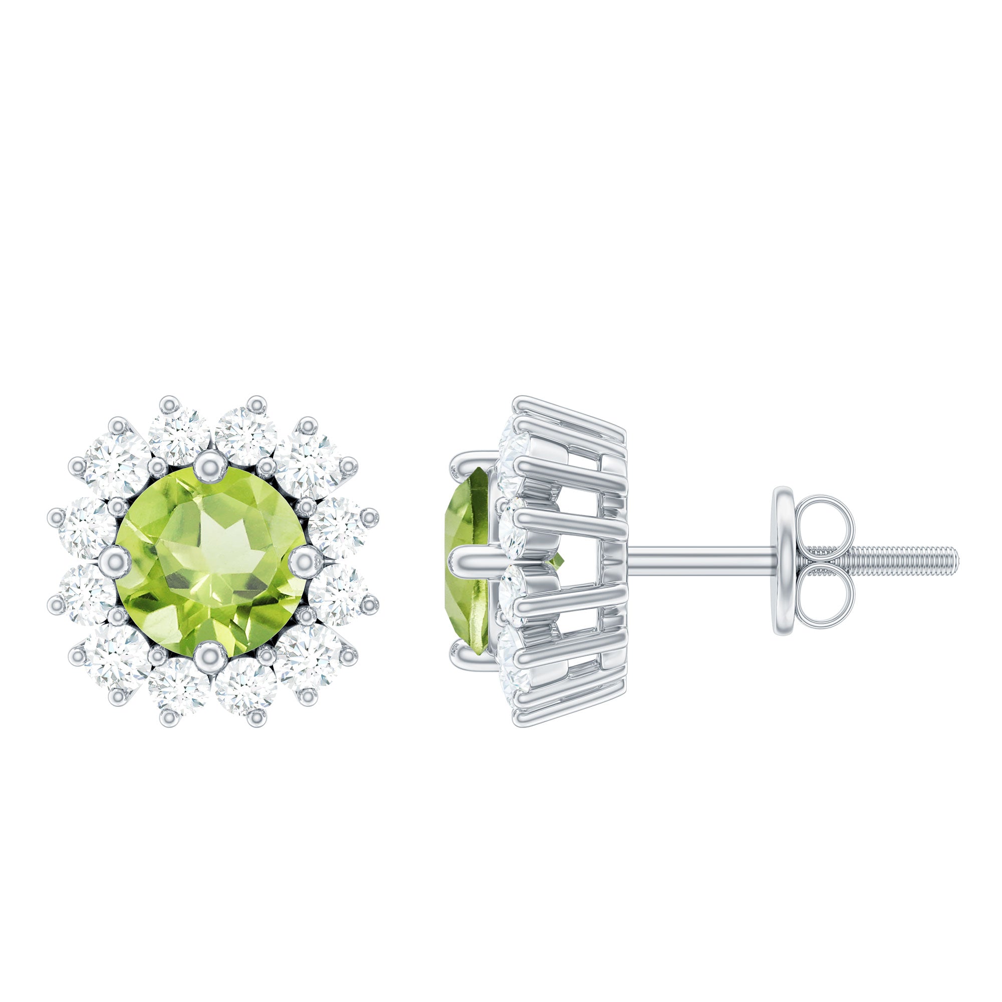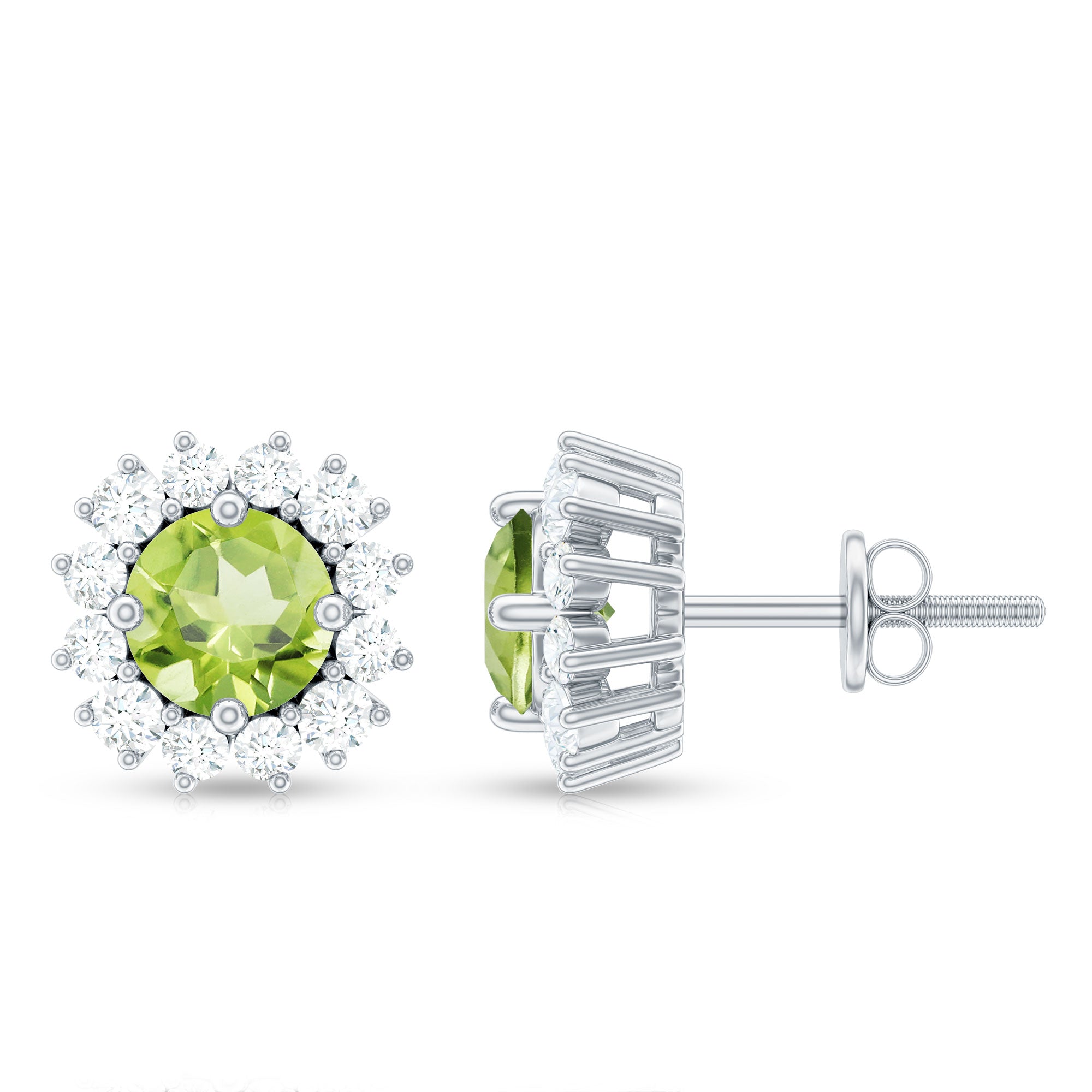 1.75 CT Classic Peridot and Diamond Halo Stud Earrings