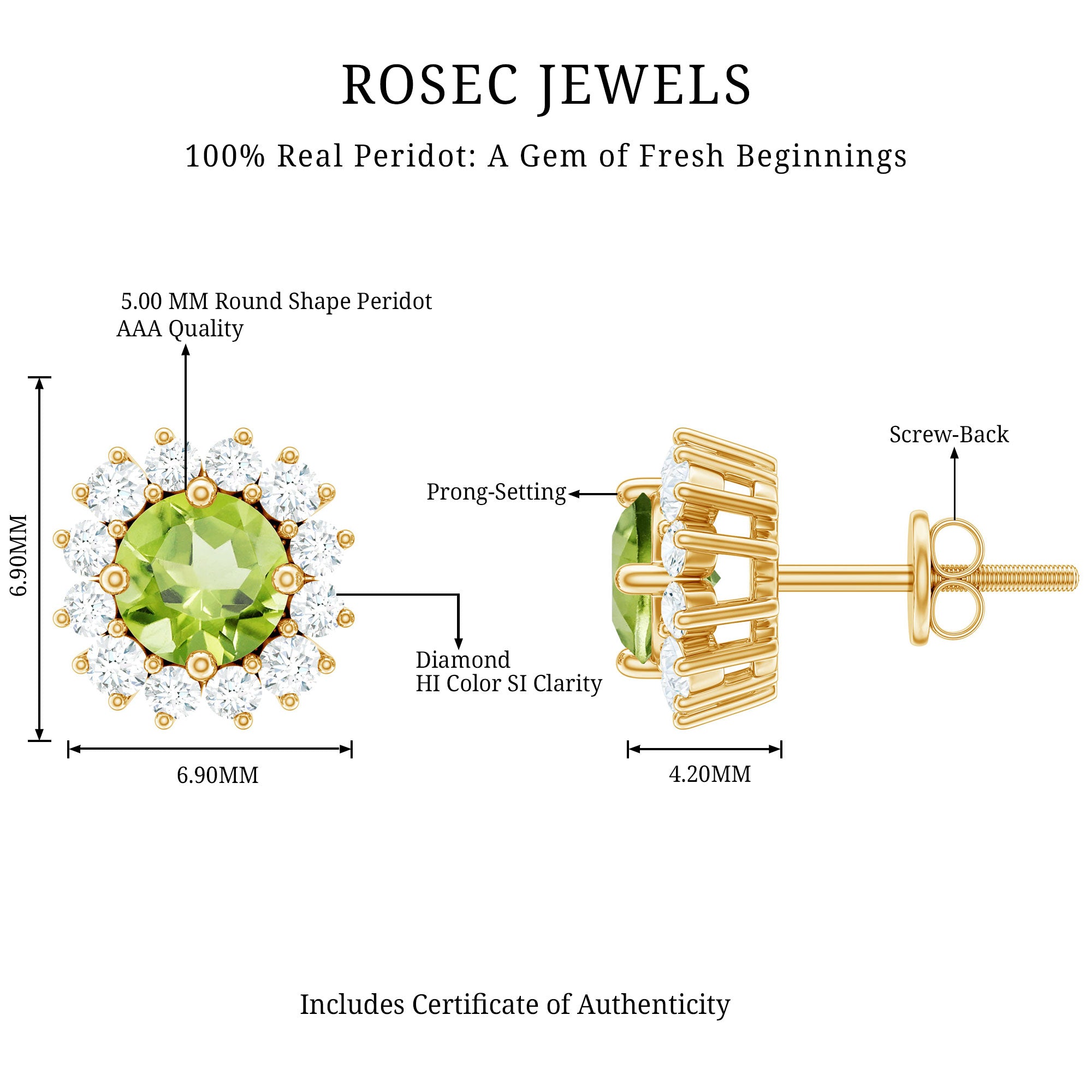 No celebration is complete without a special gift, and on Mothers Day, a piece of jewelry is sure to bring a smile of delight. These stud earrings are adorned with round-cut peridot stones set in a prong setting, surrounded by a halo of Diamond, making them a beautiful choice for any mom. Expertly crafted with high-quality solid gold metal, these earrings are both elegant and durable, ensuring they can be treasured for years to come.