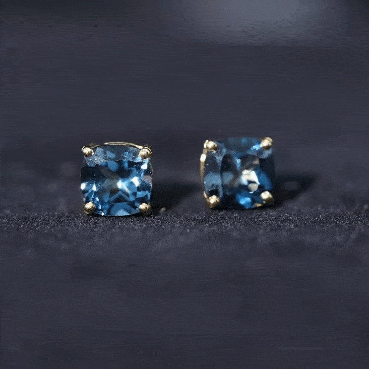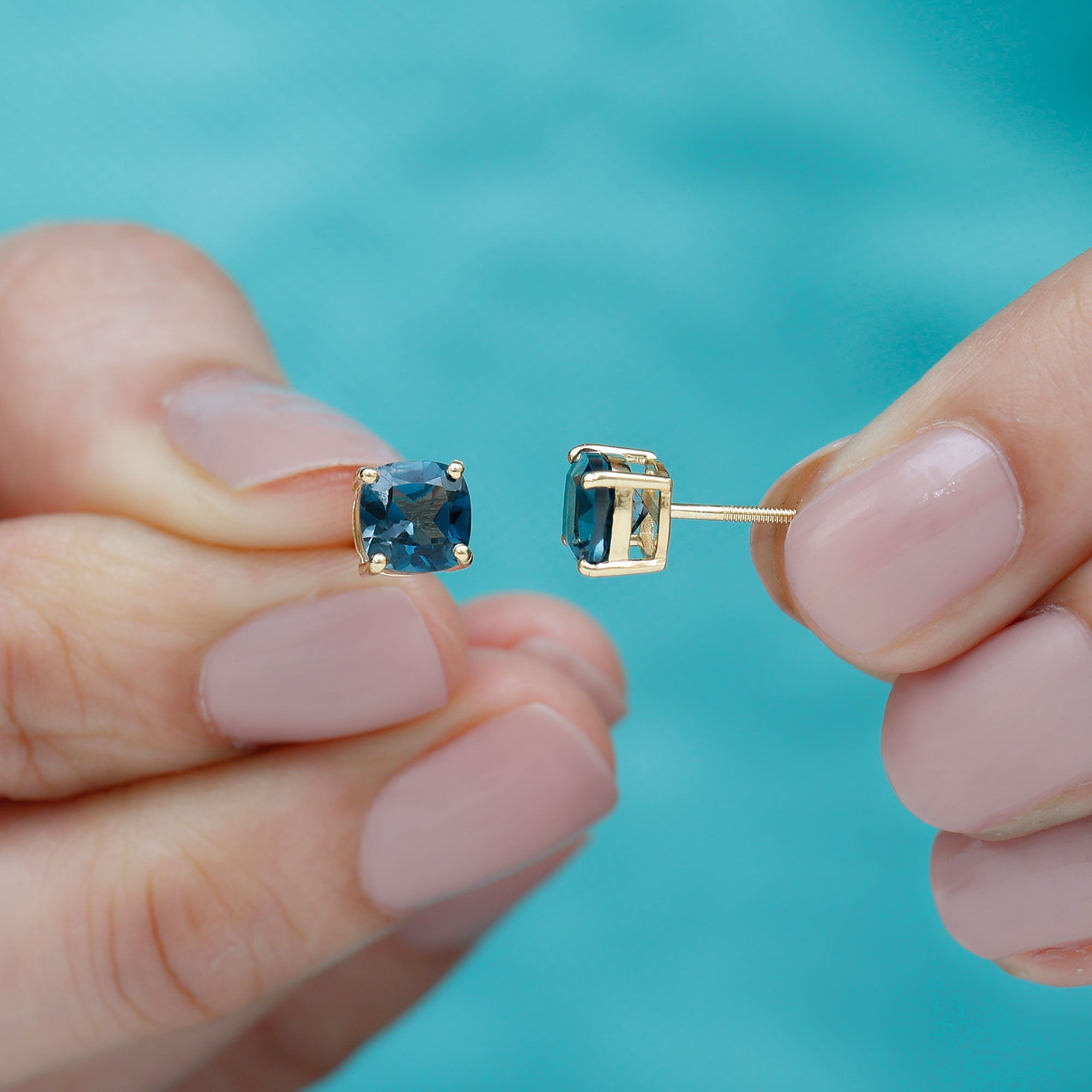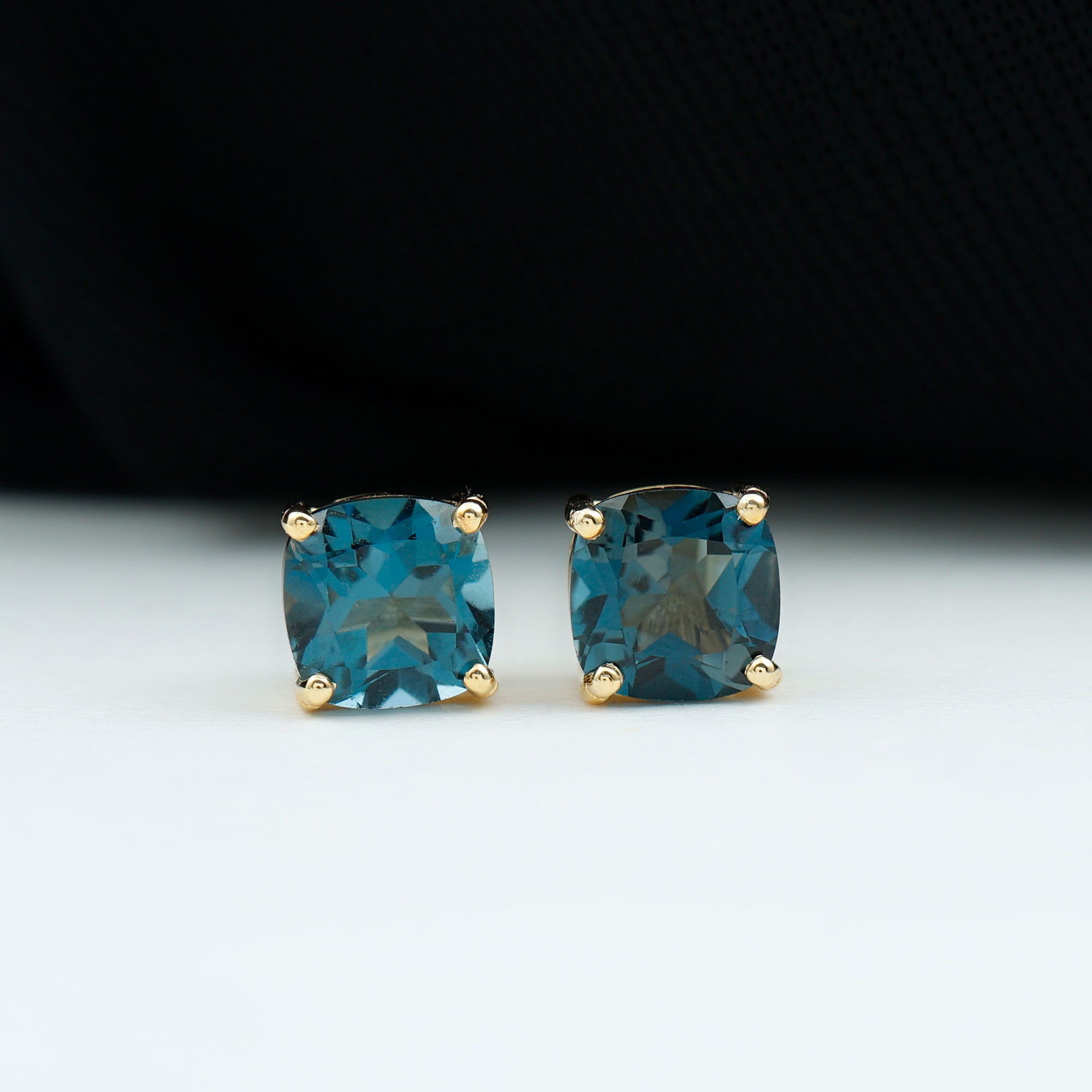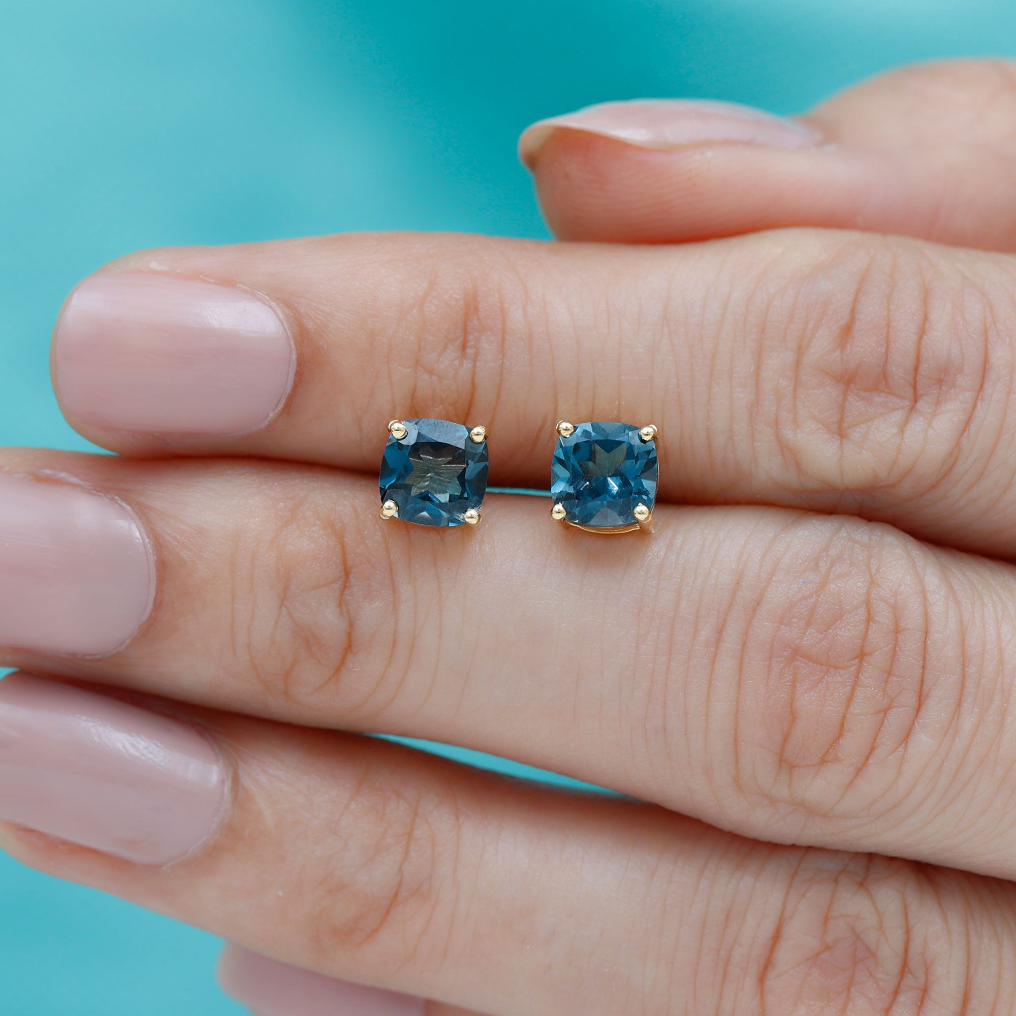 These Solitaire Stud Earrings are a beautiful present for your loved one. The earrings feature stunning Cushion Cut London blue topaz gemstones set in simple yet elegant 4 Prong Setting. The rich blue color of the topaz is reminiscent of the autumn sky. These earrings are a timeless and versatile addition to any jewelry collection, and make a perfect gift for a loved one or a treat for yourself.