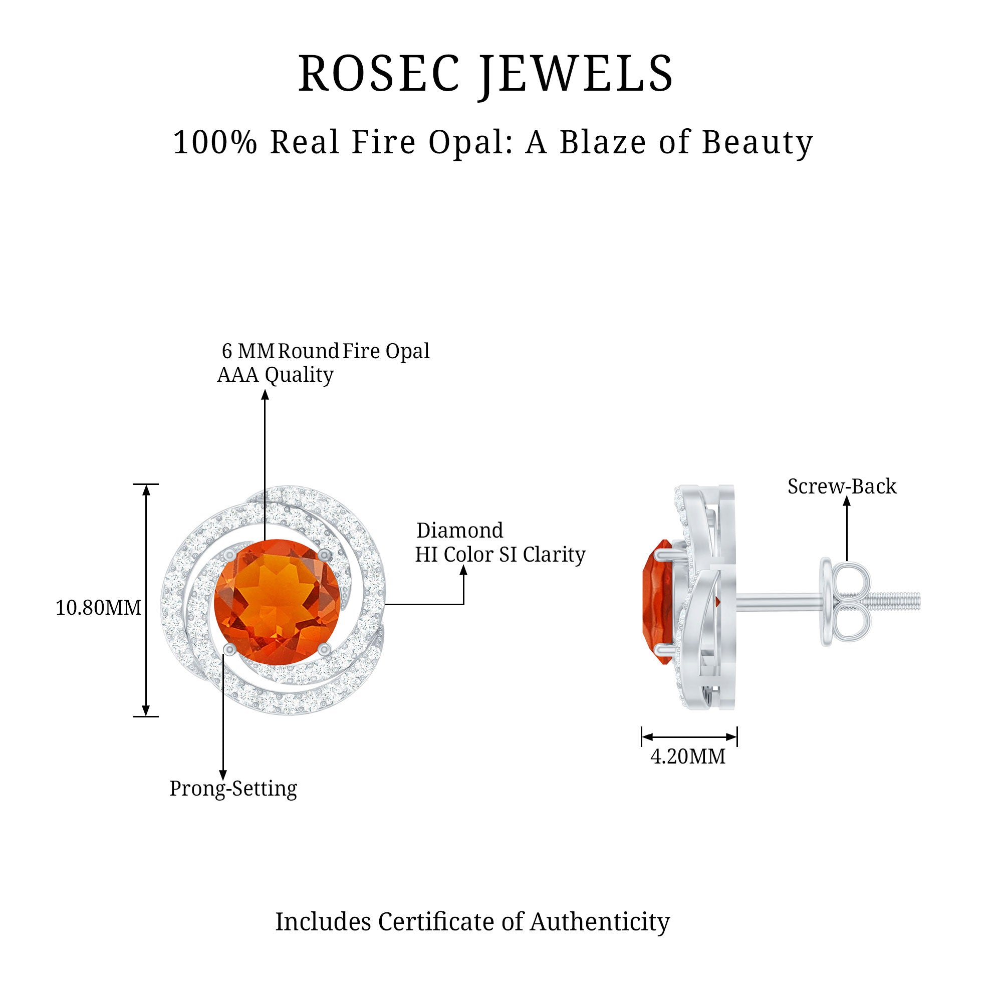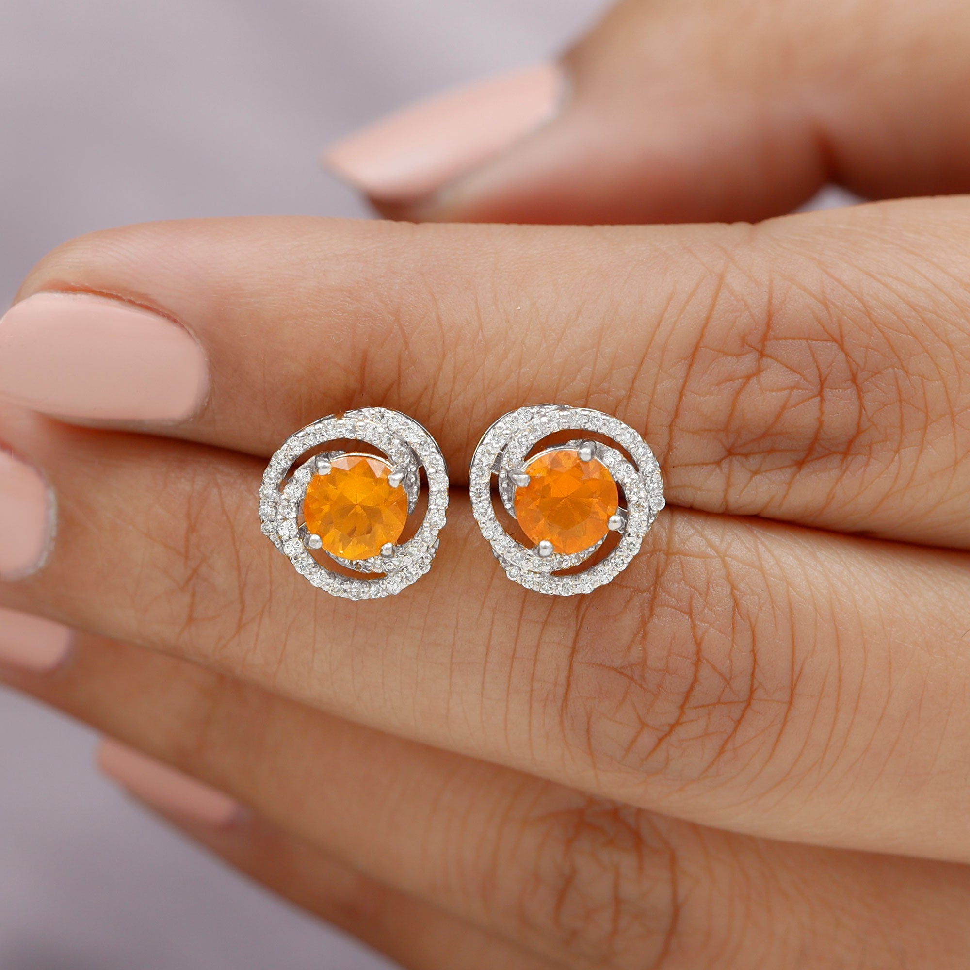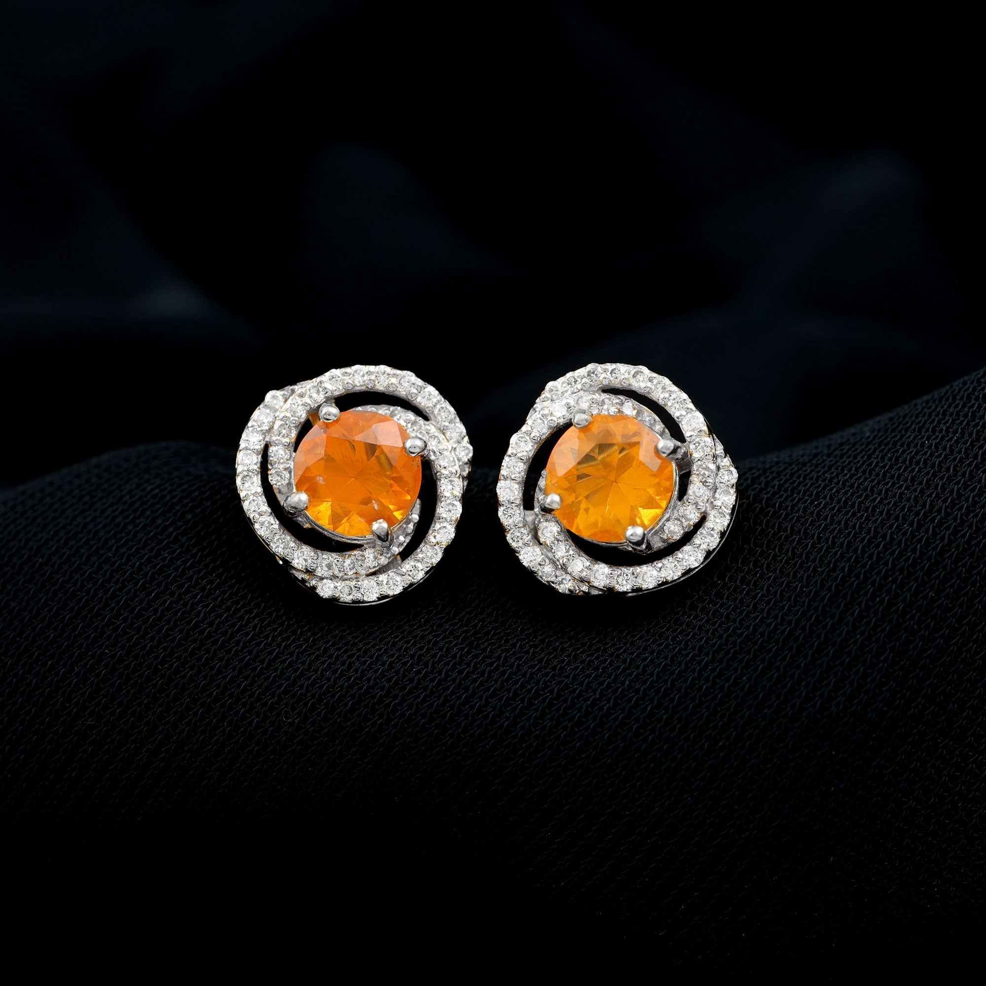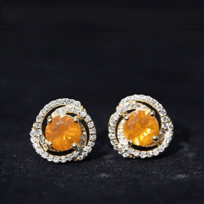 1.75 CT Fire Opal and Diamond Swirl Stud Earrings