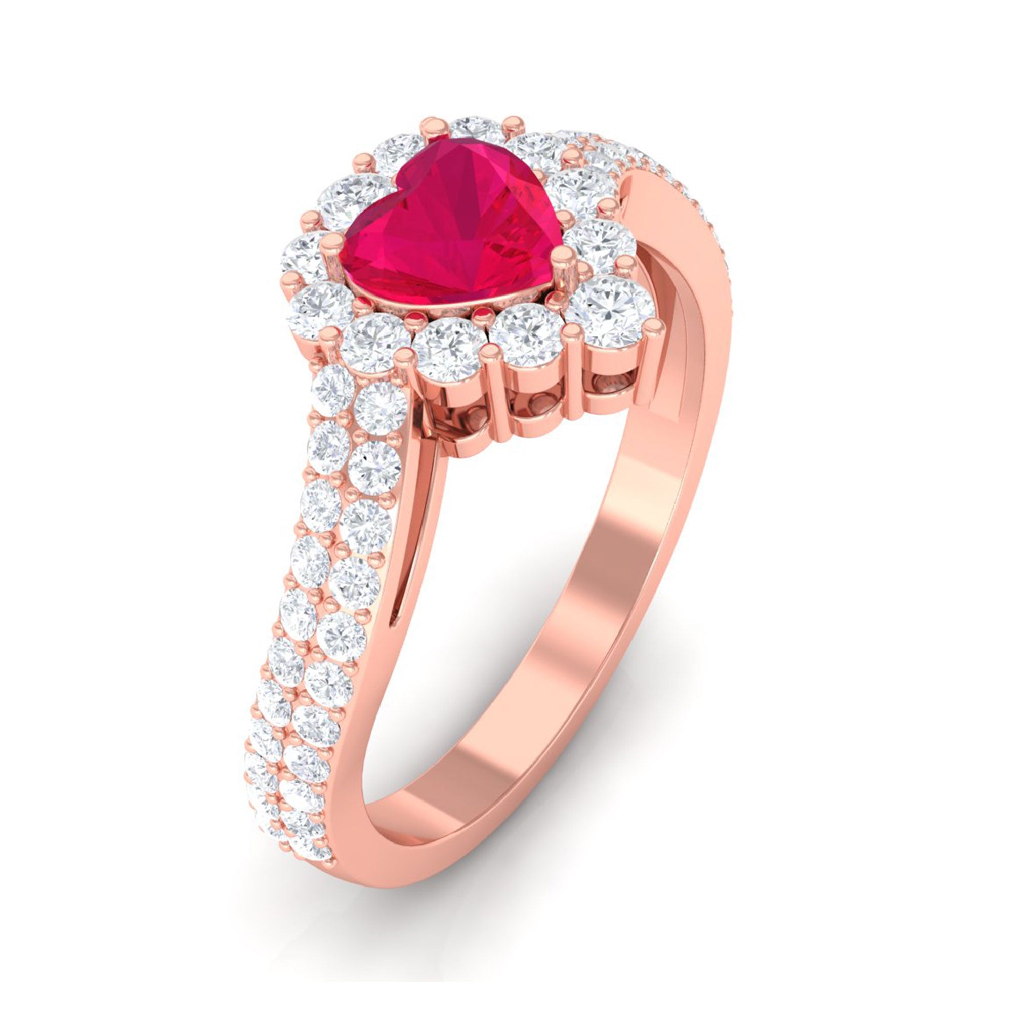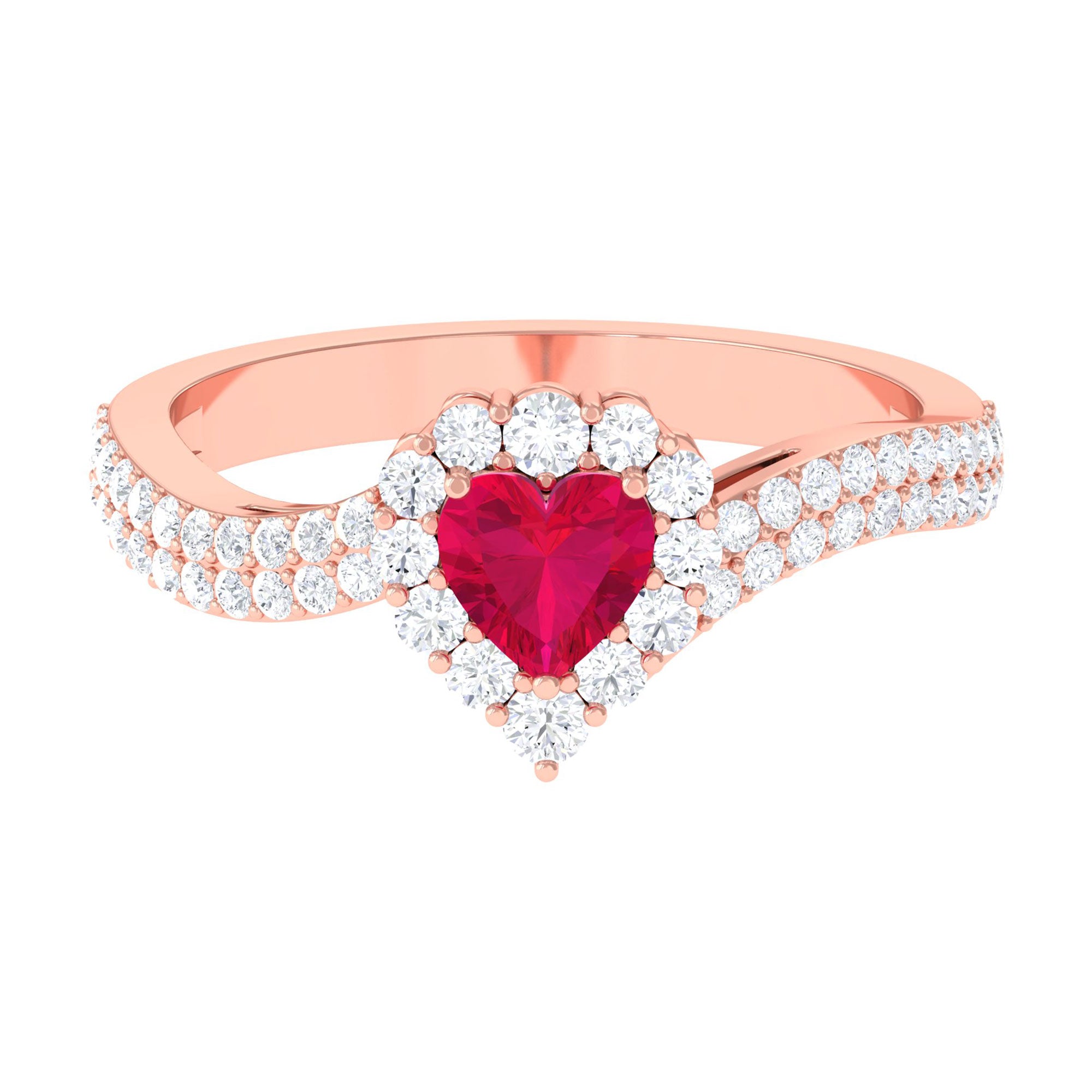 1.75 CT Heart Shape Ruby Bypass Engagement Ring with Diamond