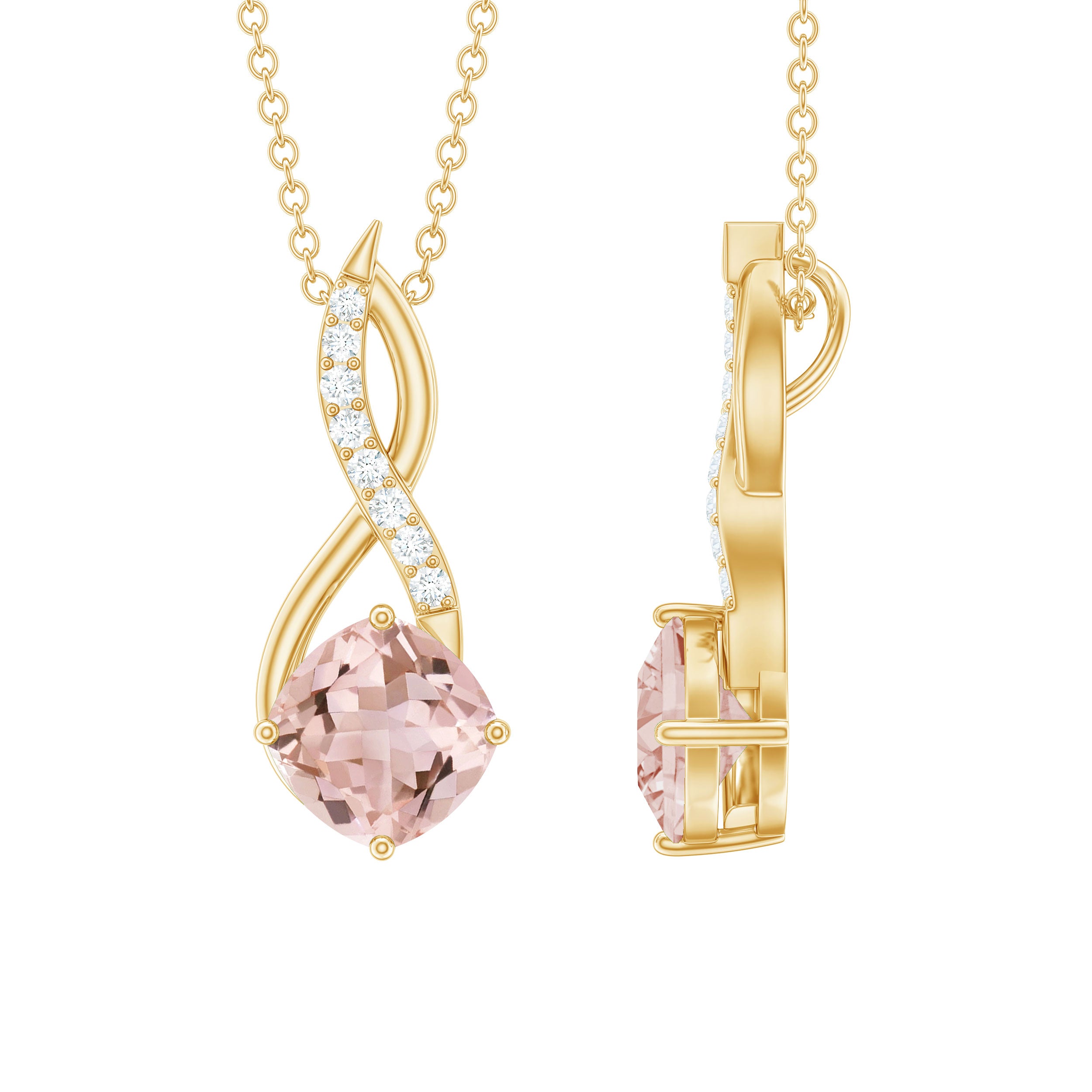 1.75 CT Infinity Pendant Necklace with Cushion Cut Morganite Solitaire and Diamond