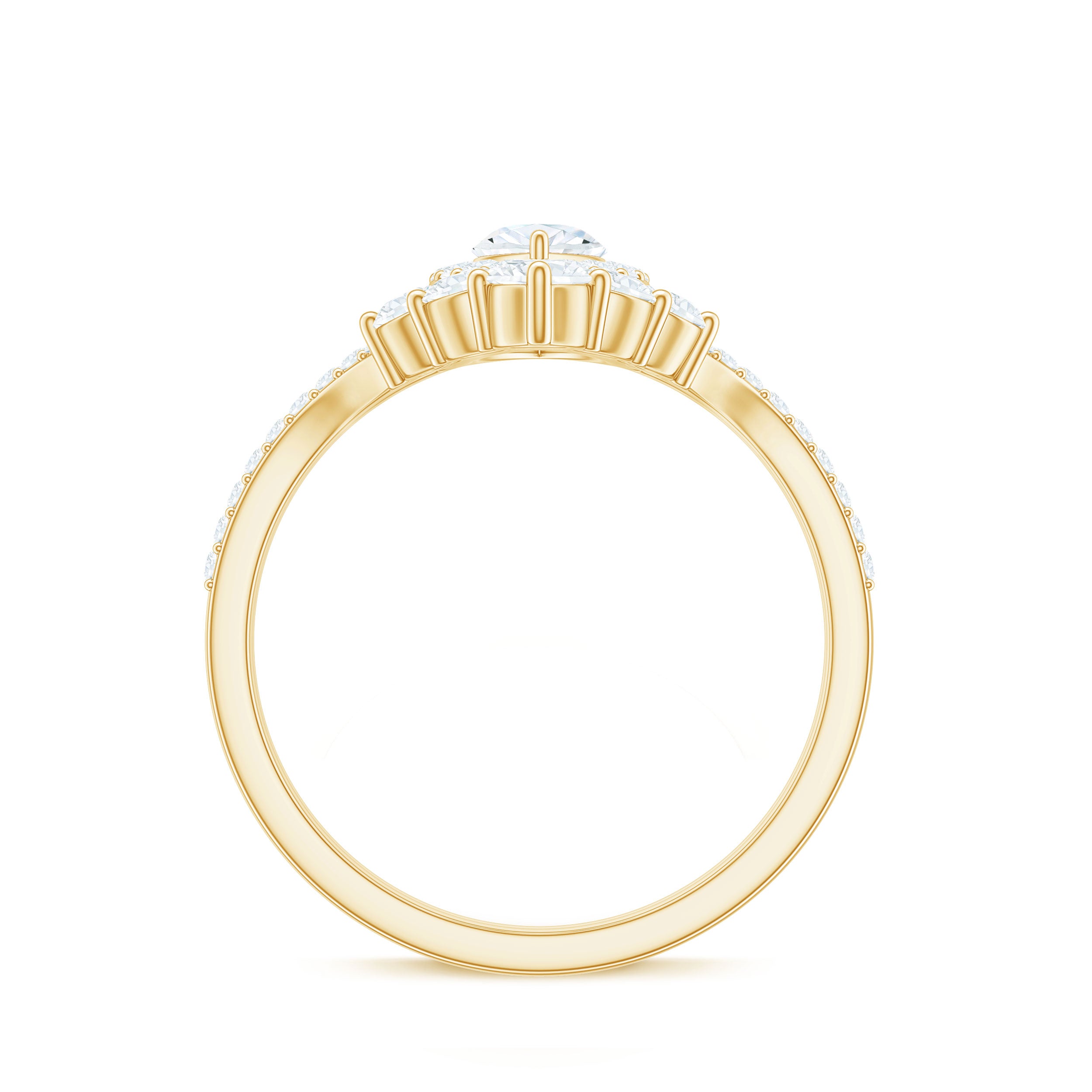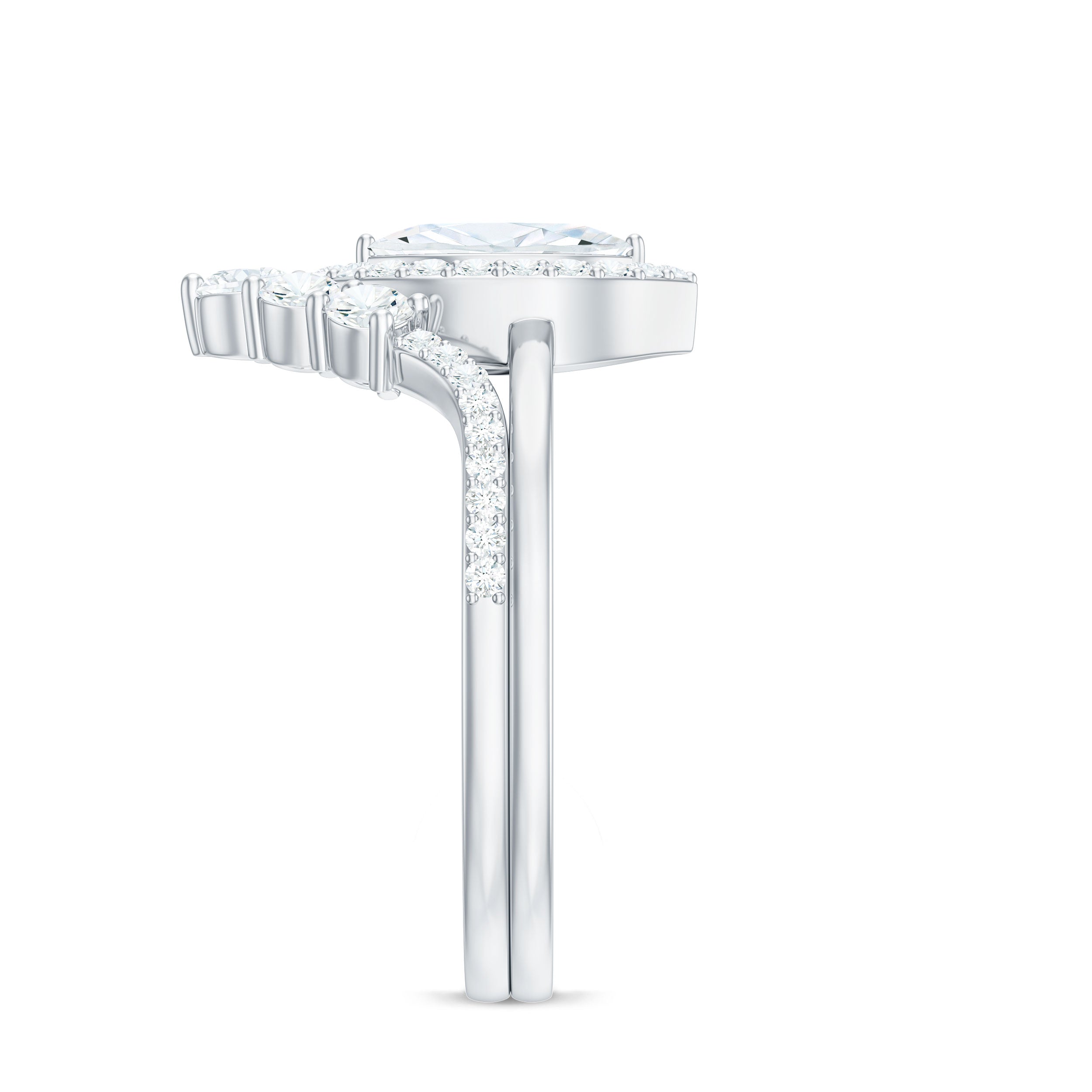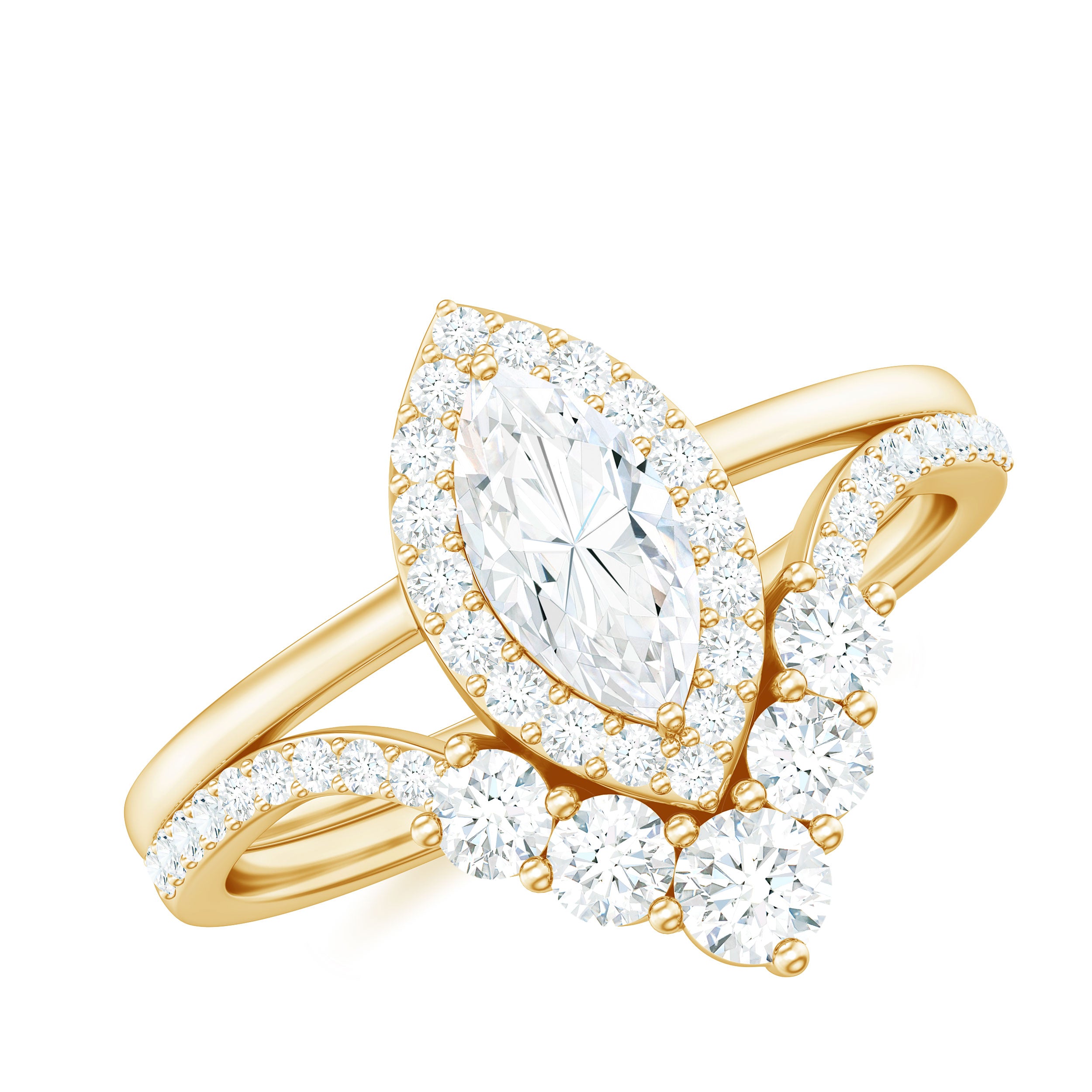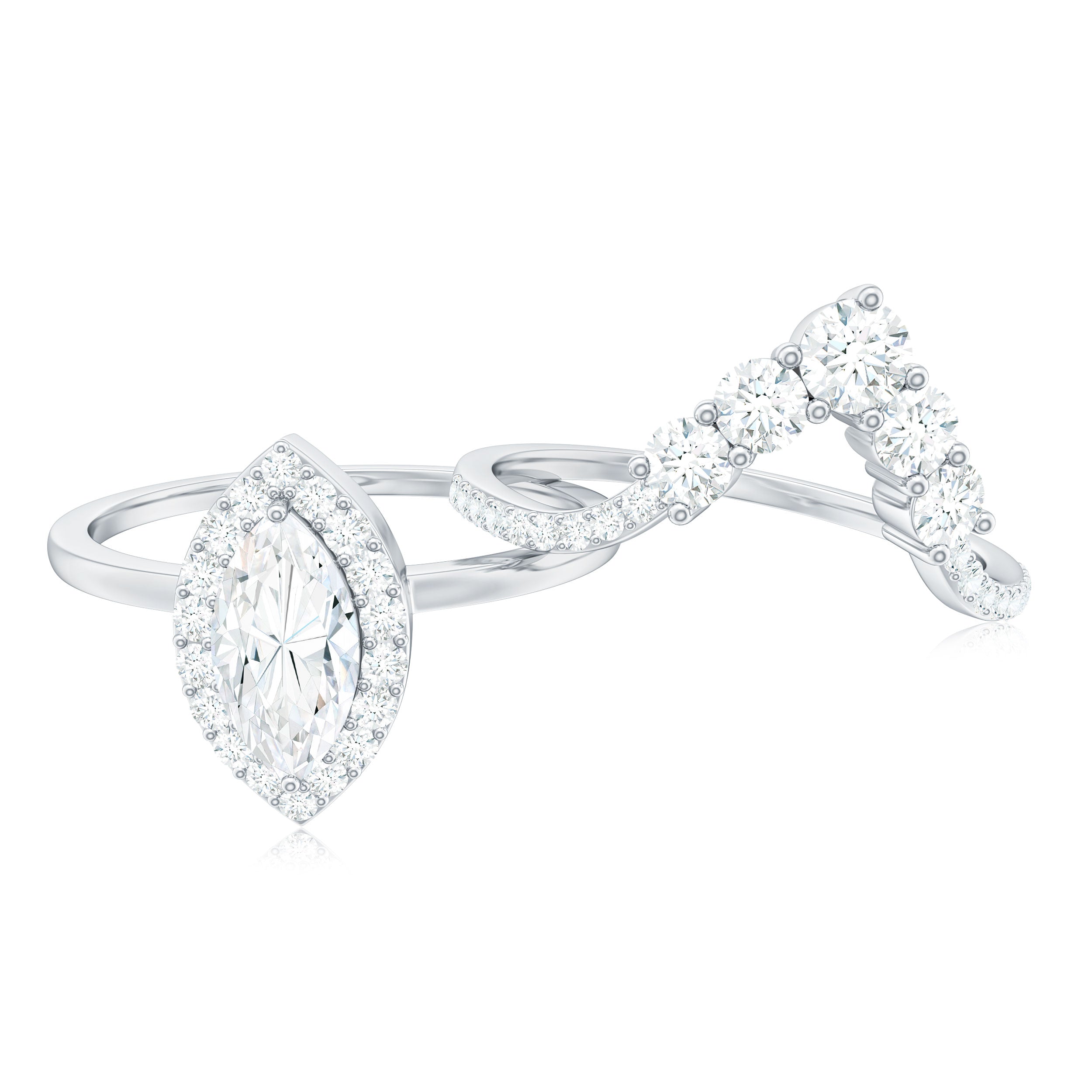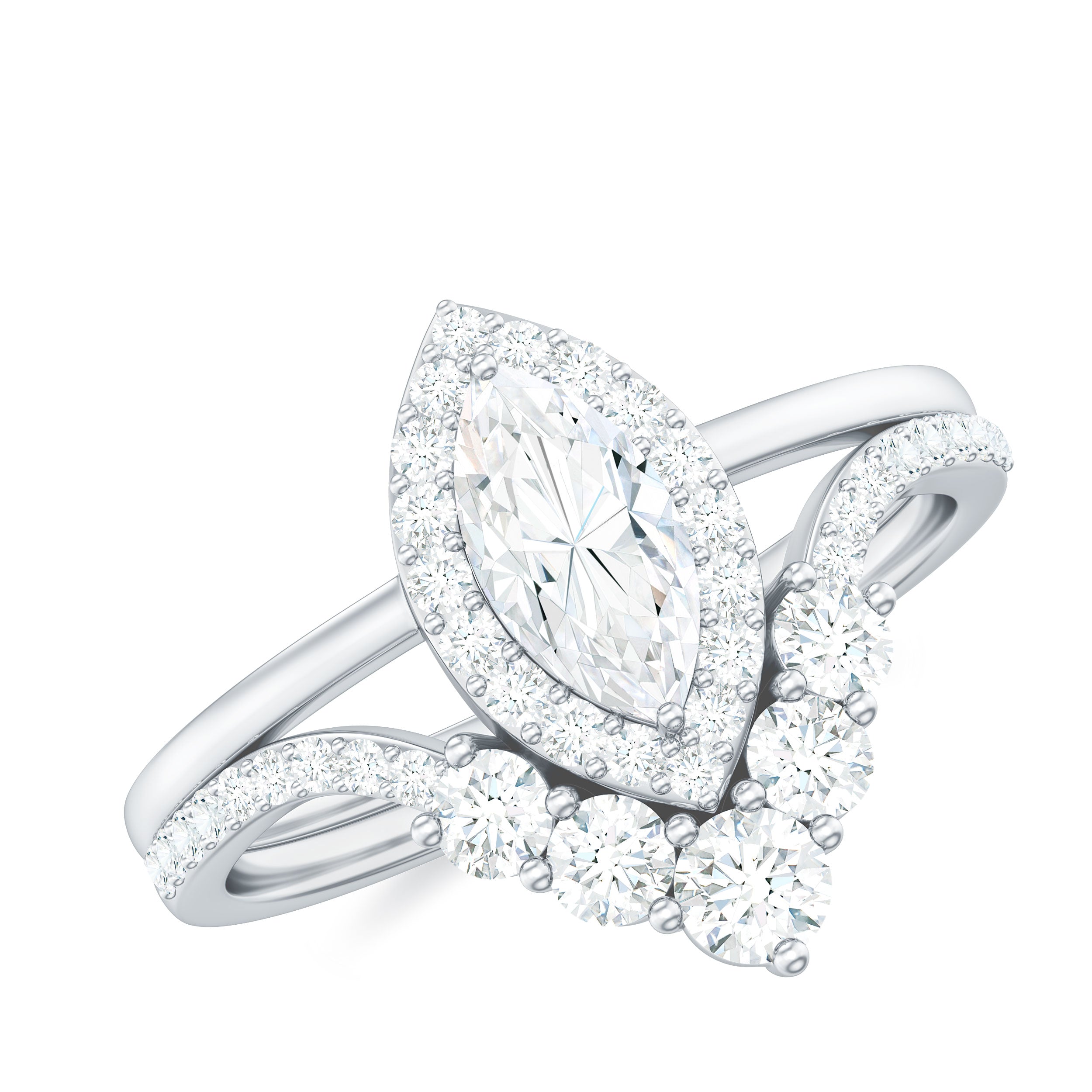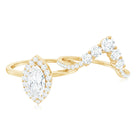 Marquise Cut Moissanite Halo Engagement Ring with Chevron Wedding Band