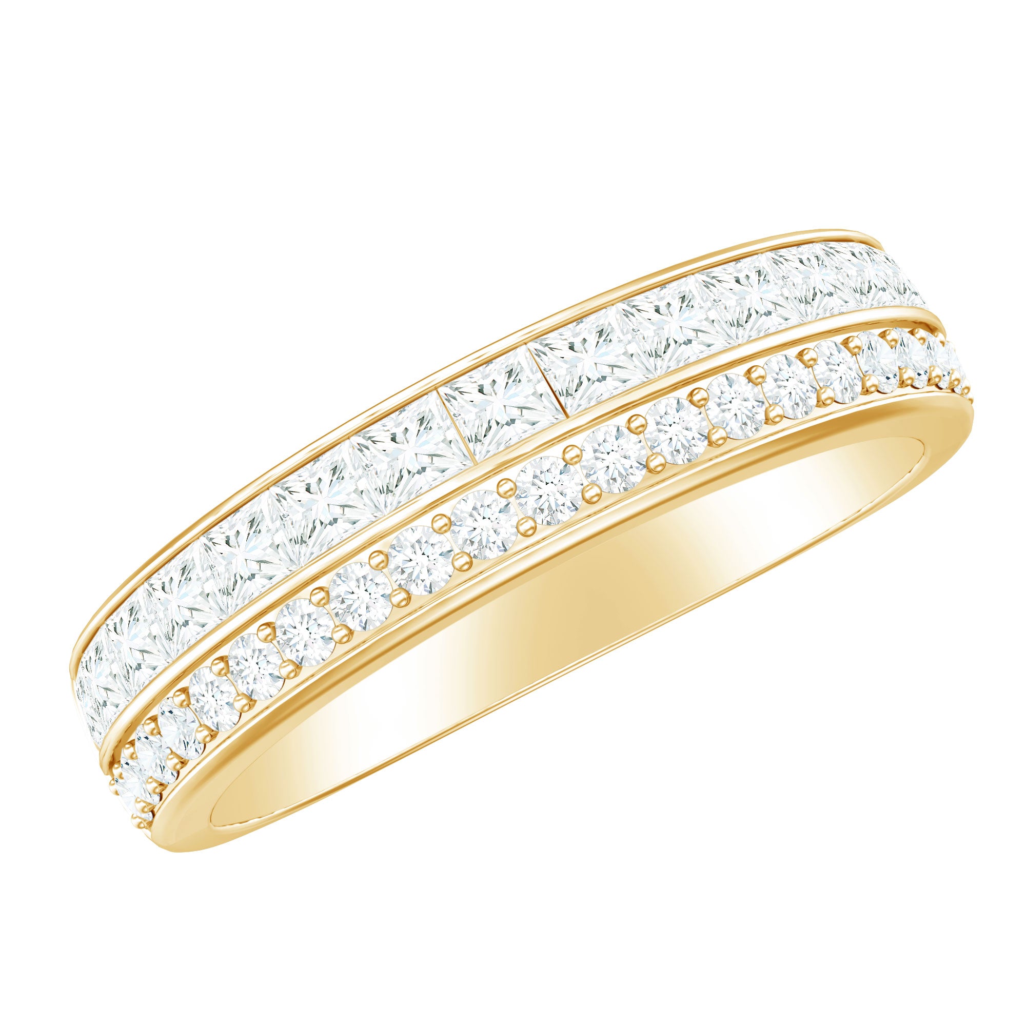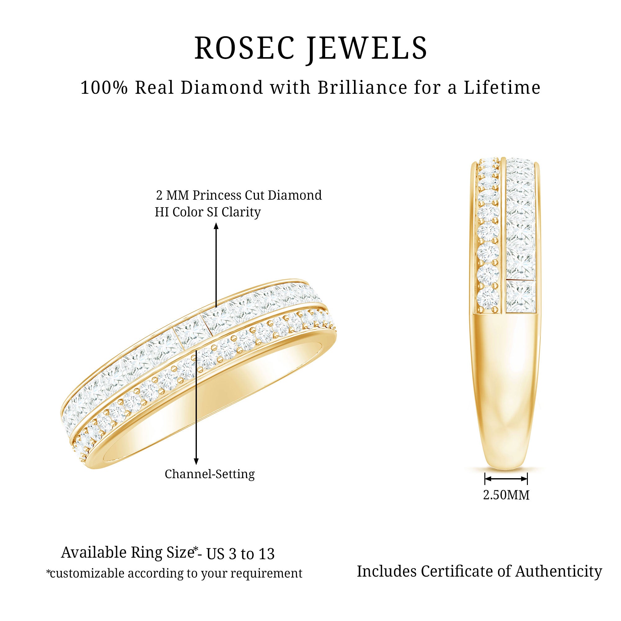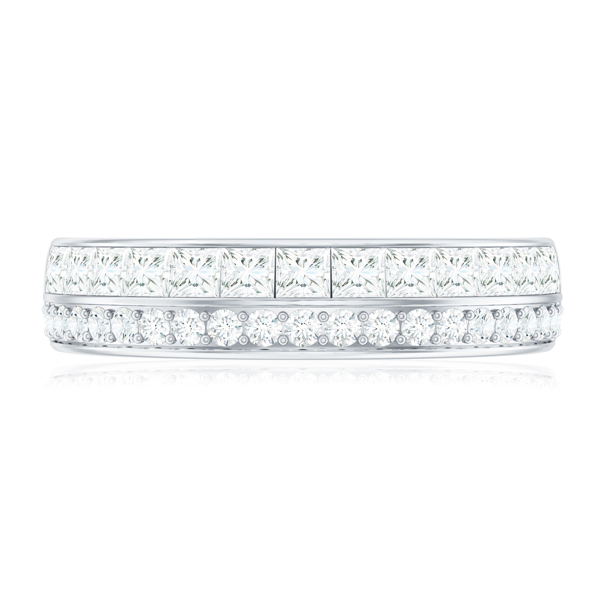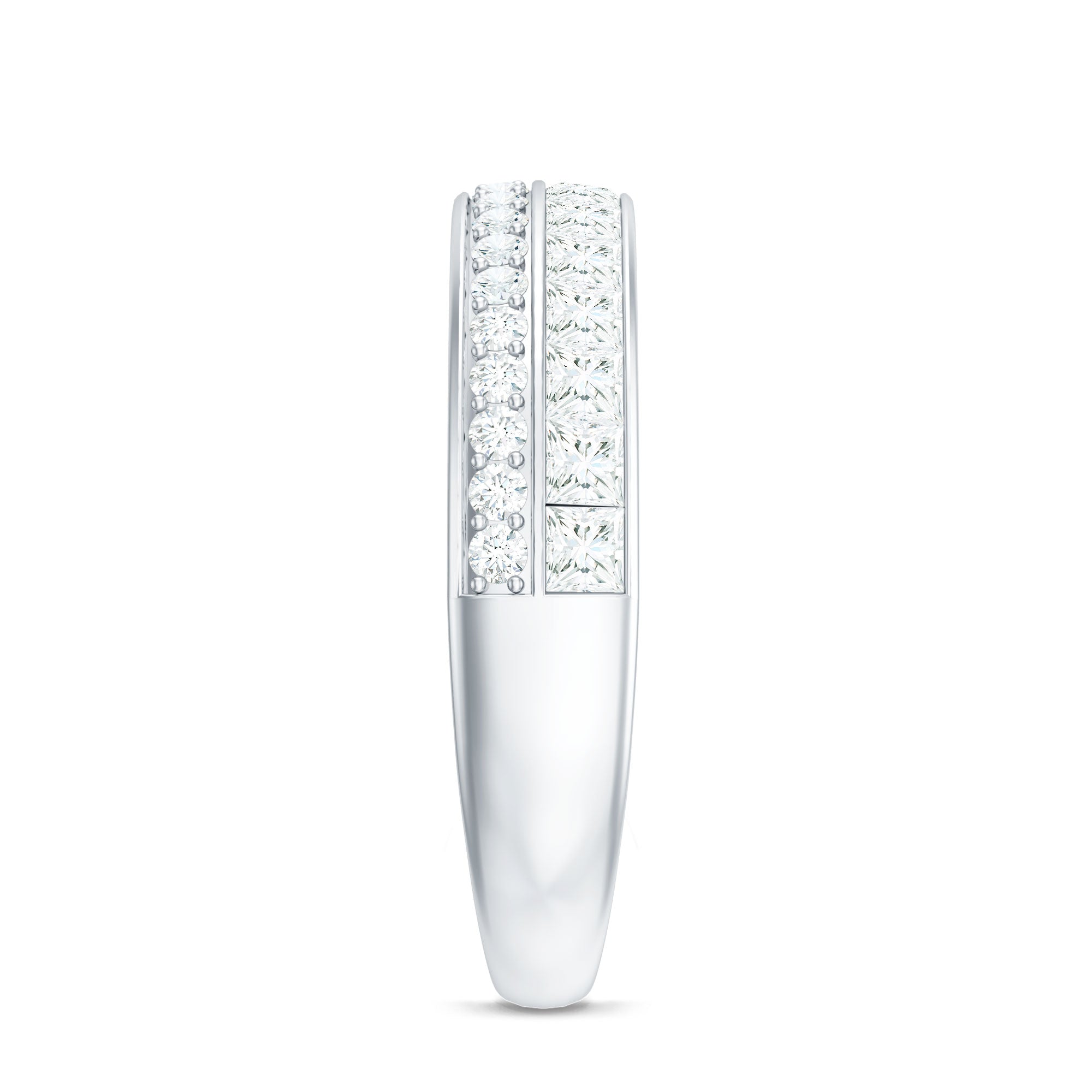 Grab this Diamond Semi Eternity Ring for your special one. Showcasing two Rows of Round and Princess Cut Diamond, crafted with Hallmarked Metal. This simple and stunning Diamond Ring will give you a wow look when styled with your special attire. A wonderful Birthday or Anniversary Gift for her.