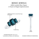 Profess her that she is your eternal companion - encompassing the past, present, and future - with this exquisite Three Stone Engagement Ring. Striking and elegant, this London Blue Topaz Engagement Ring is designed to make a statement. It showcases three captivating emerald cut London Blue Topaz stones, are meticulously set in a secure prong setting. The central stone measures 6X8 MM, while the two adjacent stones are 4X6 MM, providing an ideal balance and sophistication to the overall design. What truly distinguishes this Past Present and Future Ring is its significance. The three stones symbolize your shared journey, reflecting where you have been, where you currently are, and all that lies ahead. It is a ring that conveys profound meaning without uttering a single word, making it an exceptional gift for a proposal, Valentine’s Day, anniversary, or simply a heartfelt surprise. The royal blue topaz exudes a sleek, contemporary aura while maintaining a timeless and elegant appeal. It deviates from the conventional engagement ring, which adds to its uniqueness, much like your love story. Crafted with exceptional quality and featuring certified Natural London Blue Topaz stones, this December Birthstone Ring is a cherished memory in the making. Whether she appreciates bold statement pieces or prefers more unconventional designs, this Emerald Cut Blue Topaz Ring is guaranteed to capture her heart. Therefore, proceed to create an unforgettable moment with a ring that is as meaningful as it is stunning.