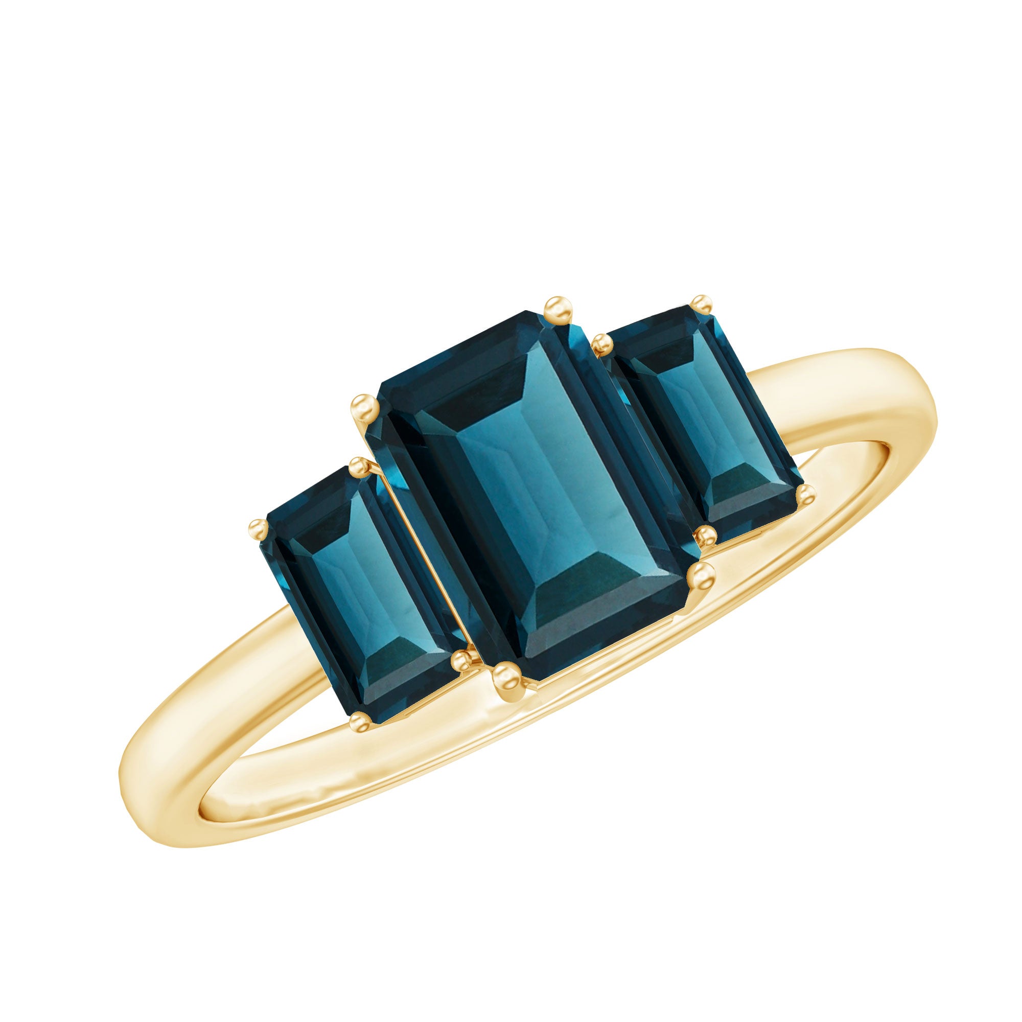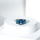 Emerald Cut London Blue Topaz Three Stone Engagement Ring