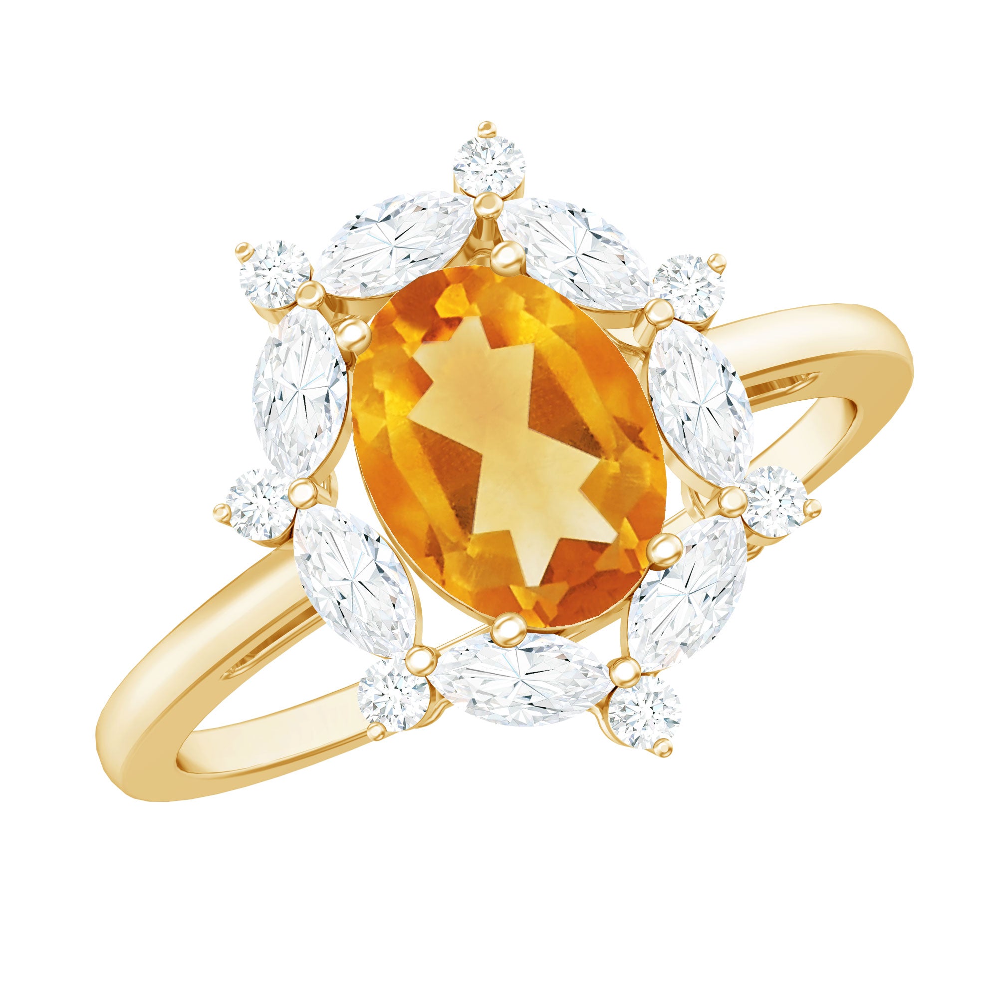 1.75 CT Oval Citrine Designer Halo Engagement Ring with Moissanite