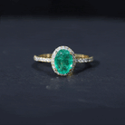 Genuine 6X8MM Oval Emerald Engagement Ring with Diamond Halo