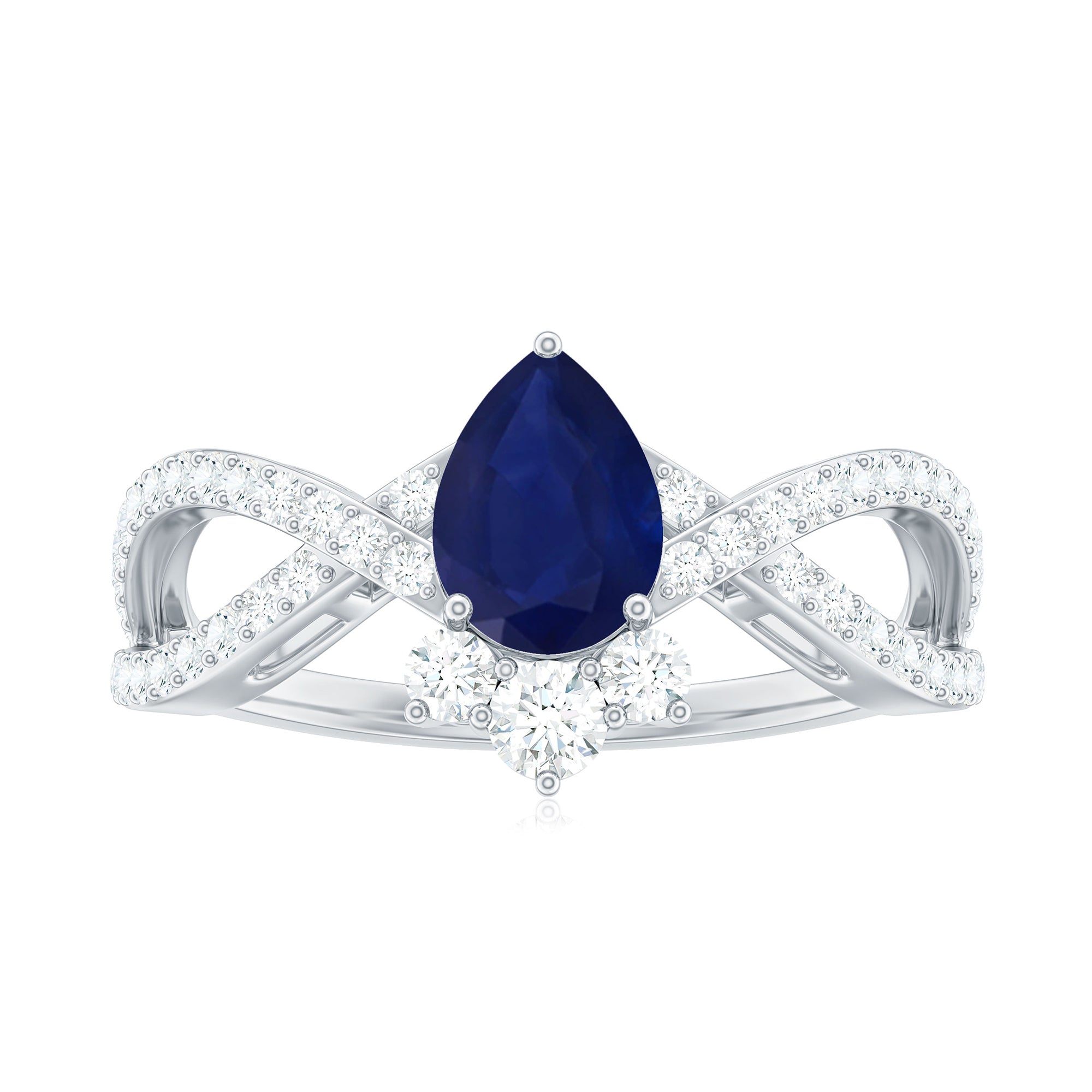 Pear Cut Blue Sapphire and Diamond Crossover Engagement Ring