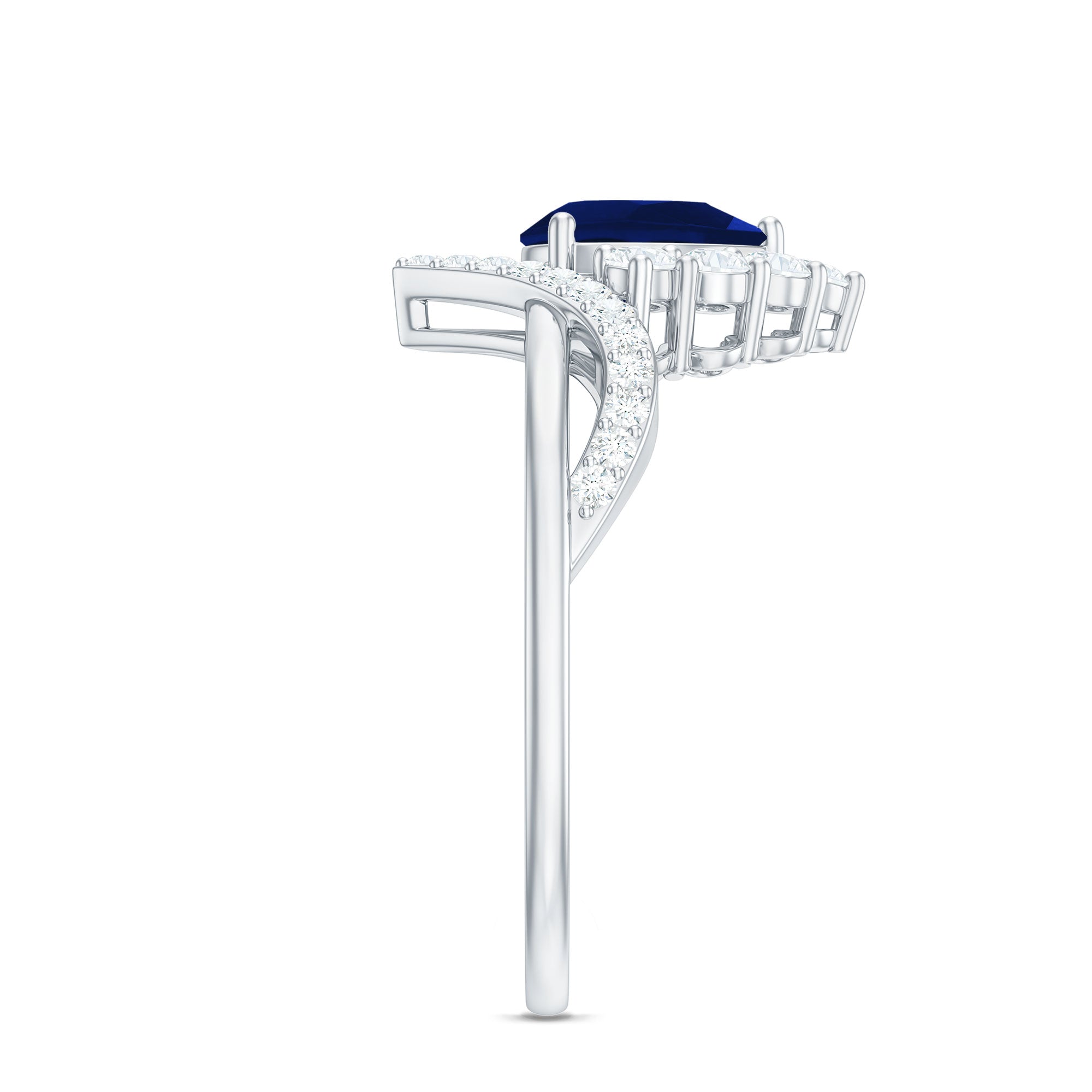 Pear Cut Blue Sapphire Designer Solitaire Ring with Diamond