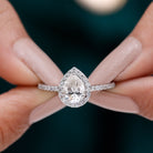 Make her feel truly cherished with this gorgeous Moissanite Engagement Ring, designed to shine on her big day. With a simple yet elegant design, this Pear Shaped Engagement Ring showcases the center stone beautifully. At the heart of the ring is a stunning 6X8 MM pear cut moissanite, set in prong setting, sparkling with incredible fire and clarity. Surrounding it is a delicate halo of round moissanite stones that enhance the center gem’s brilliance and add extra sparkle. The band is embellished with additional shimmering round shaped moissanites, creating a bold, radiant look that draws attention from every angle. This 1 Carat Moissanite Ring blends classic charm with a touch of modern sophistication. Carefully crafted with precision and love, this Halo Engagement Ring comes in various sizes to ensure the perfect fit. Every detail of this piece reflects love, artistry, and commitment. Let it tell your love story with brilliance and elegance, because she deserves nothing less than extraordinary.