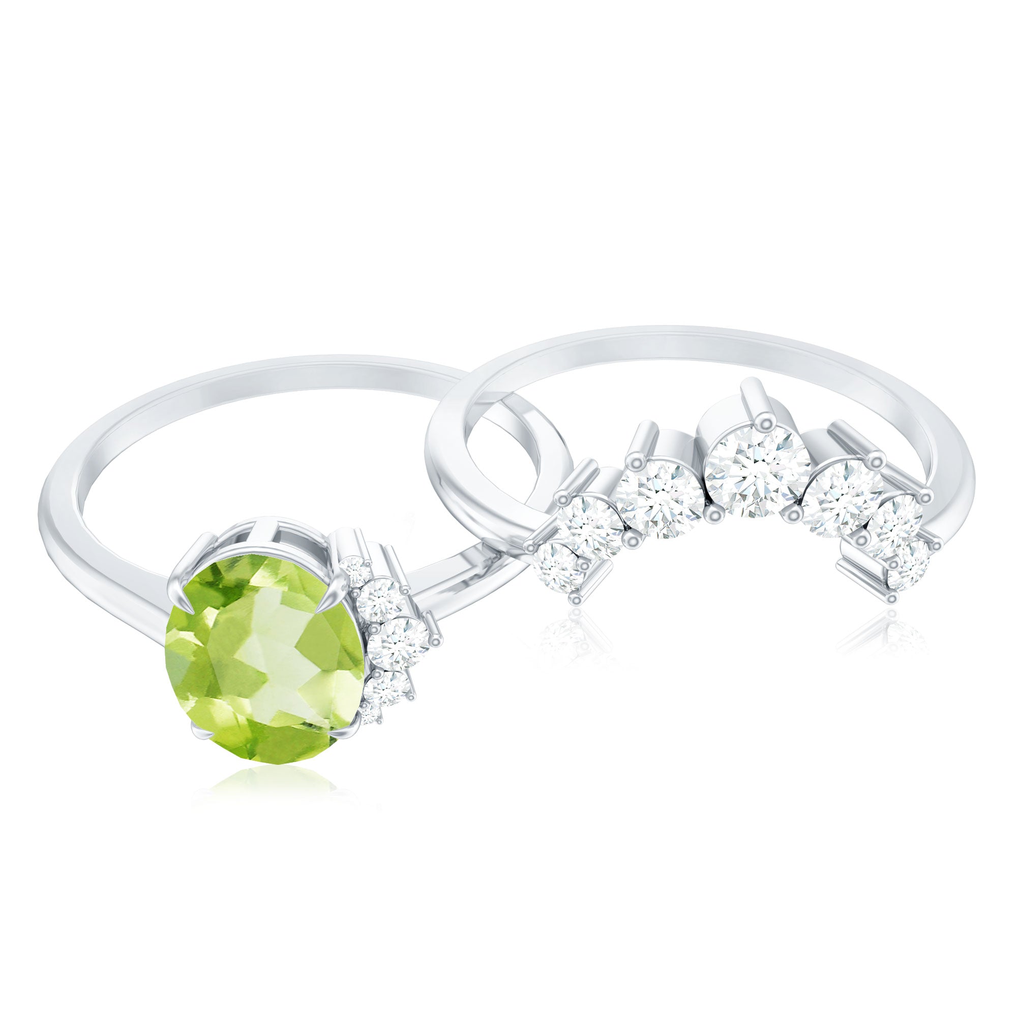 1.75 CT Peridot and Diamond Engagement Enhancer Ring Set
