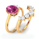 A Perfect and Lovely Engagement Enhancer Ring Set has adorned with Oval Shape Pink Tourmaline set as a solitaire in a claw setting and Round Shape Moissanite in a prong setting on enhancer band. This Engagement Enhancer Ring Set is crafted in solid gold.