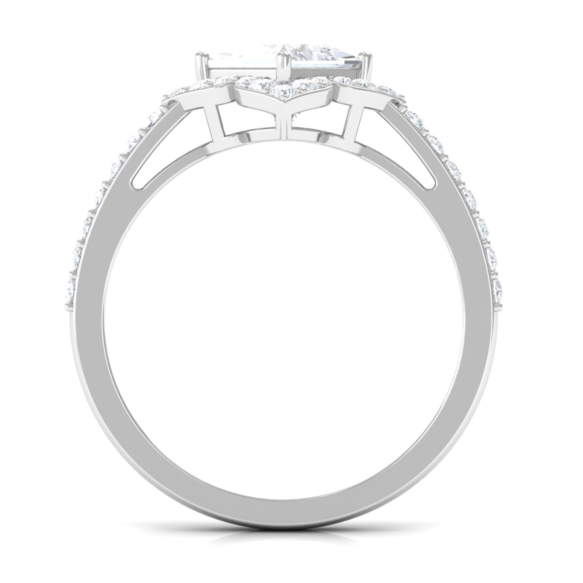 1.75 CT Princess Cut Zircon Engagement Ring Floral Halo